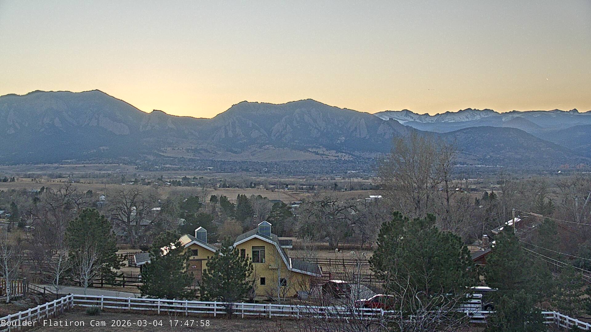The Louisville cam is the original Boulder Flatiron Cam with it’s view to the west of the Flatirons, South Boulder and the Indian Peaks from the Davidson Mesa area of Louisville.  Be sure to check out the archives, we have almost daily time lapse and archives back to February 2009.