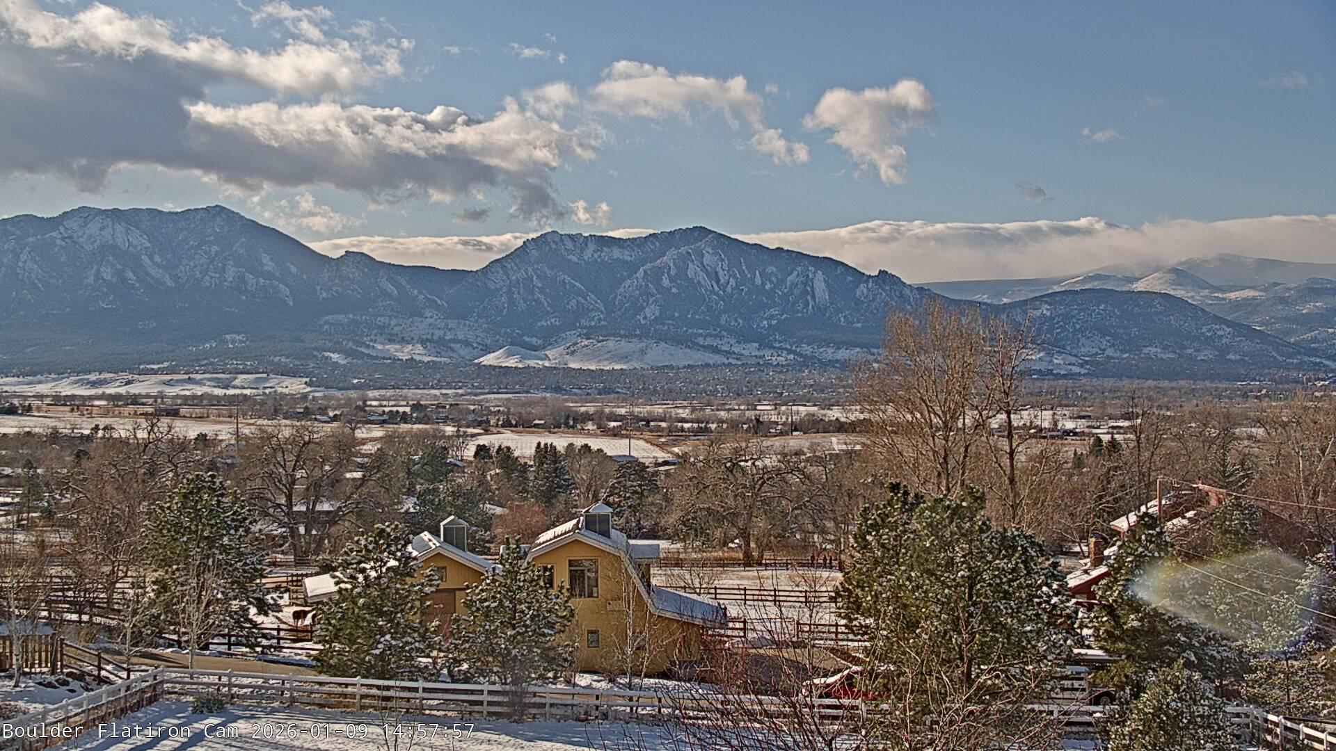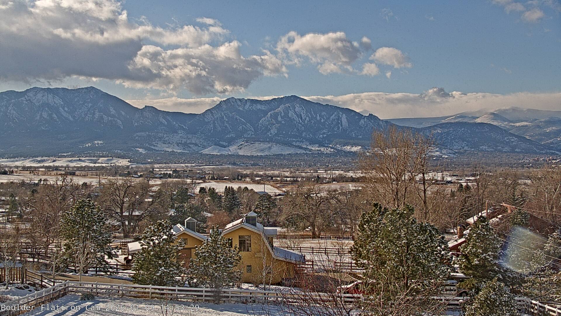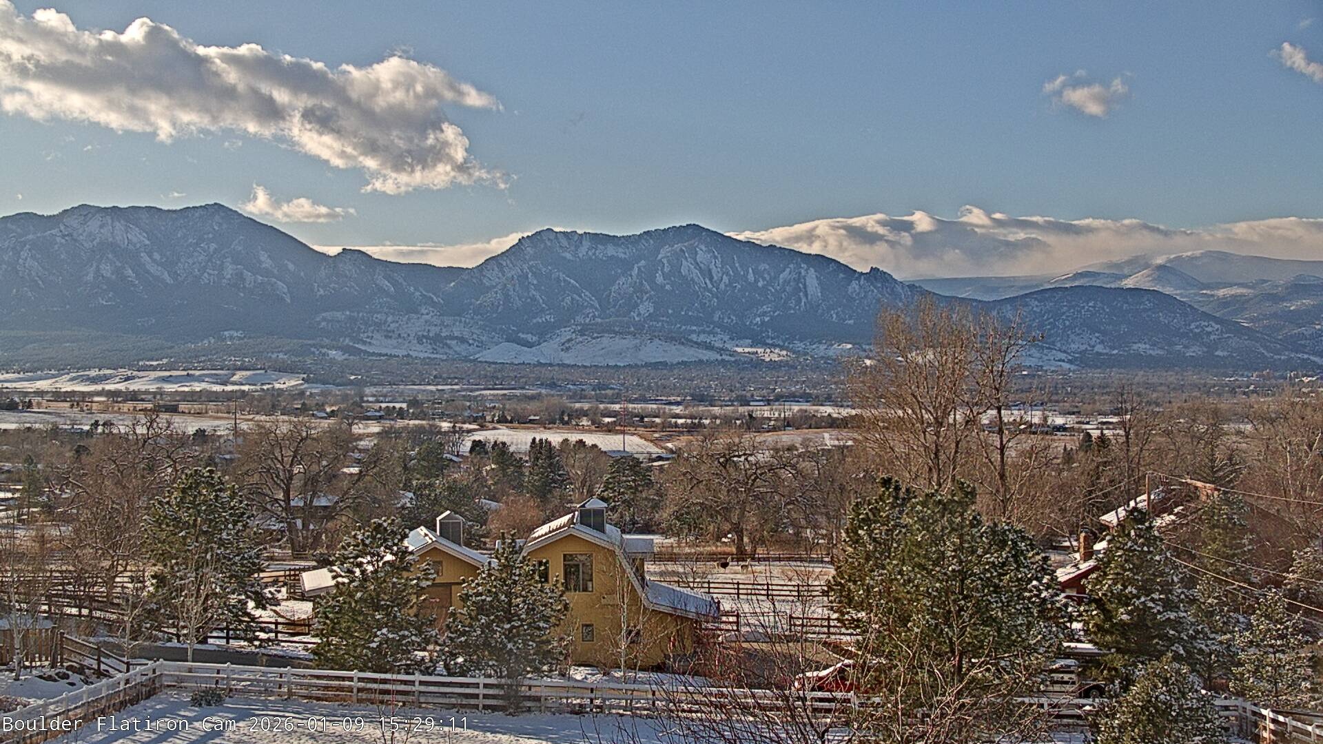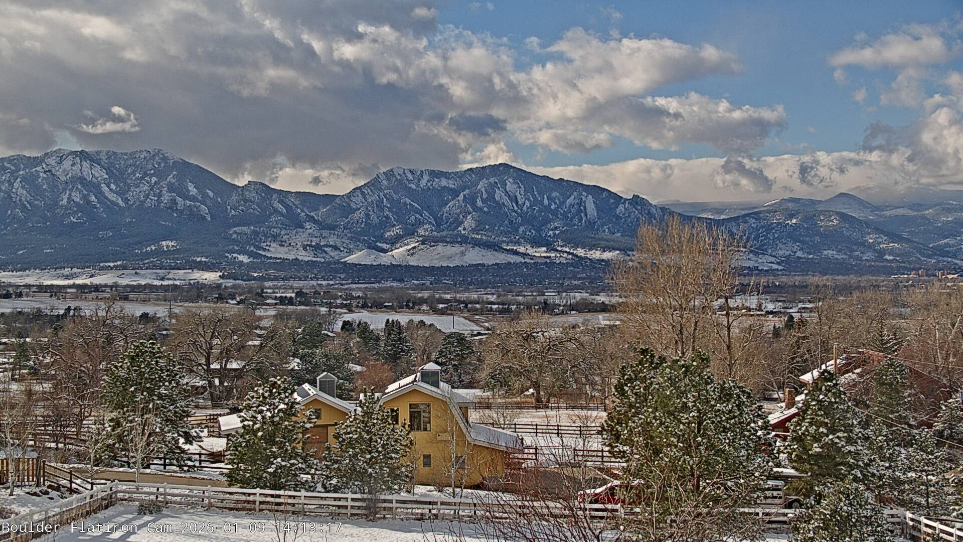 The Louisville cam is the original Boulder Flatiron Cam with it’s view to the west of the Flatirons, South Boulder and the Indian Peaks from the Davidson Mesa area of Louisville.  Be sure to check out the archives, we have almost daily time lapse and archives back to February 2009.