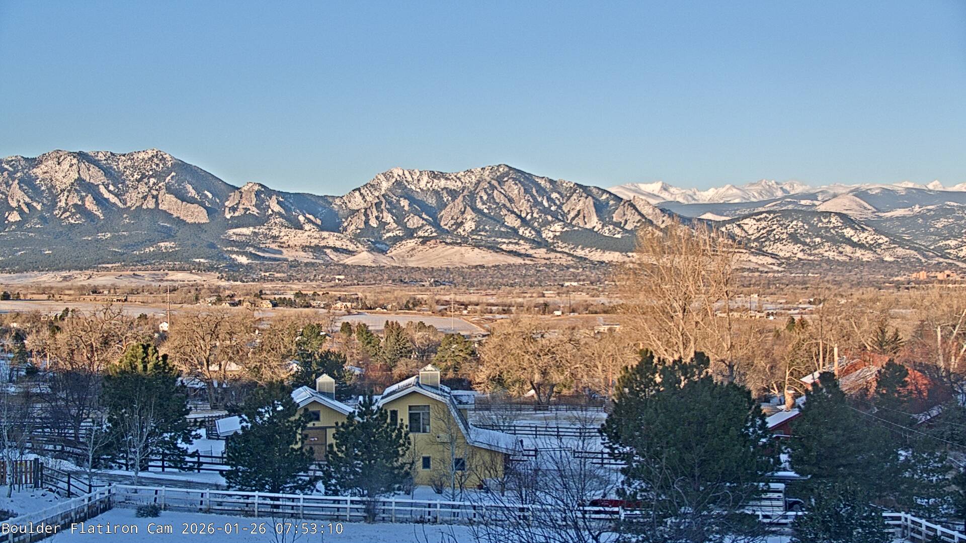 The Louisville cam is the original Boulder Flatiron Cam with it’s view to the west of the Flatirons, South Boulder and the Indian Peaks from the Davidson Mesa area of Louisville.  Be sure to check out the archives, we have almost daily time lapse and archives back to February 2009.
