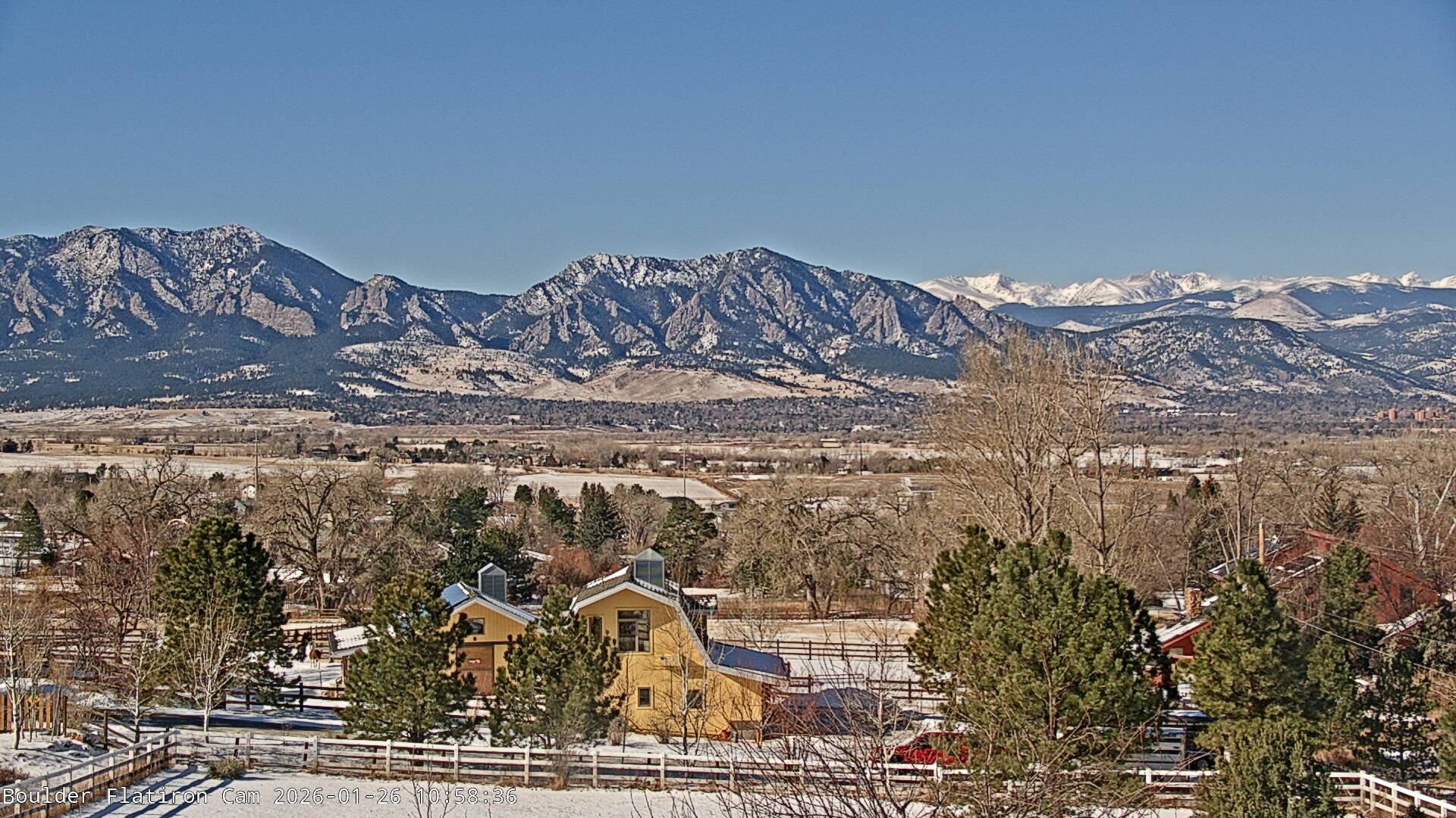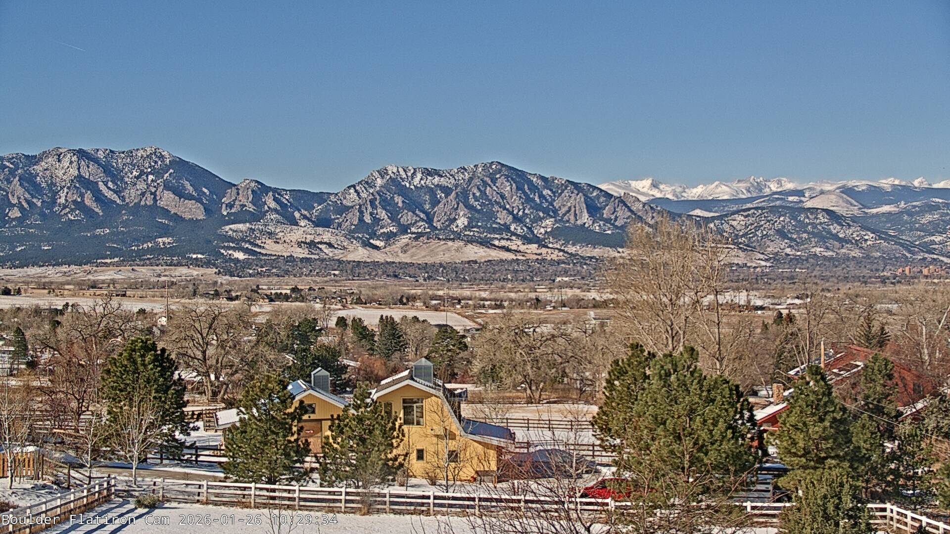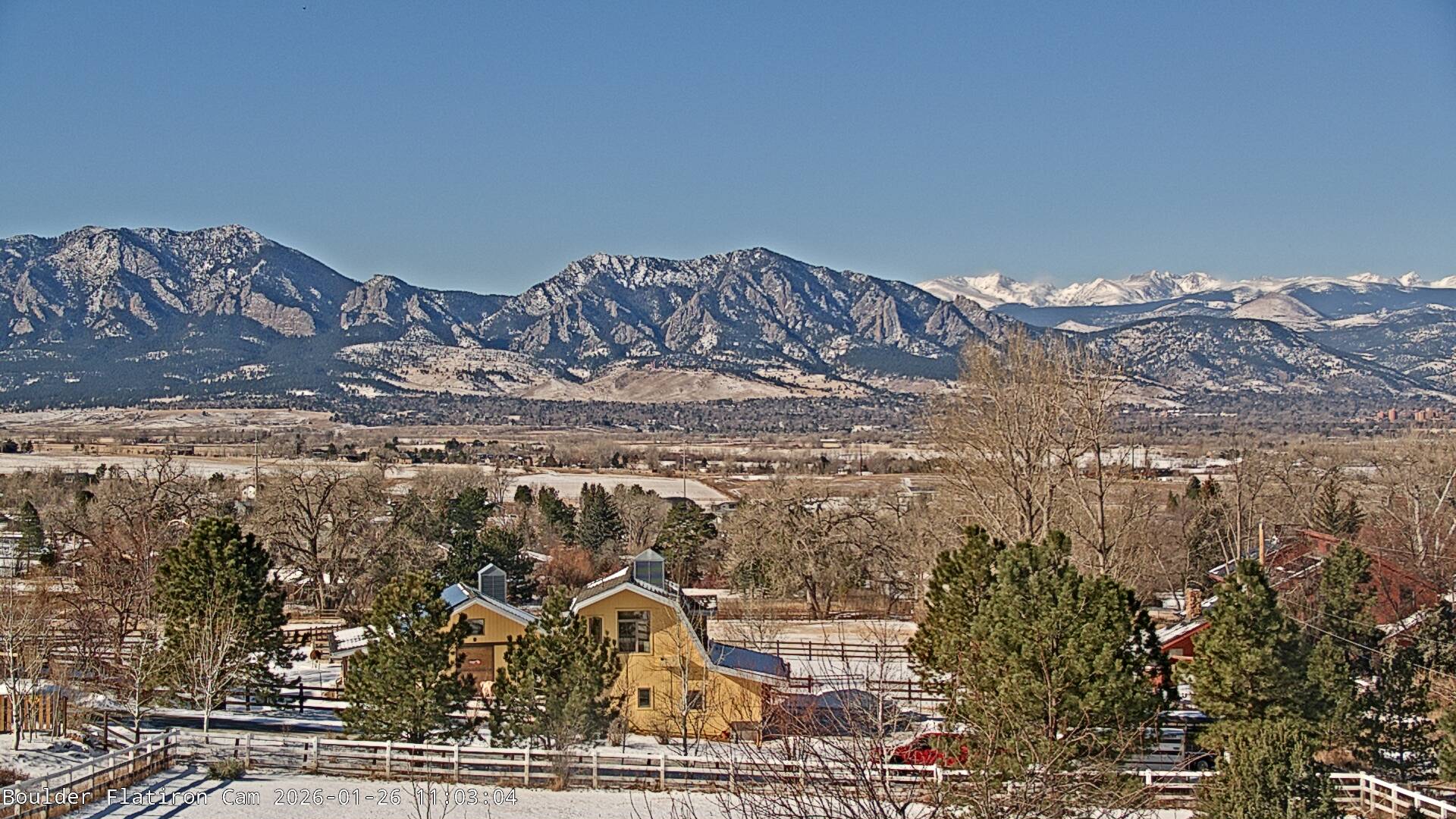 The Louisville cam is the original Boulder Flatiron Cam with it’s view to the west of the Flatirons, South Boulder and the Indian Peaks from the Davidson Mesa area of Louisville.  Be sure to check out the archives, we have almost daily time lapse and archives back to February 2009.