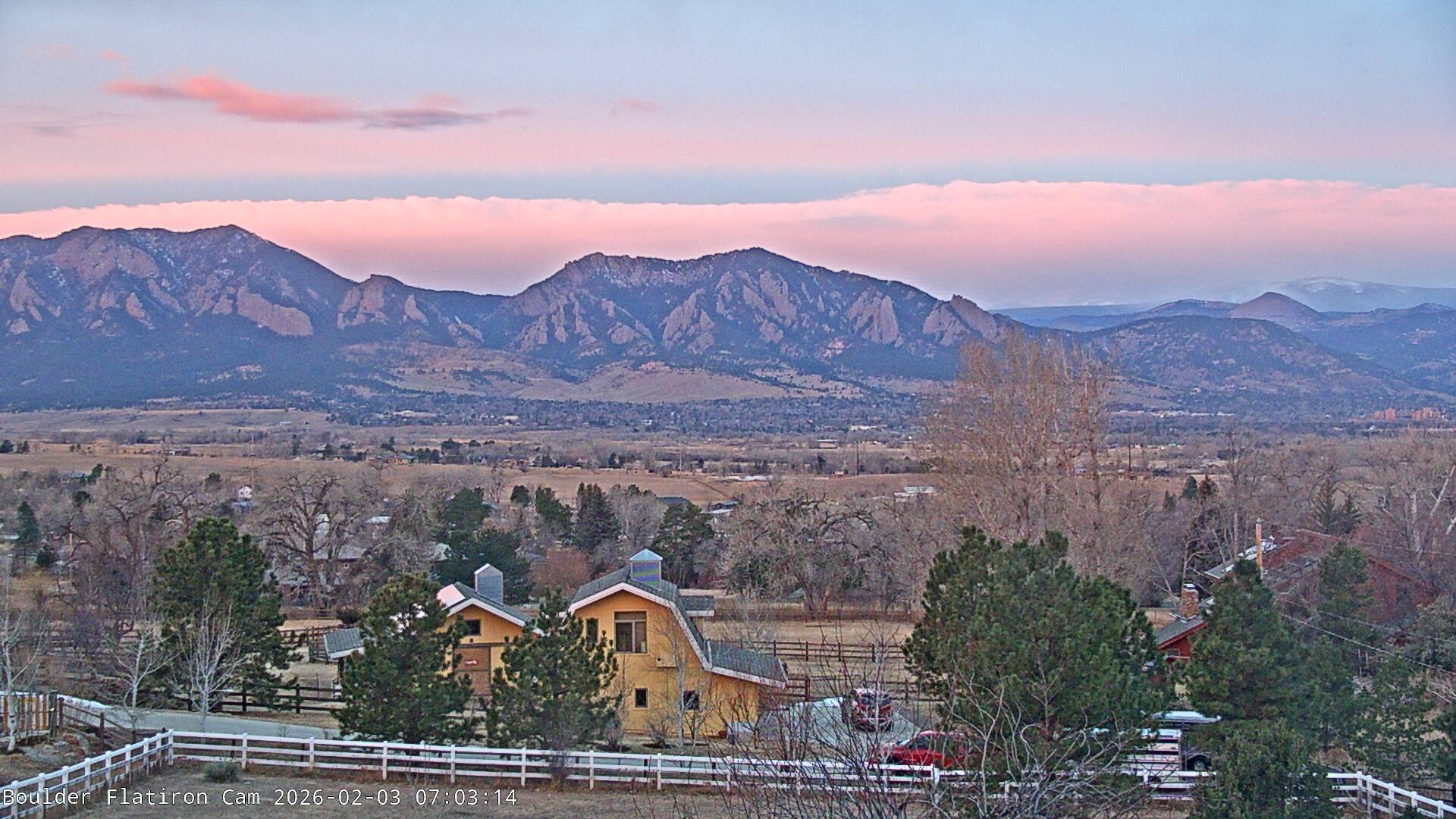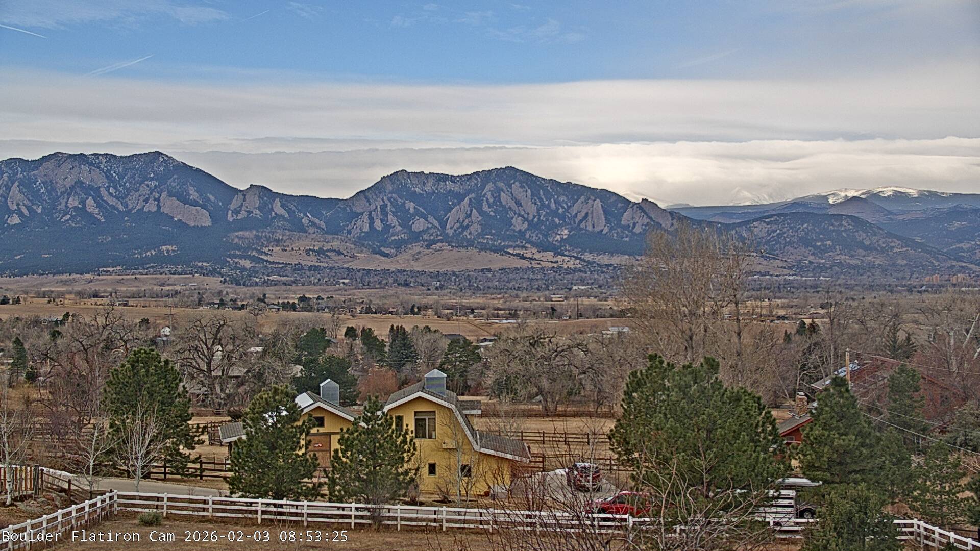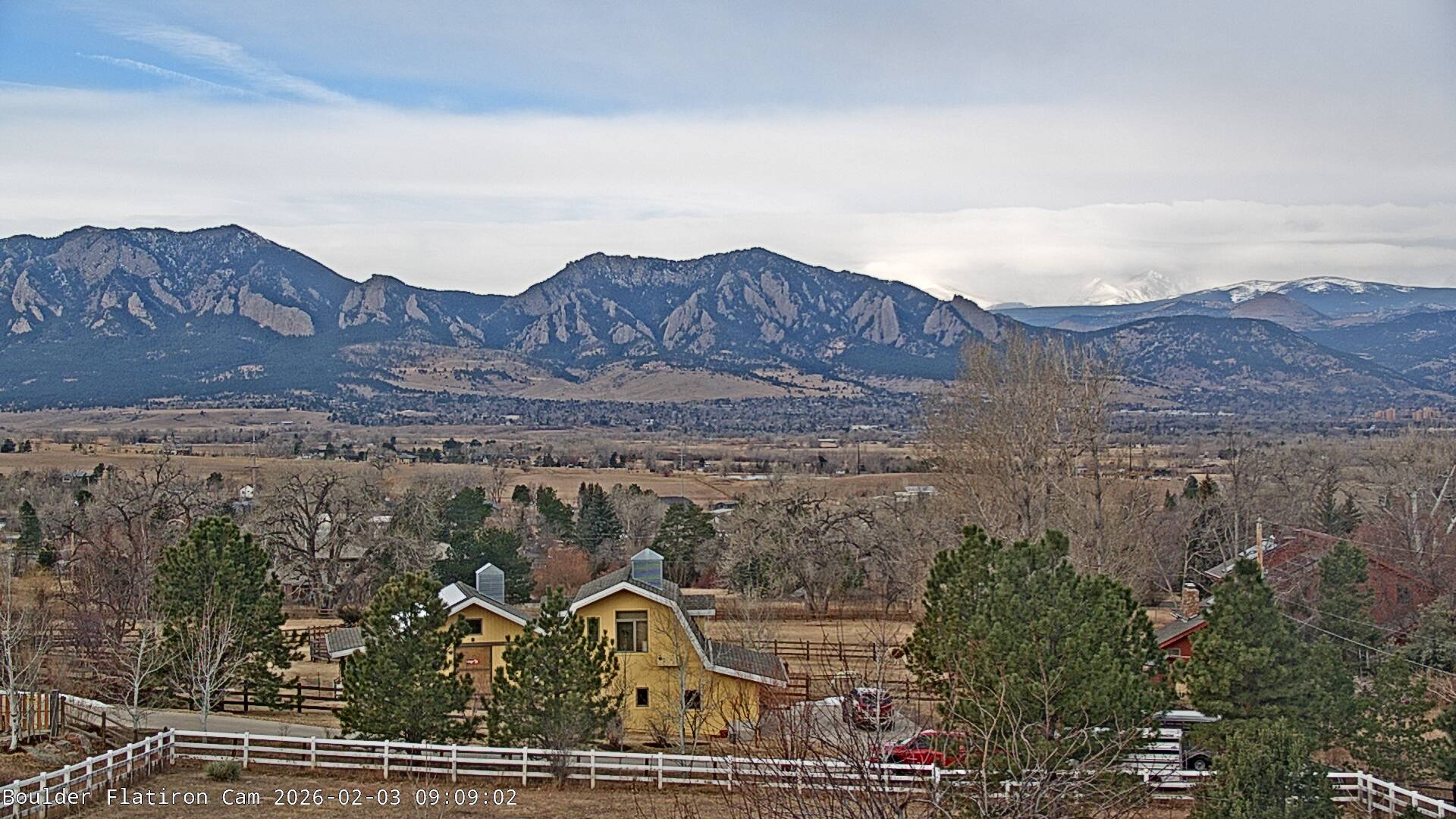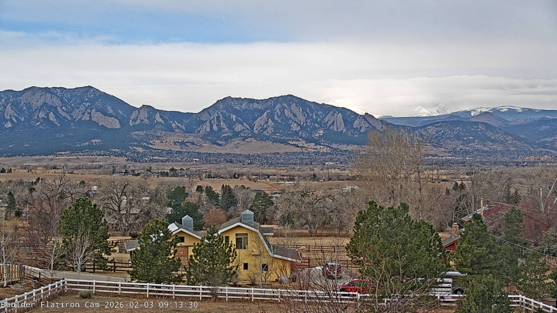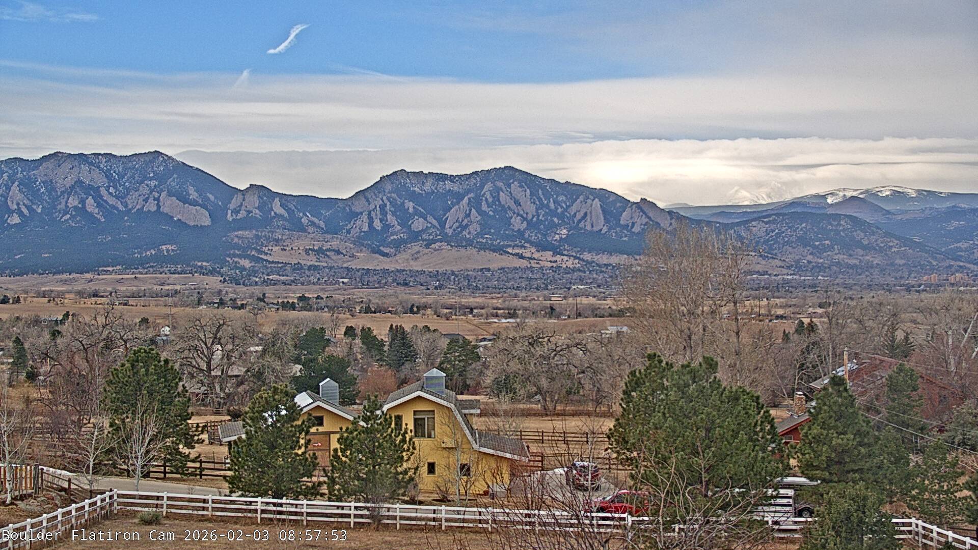 The Louisville cam is the original Boulder Flatiron Cam with it’s view to the west of the Flatirons, South Boulder and the Indian Peaks from the Davidson Mesa area of Louisville.  Be sure to check out the archives, we have almost daily time lapse and archives back to February 2009.