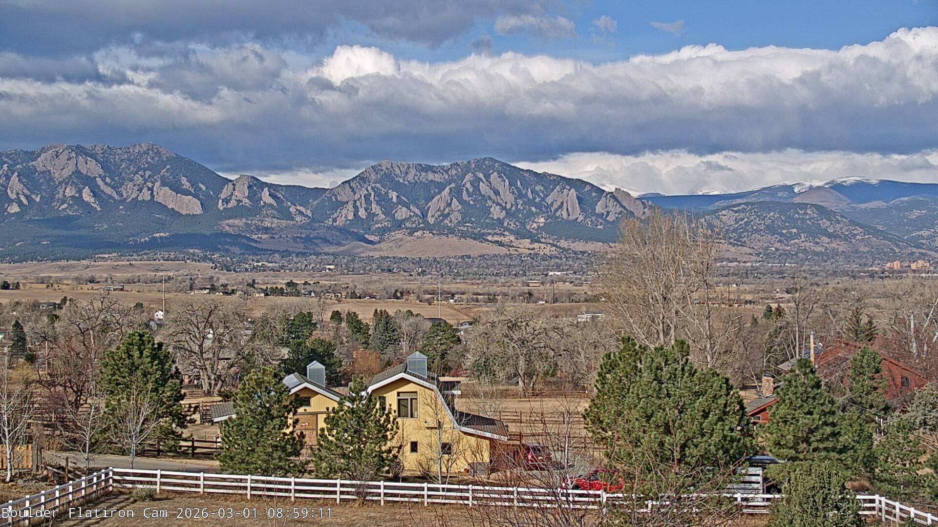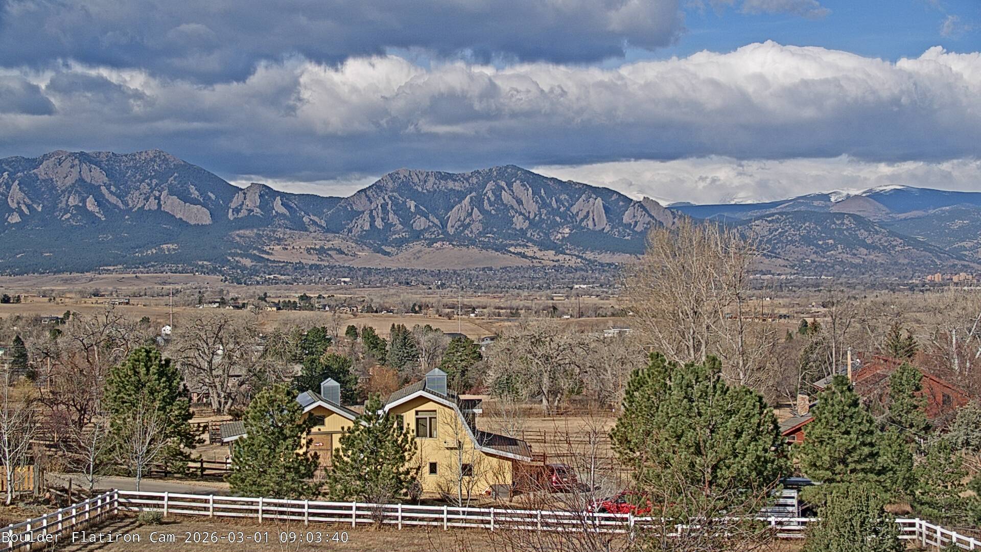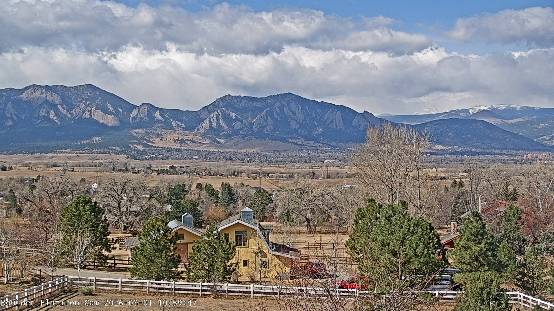 The Louisville cam is the original Boulder Flatiron Cam with it’s view to the west of the Flatirons, South Boulder and the Indian Peaks from the Davidson Mesa area of Louisville.  Be sure to check out the archives, we have almost daily time lapse and archives back to February 2009.