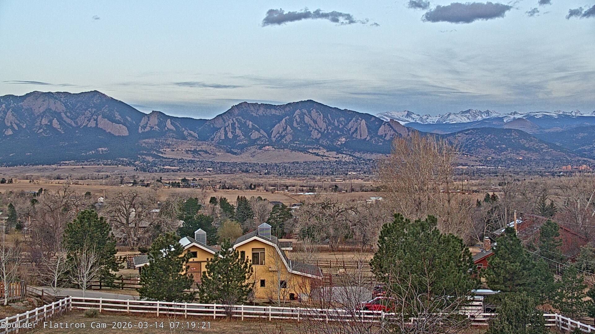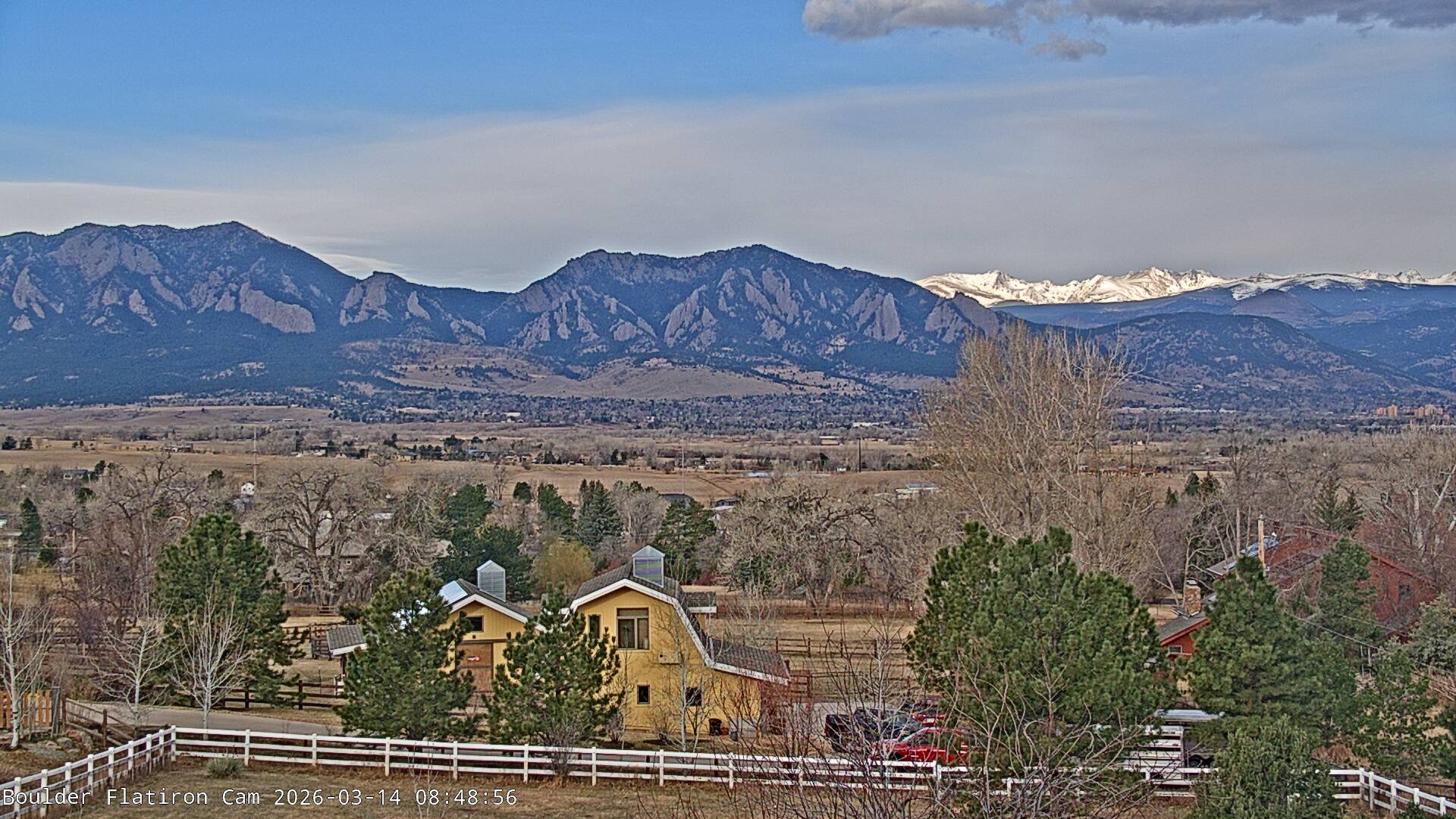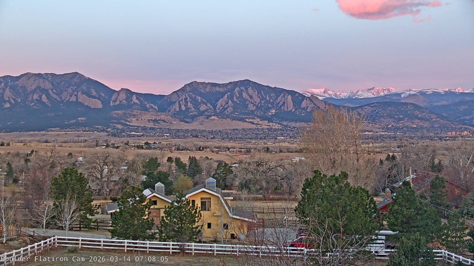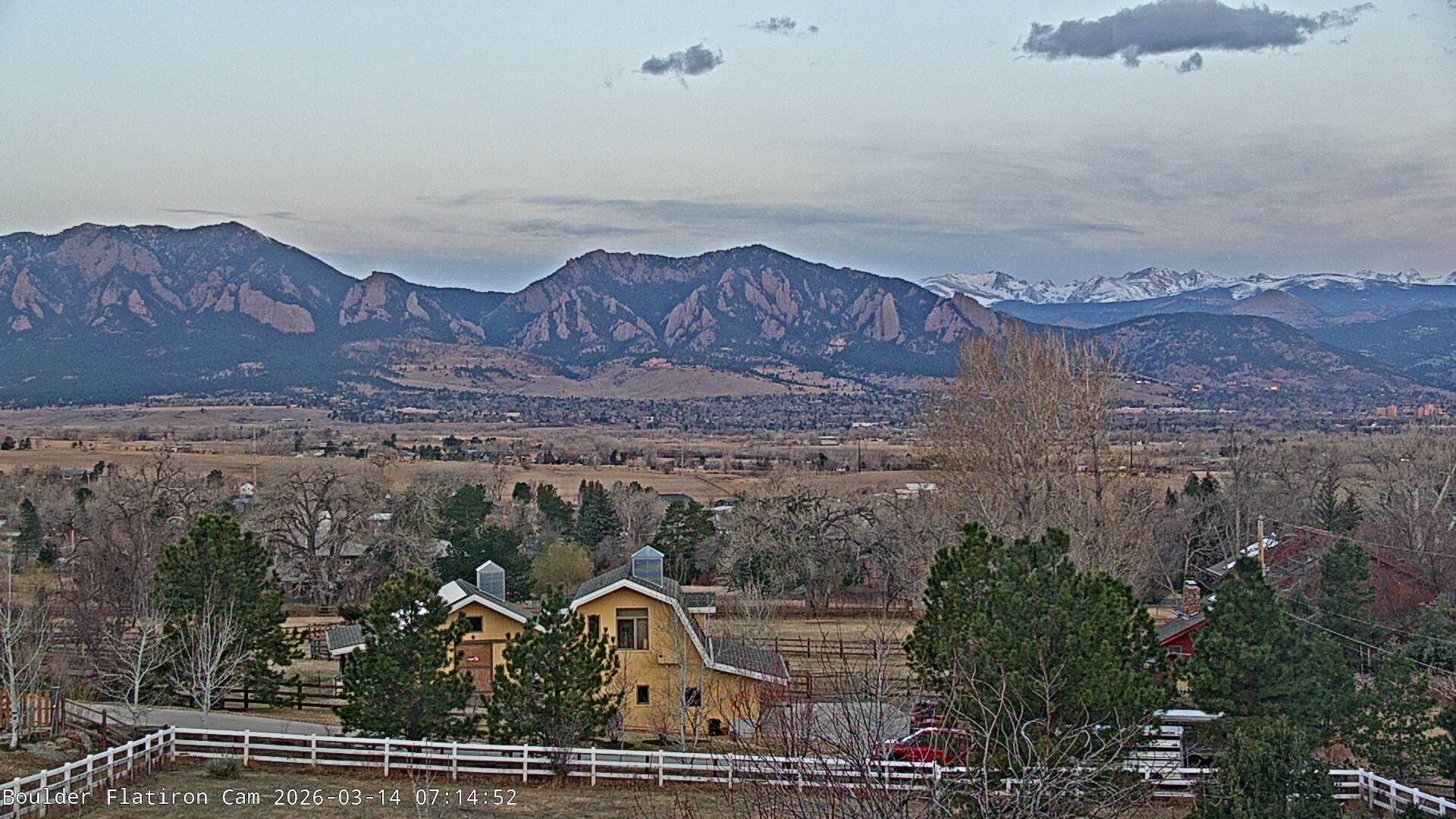 The Louisville cam is the original Boulder Flatiron Cam with it’s view to the west of the Flatirons, South Boulder and the Indian Peaks from the Davidson Mesa area of Louisville.  Be sure to check out the archives, we have almost daily time lapse and archives back to February 2009.