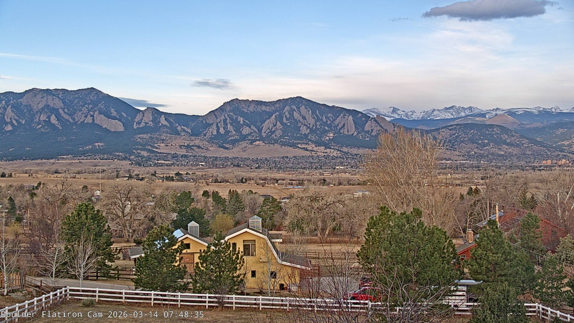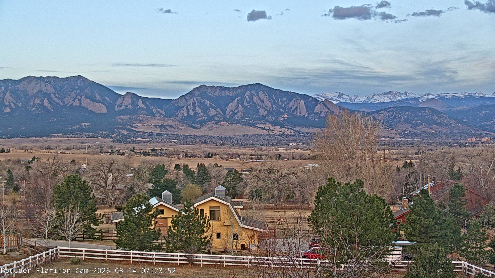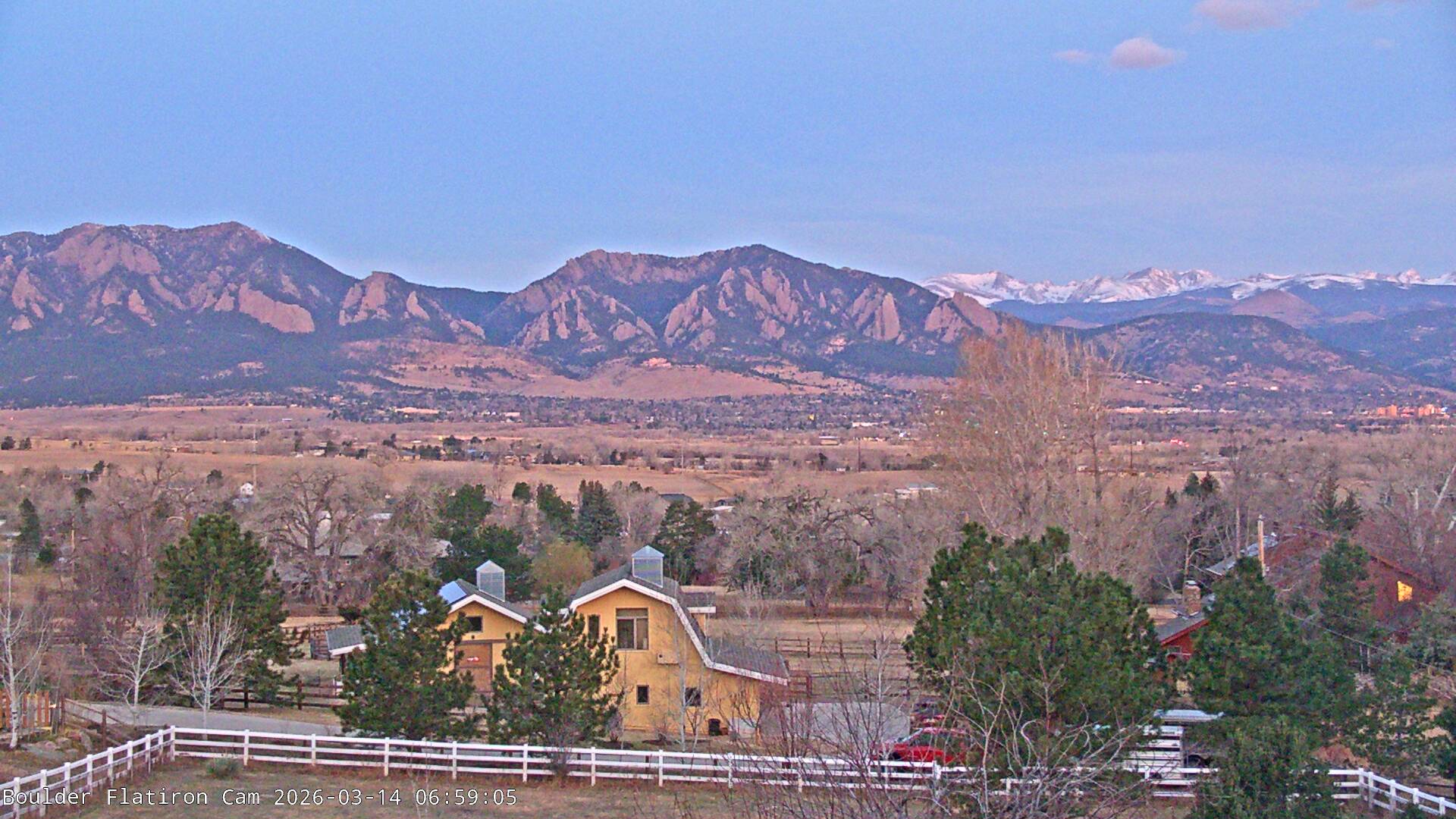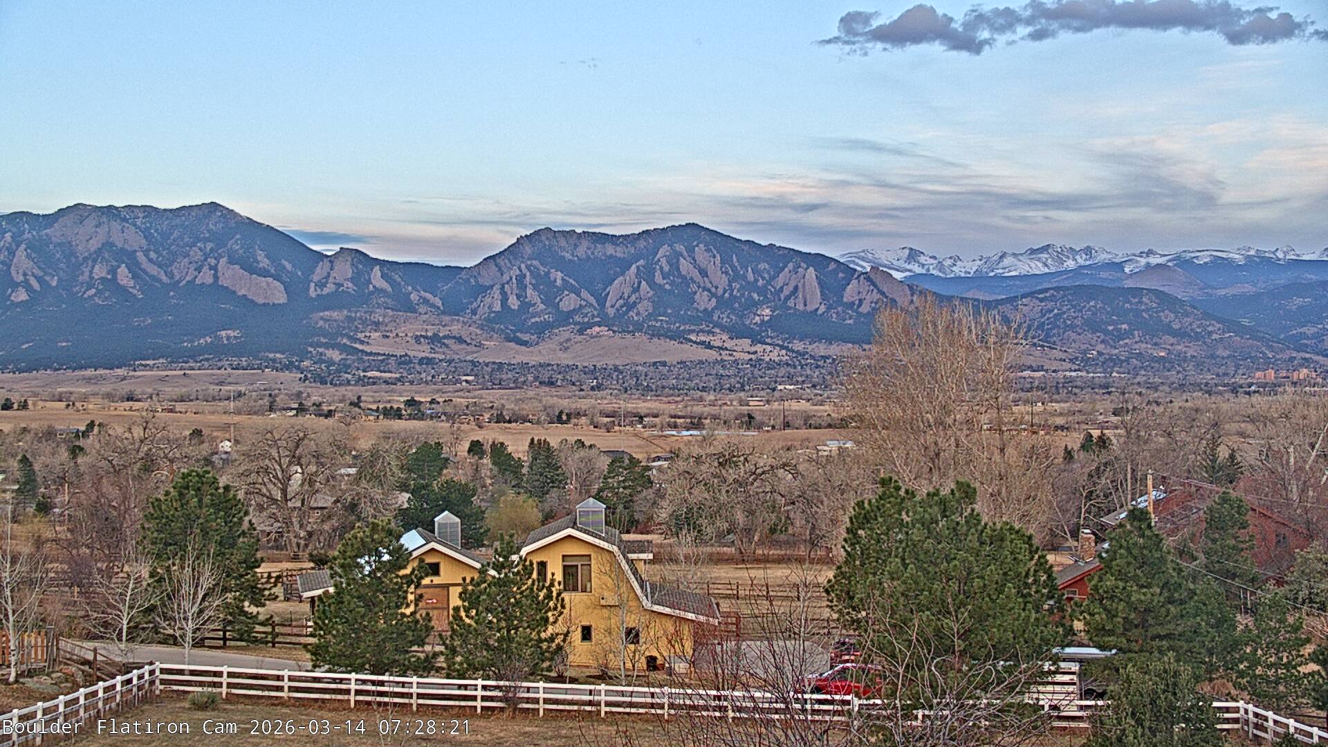 The Louisville cam is the original Boulder Flatiron Cam with it’s view to the west of the Flatirons, South Boulder and the Indian Peaks from the Davidson Mesa area of Louisville.  Be sure to check out the archives, we have almost daily time lapse and archives back to February 2009.