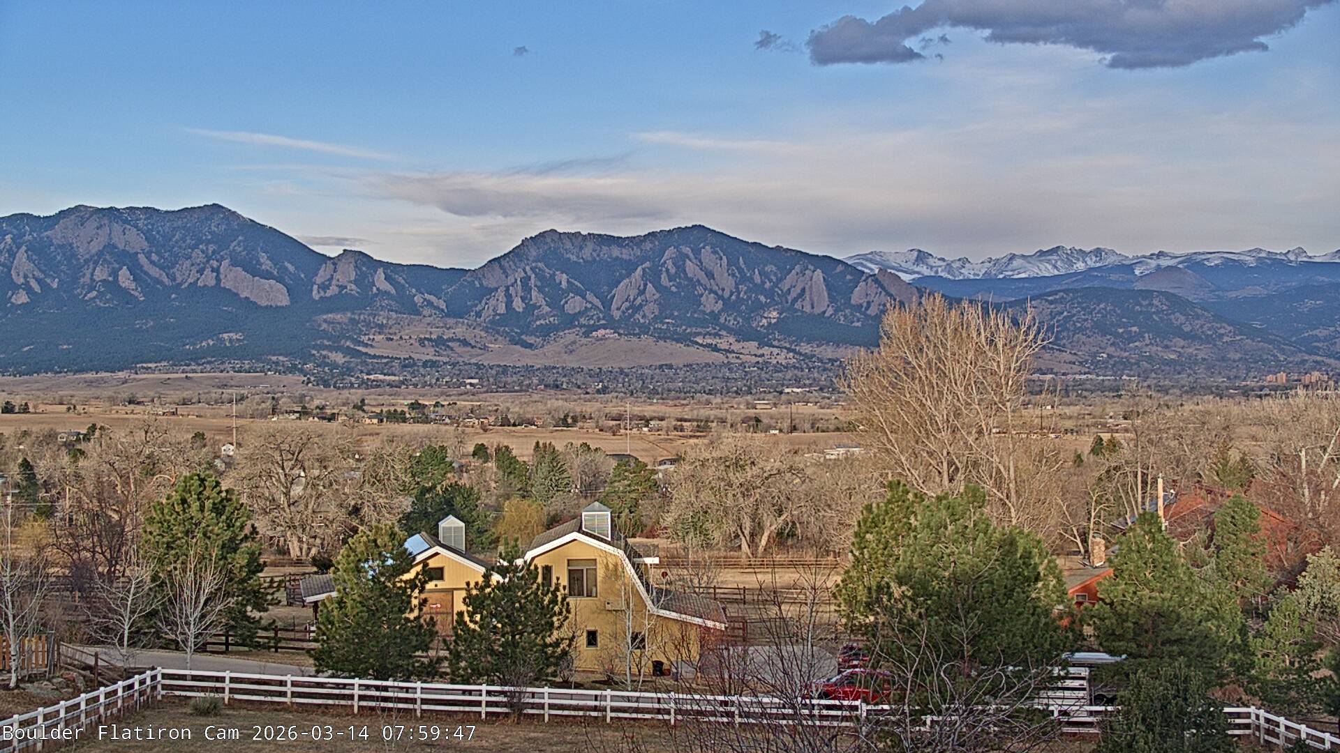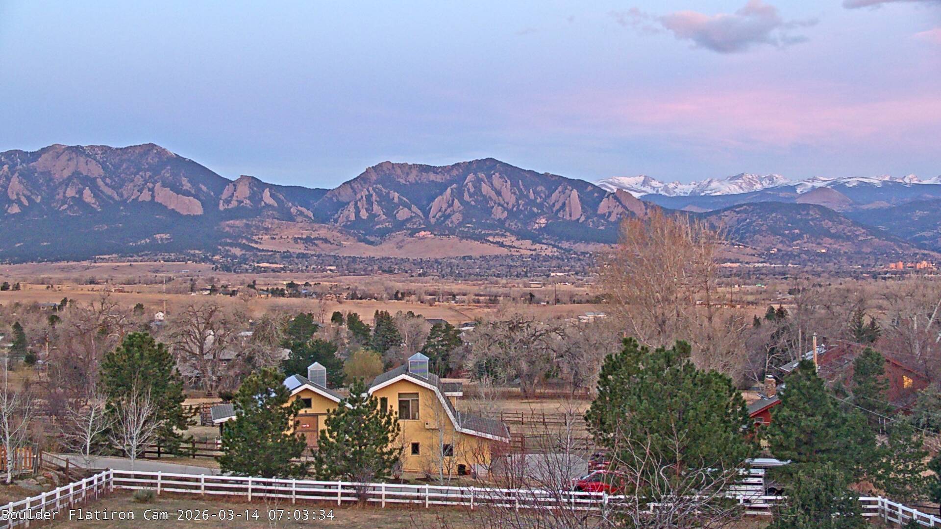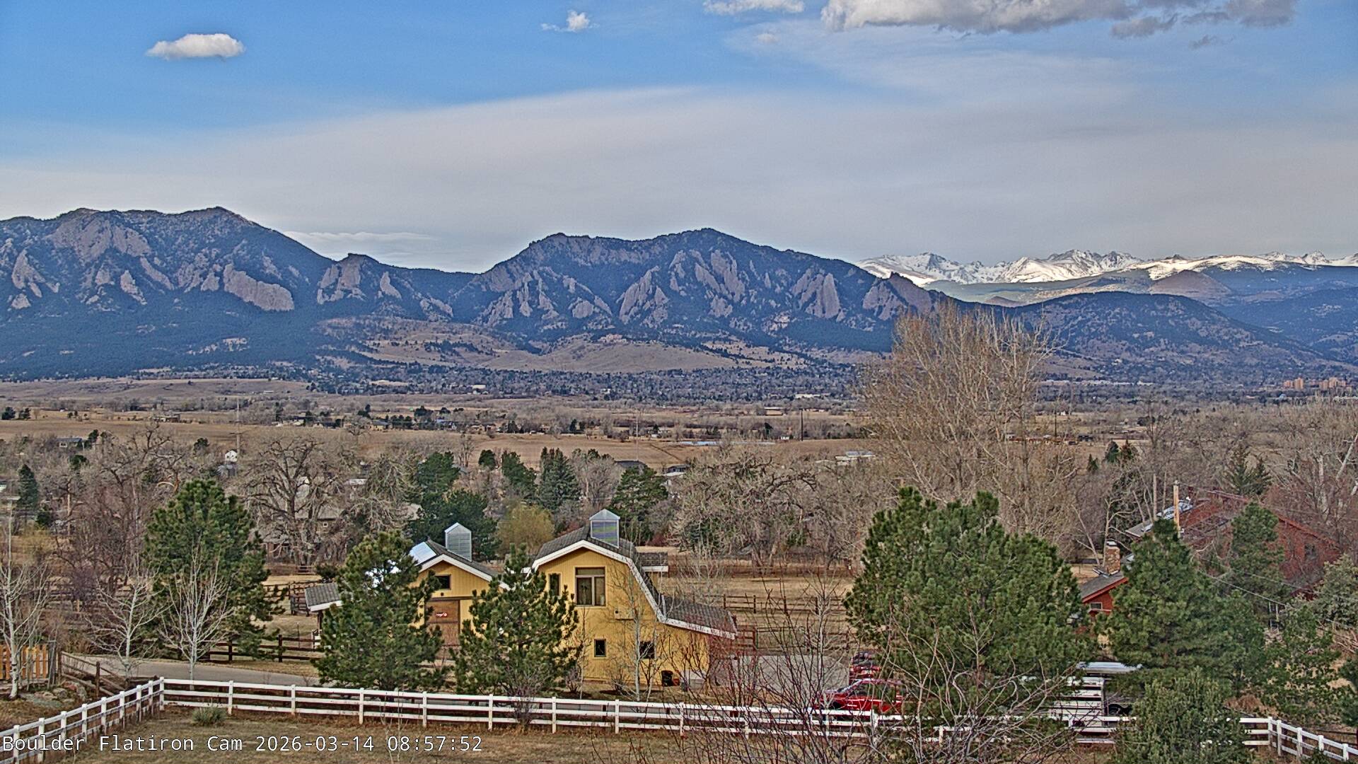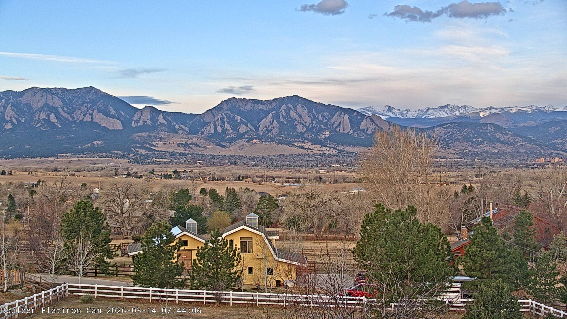 The Louisville cam is the original Boulder Flatiron Cam with it’s view to the west of the Flatirons, South Boulder and the Indian Peaks from the Davidson Mesa area of Louisville.  Be sure to check out the archives, we have almost daily time lapse and archives back to February 2009.