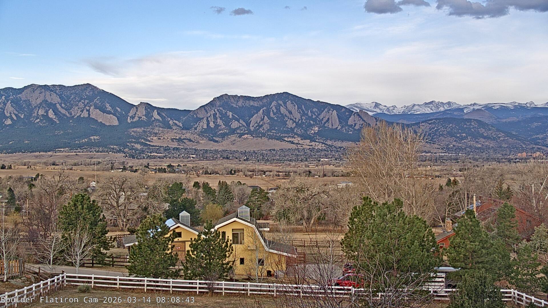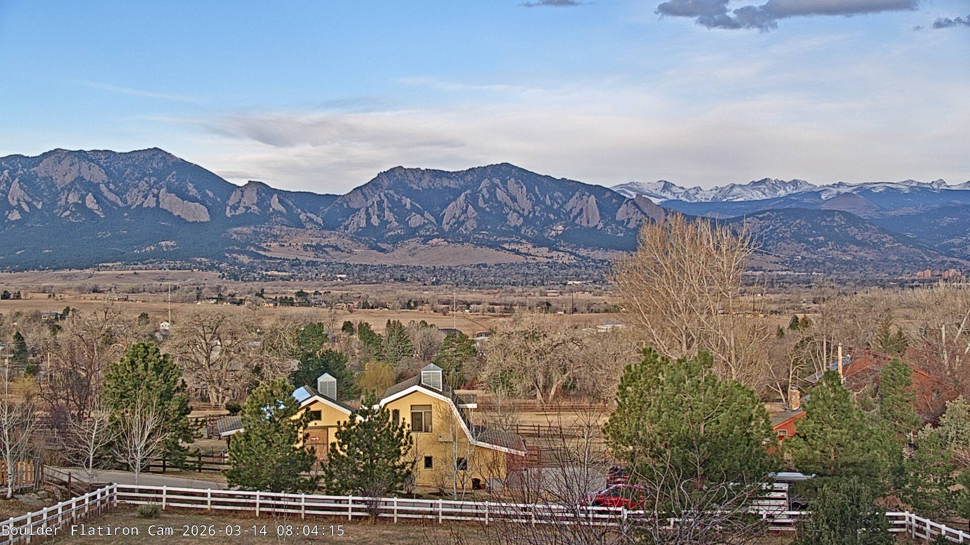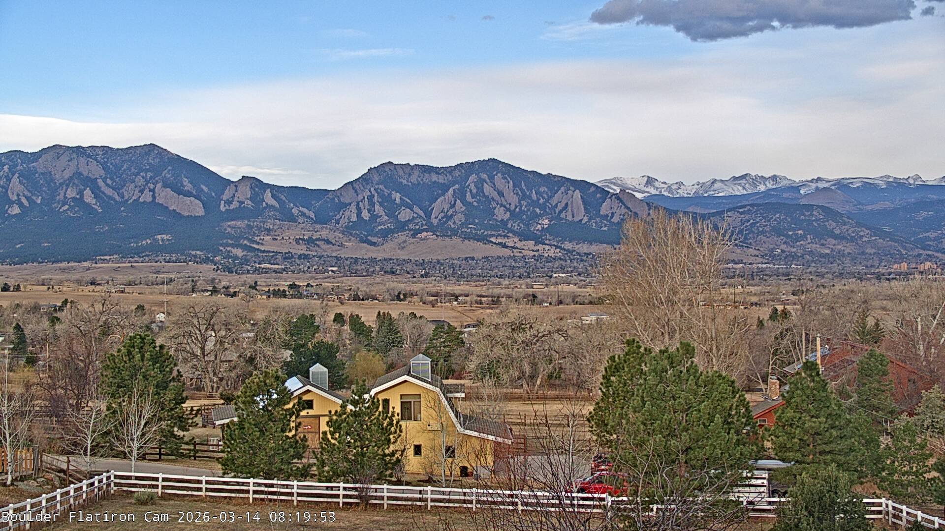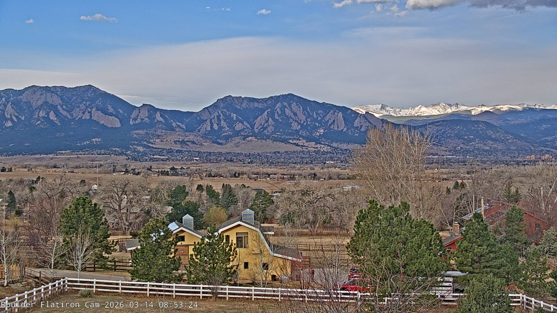 The Louisville cam is the original Boulder Flatiron Cam with it’s view to the west of the Flatirons, South Boulder and the Indian Peaks from the Davidson Mesa area of Louisville.  Be sure to check out the archives, we have almost daily time lapse and archives back to February 2009.