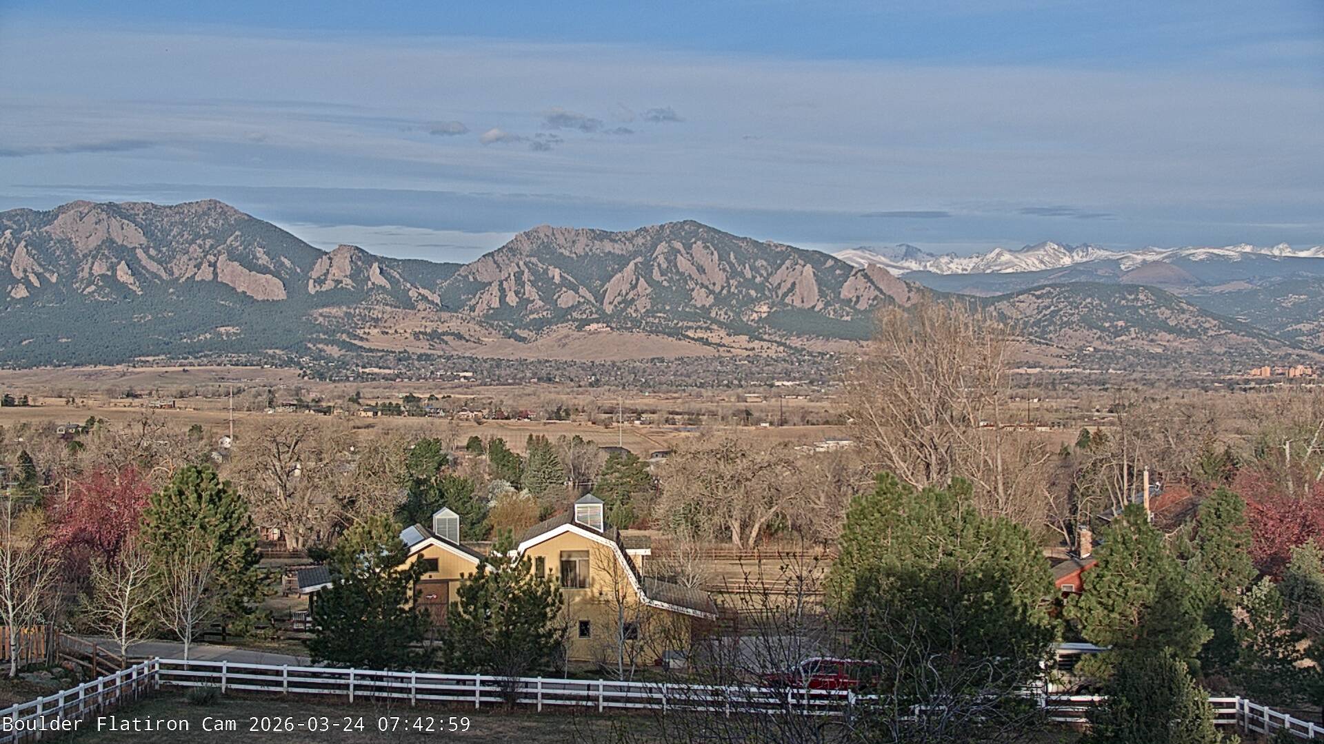 The Louisville cam is the original Boulder Flatiron Cam with it’s view to the west of the Flatirons, South Boulder and the Indian Peaks from the Davidson Mesa area of Louisville.  Be sure to check out the archives, we have almost daily time lapse and archives back to February 2009.