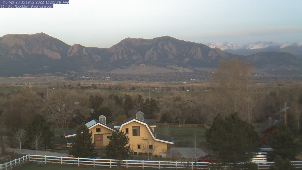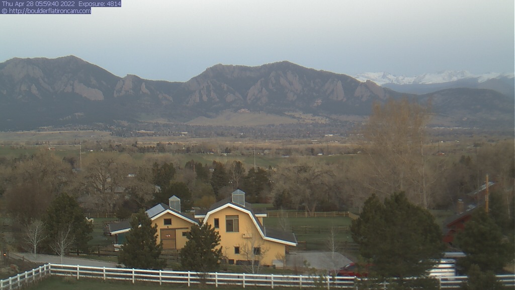 The Louisville cam is the original Boulder Flatiron Cam with it’s view to the west of the Flatirons, South Boulder and the Indian Peaks from the Davidson Mesa area of Louisville.  Be sure to check out the archives, we have almost daily time lapse and archives back to February 2009.