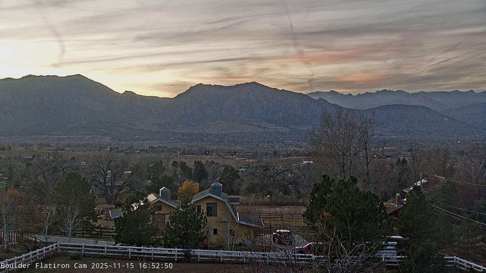 The Louisville cam is the original Boulder Flatiron Cam with it’s view to the west of the Flatirons, South Boulder and the Indian Peaks from the Davidson Mesa area of Louisville.  Be sure to check out the archives, we have almost daily time lapse and archives back to February 2009.