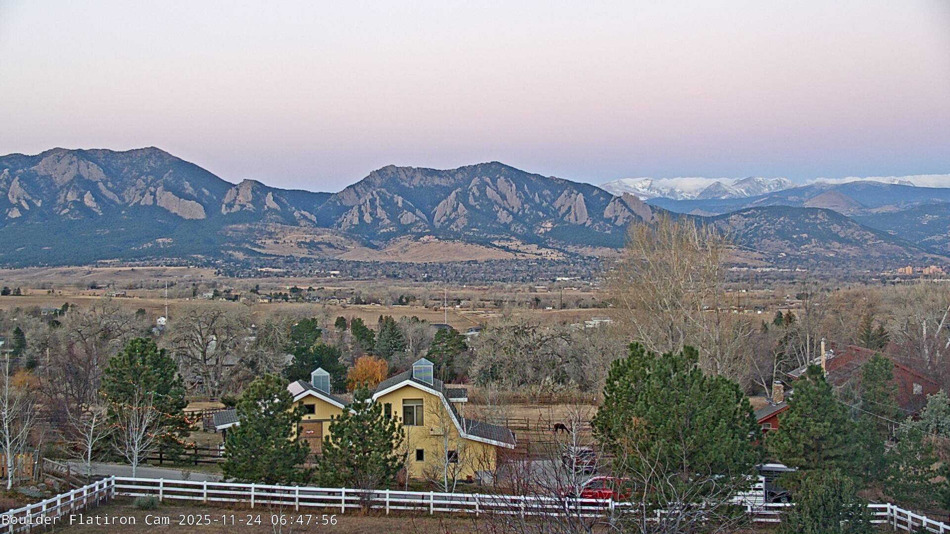 The Louisville cam is the original Boulder Flatiron Cam with it’s view to the west of the Flatirons, South Boulder and the Indian Peaks from the Davidson Mesa area of Louisville.  Be sure to check out the archives, we have almost daily time lapse and archives back to February 2009.