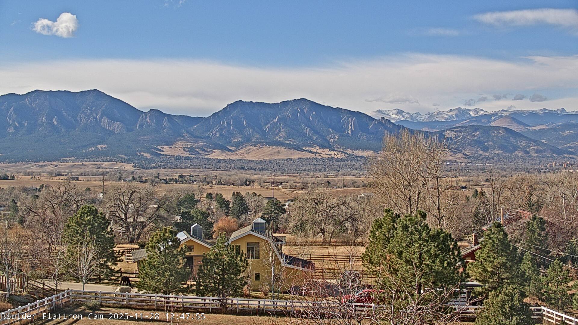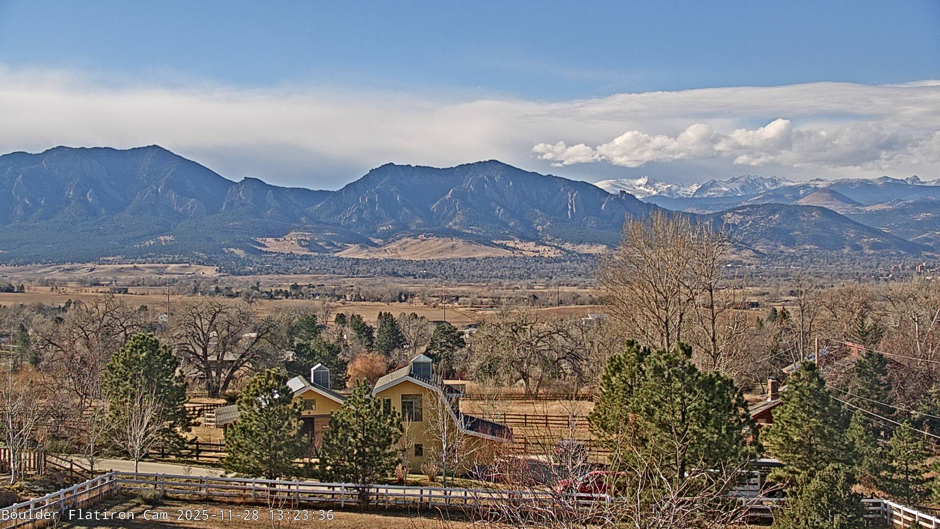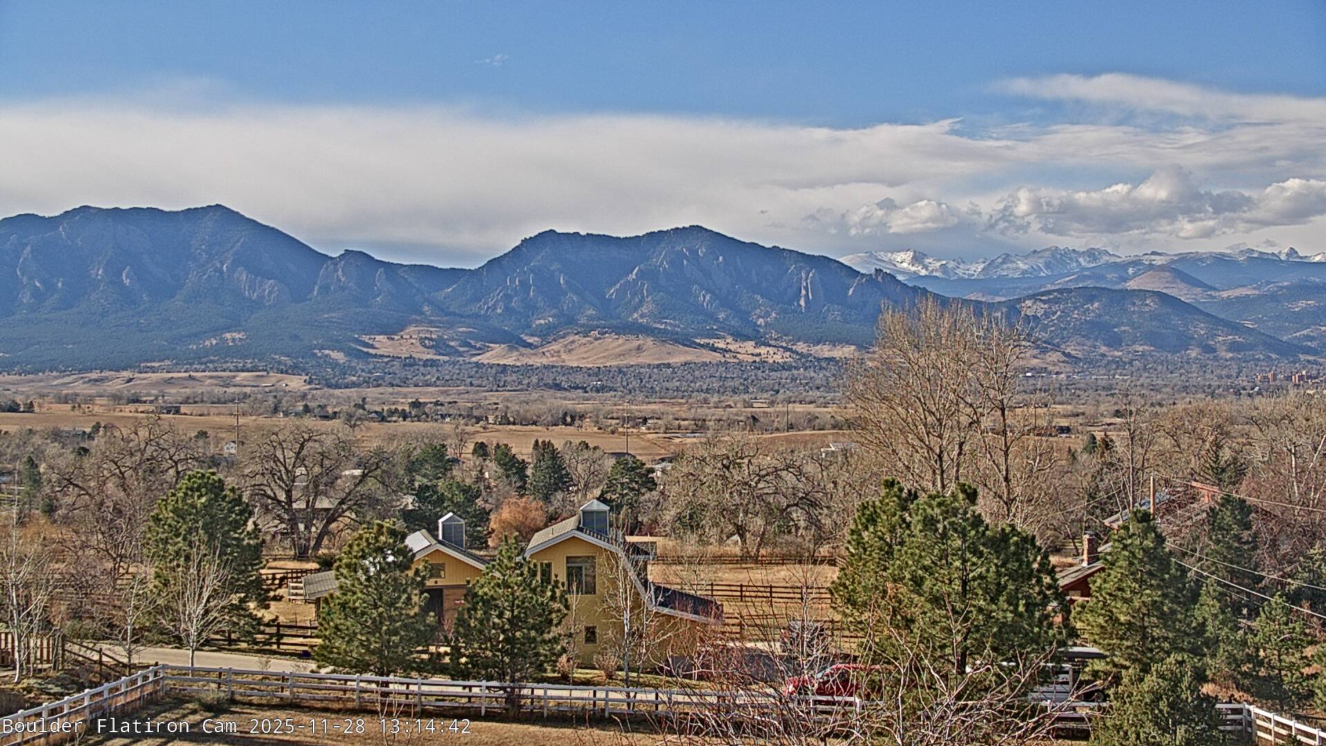 The Louisville cam is the original Boulder Flatiron Cam with it’s view to the west of the Flatirons, South Boulder and the Indian Peaks from the Davidson Mesa area of Louisville.  Be sure to check out the archives, we have almost daily time lapse and archives back to February 2009.