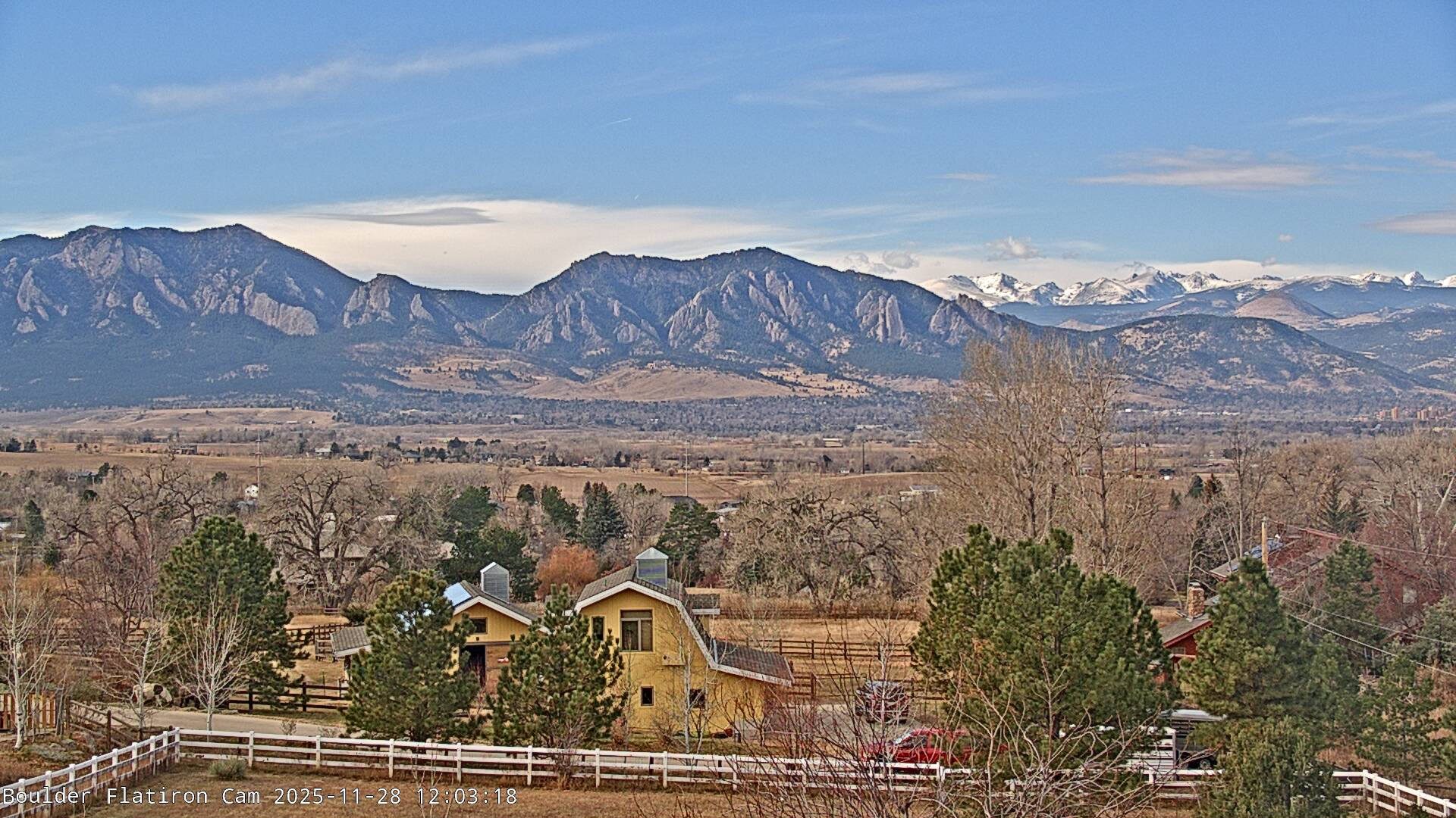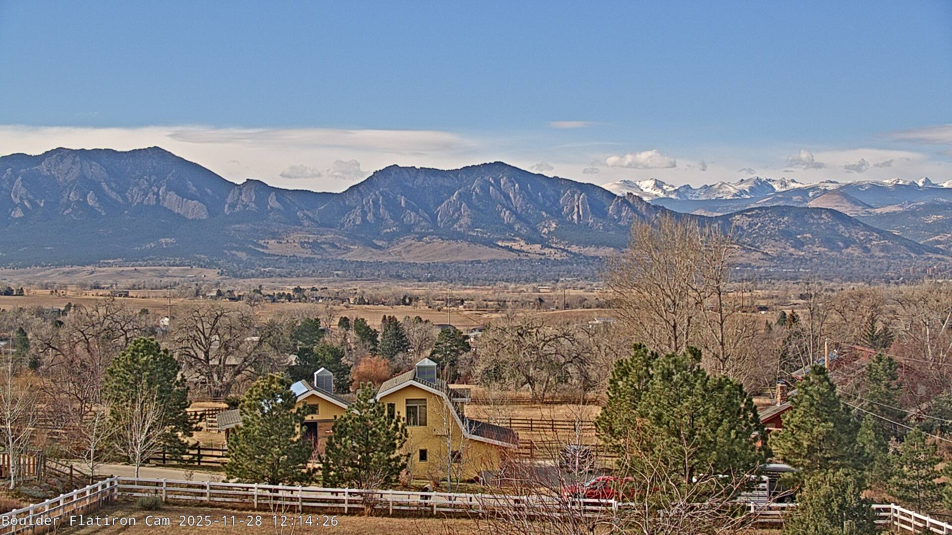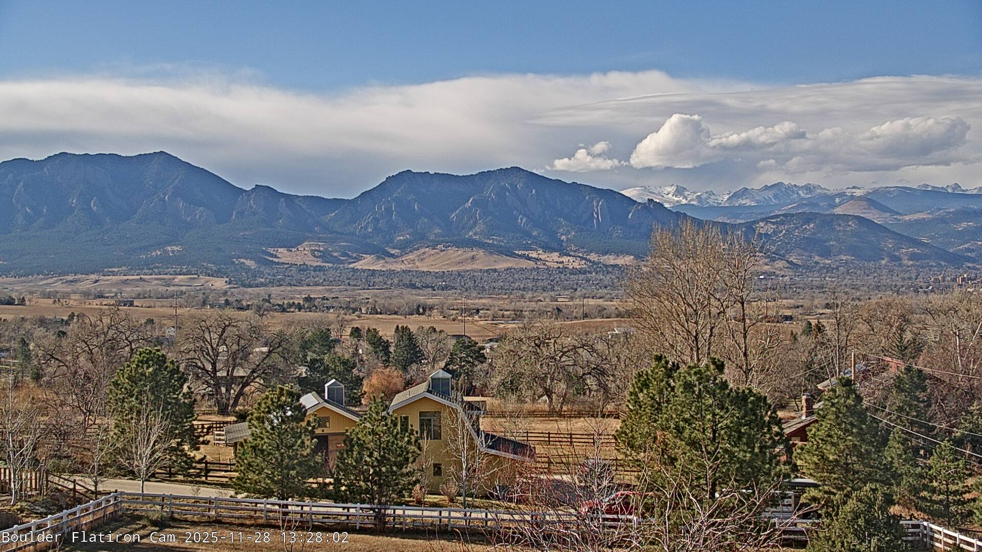 The Louisville cam is the original Boulder Flatiron Cam with it’s view to the west of the Flatirons, South Boulder and the Indian Peaks from the Davidson Mesa area of Louisville.  Be sure to check out the archives, we have almost daily time lapse and archives back to February 2009.