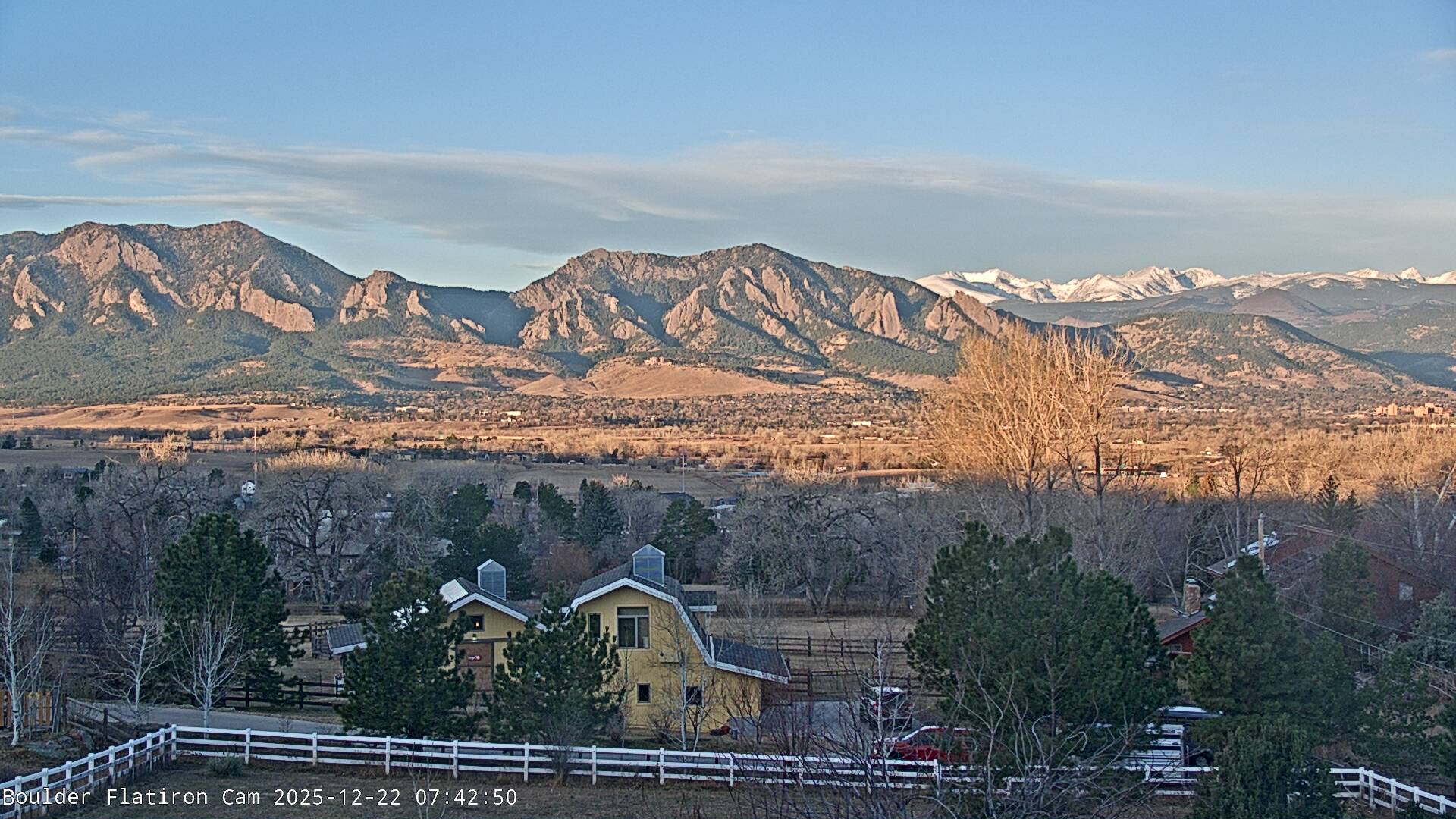 The Louisville cam is the original Boulder Flatiron Cam with it’s view to the west of the Flatirons, South Boulder and the Indian Peaks from the Davidson Mesa area of Louisville.  Be sure to check out the archives, we have almost daily time lapse and archives back to February 2009.