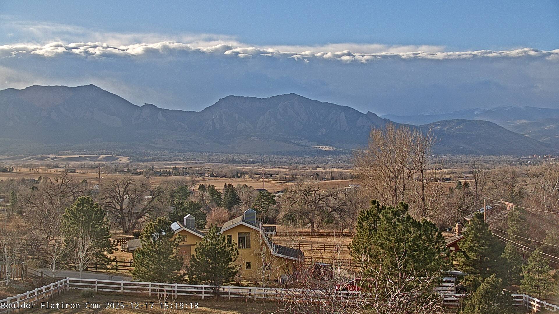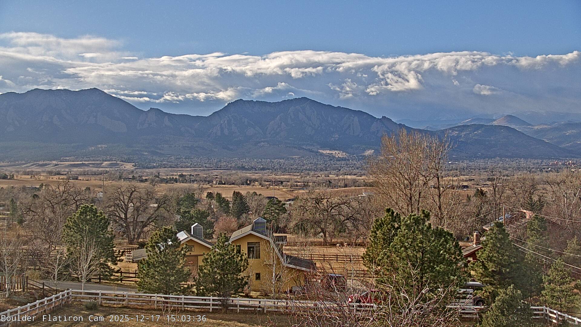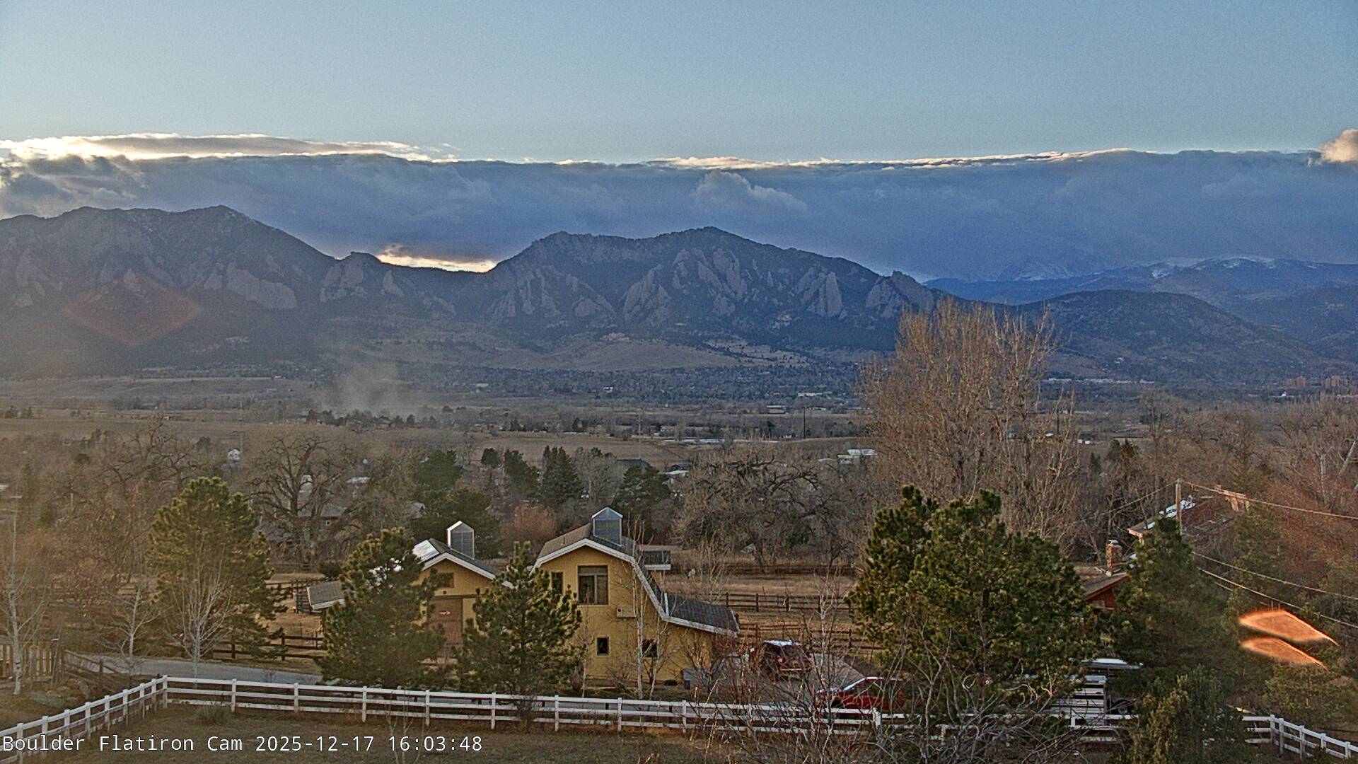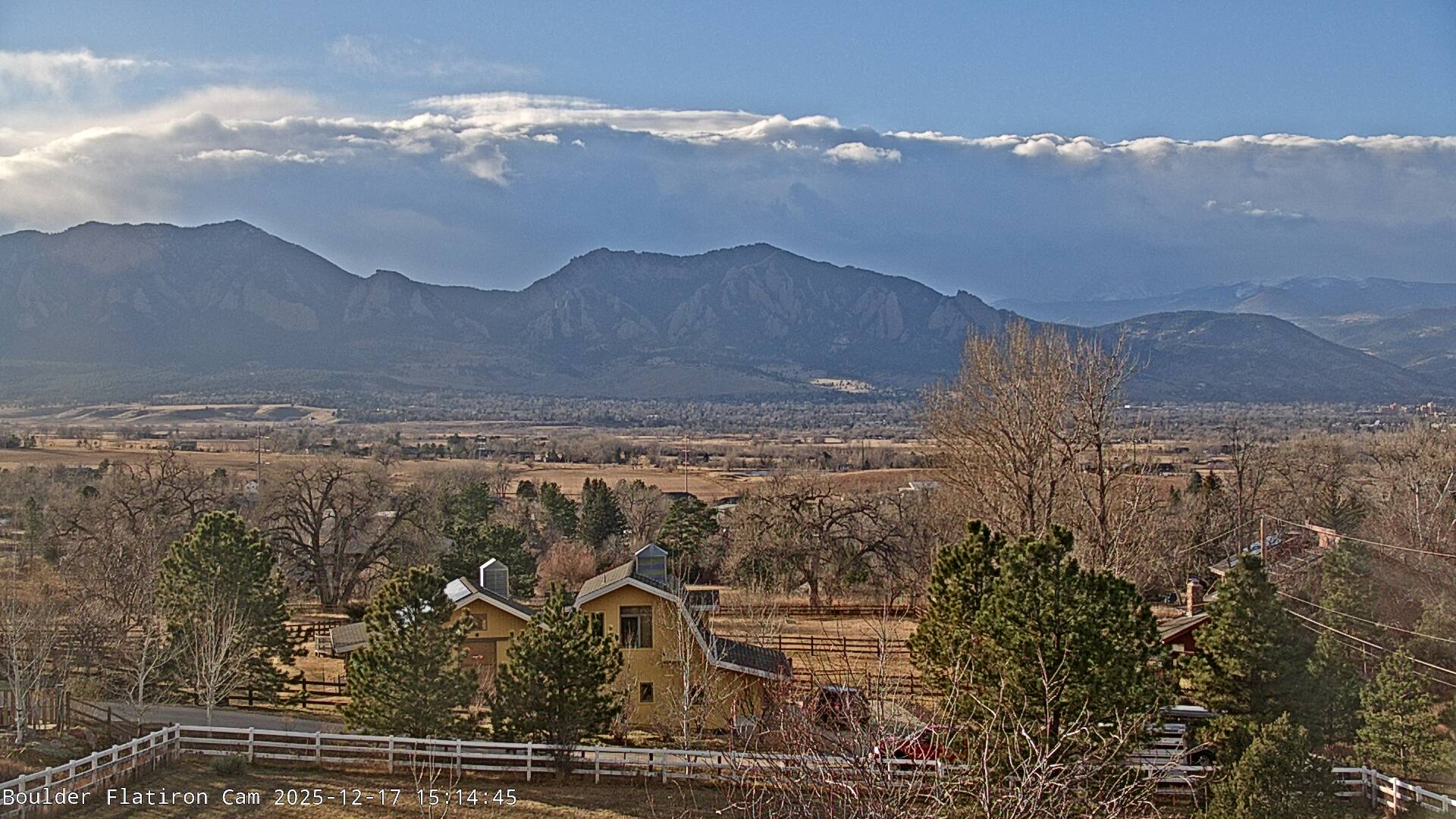 The Louisville cam is the original Boulder Flatiron Cam with it’s view to the west of the Flatirons, South Boulder and the Indian Peaks from the Davidson Mesa area of Louisville.  Be sure to check out the archives, we have almost daily time lapse and archives back to February 2009.