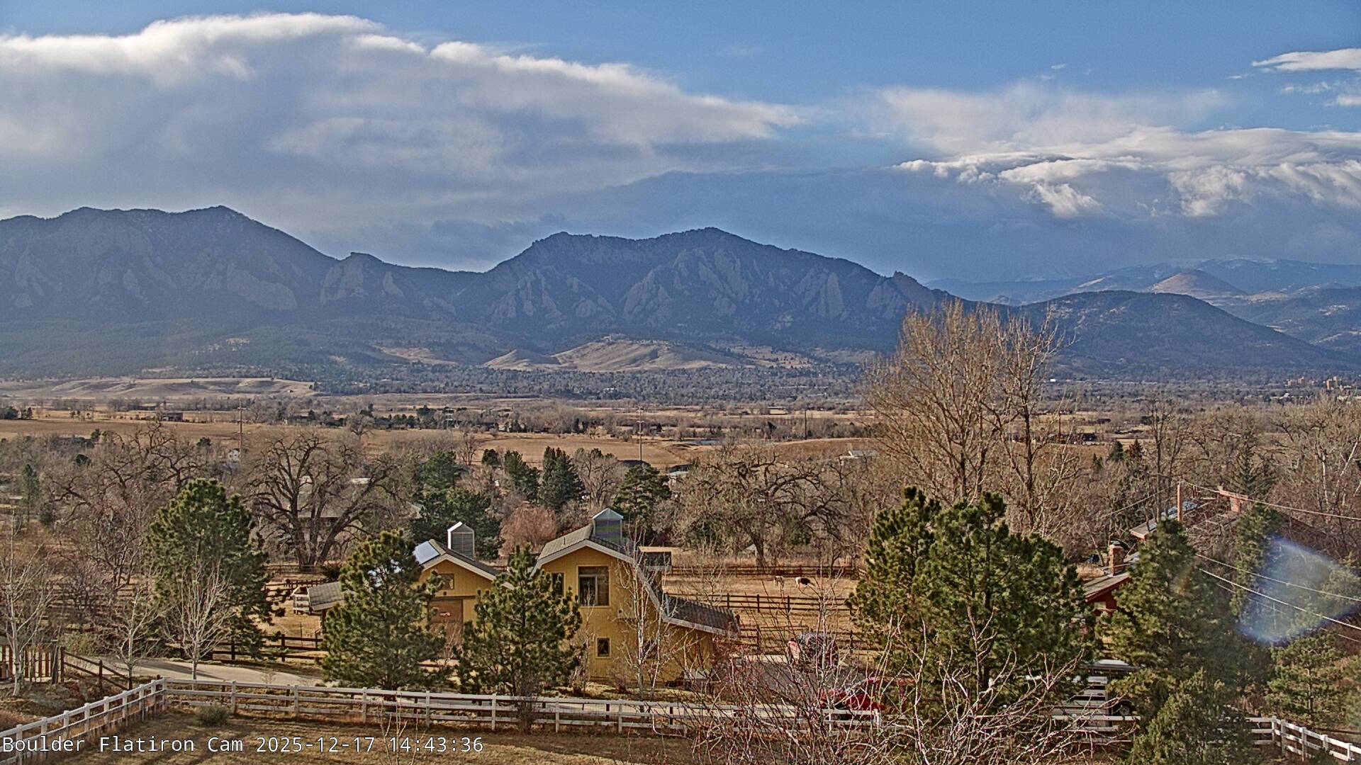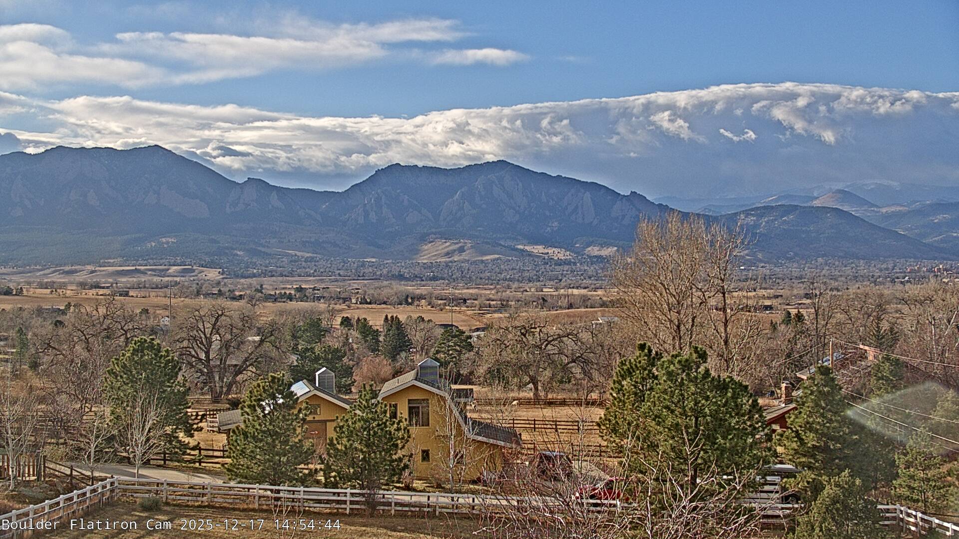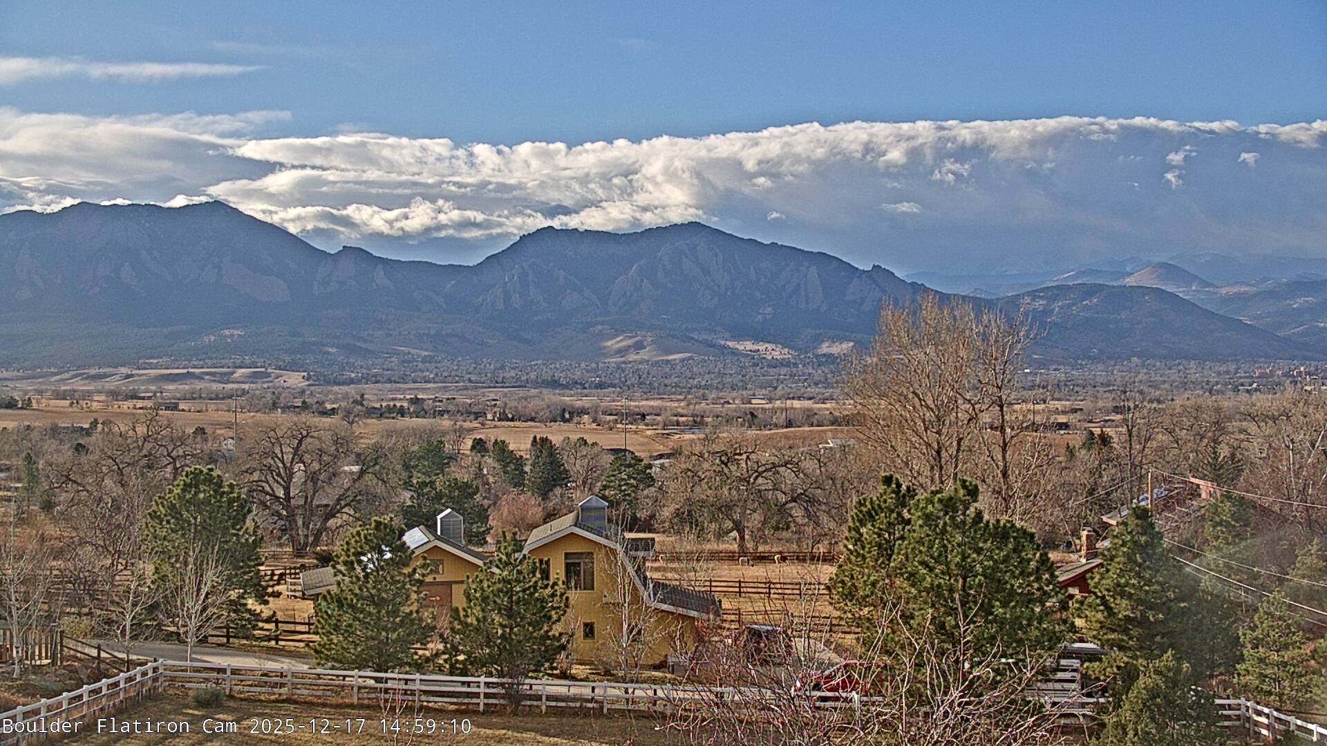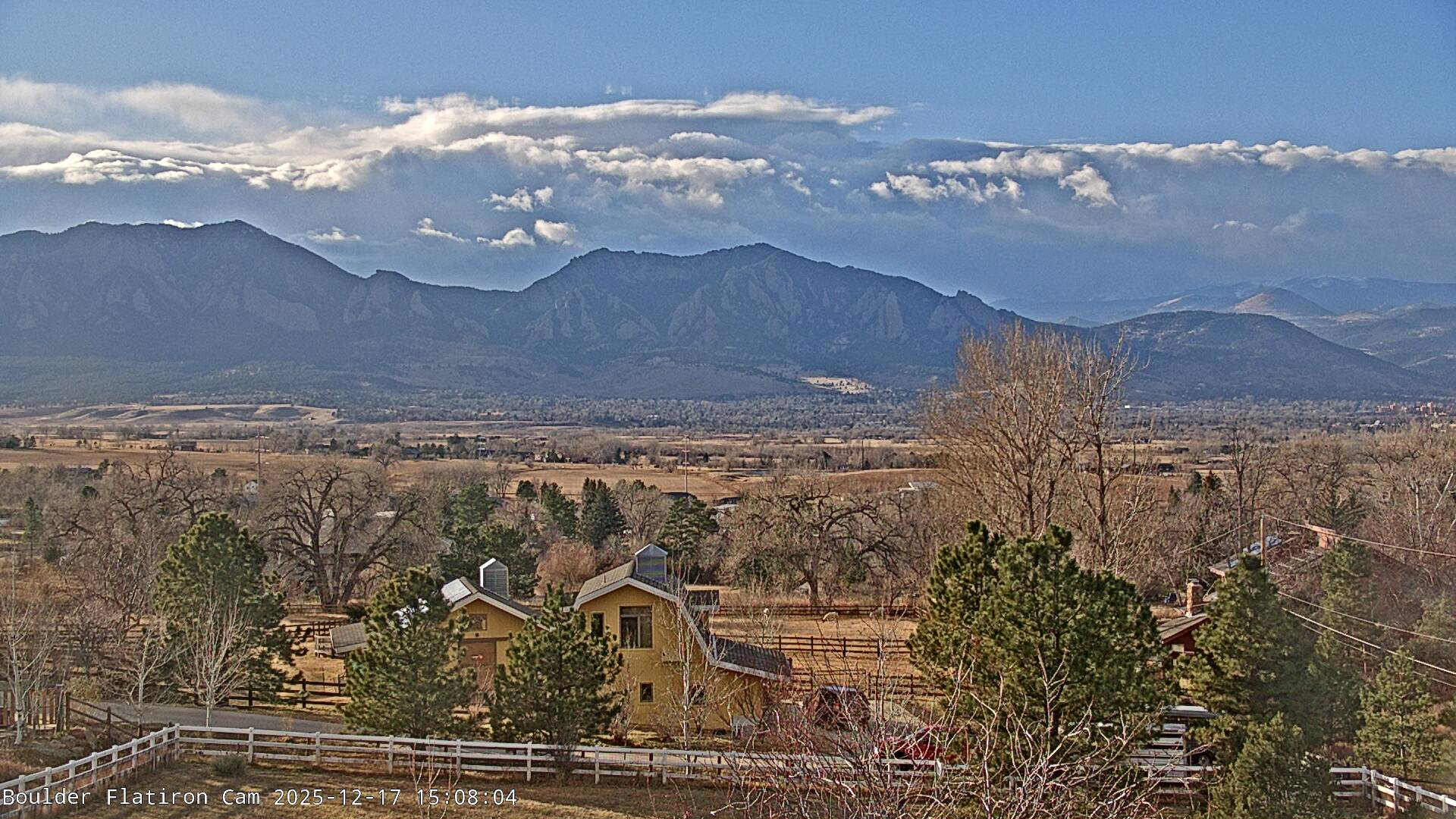 The Louisville cam is the original Boulder Flatiron Cam with it’s view to the west of the Flatirons, South Boulder and the Indian Peaks from the Davidson Mesa area of Louisville.  Be sure to check out the archives, we have almost daily time lapse and archives back to February 2009.