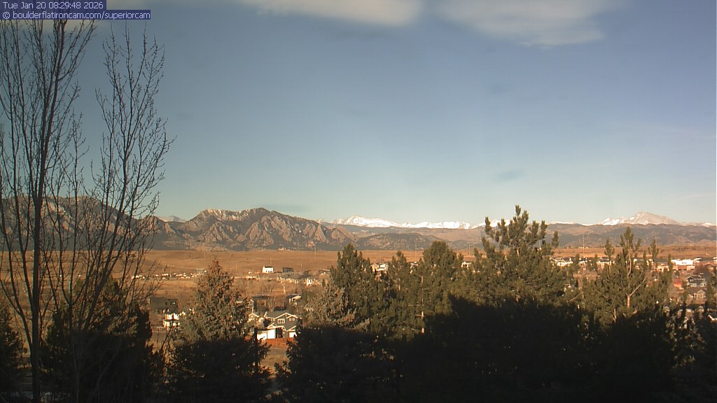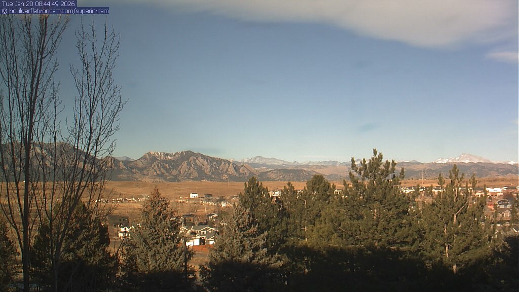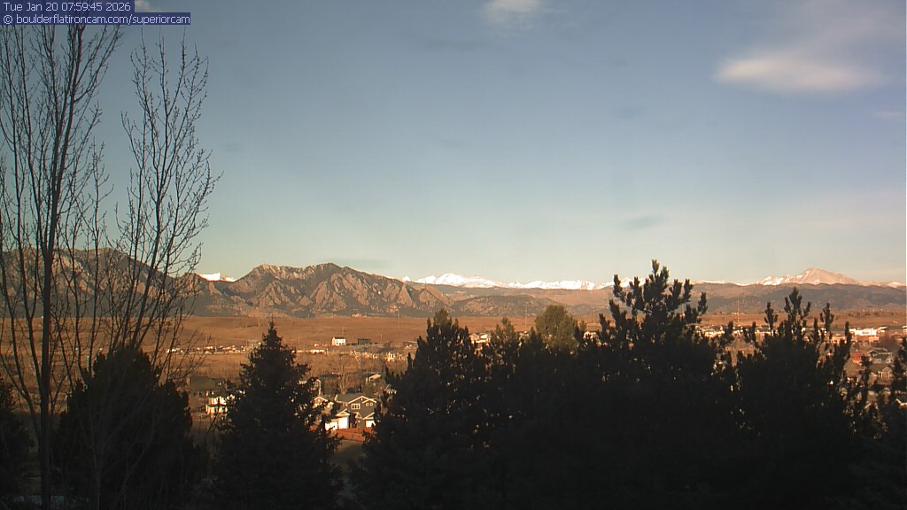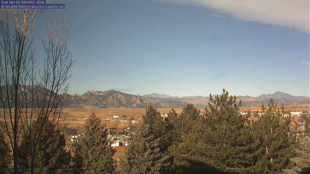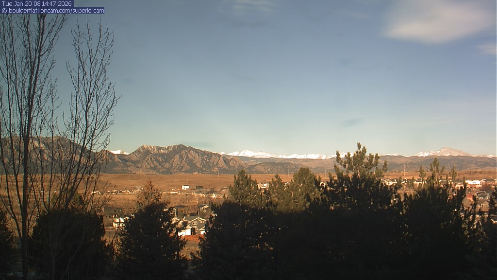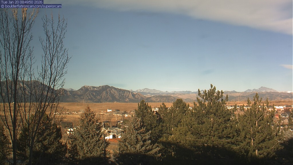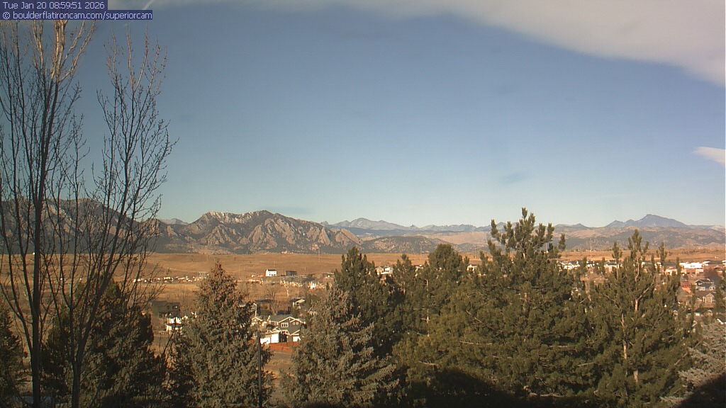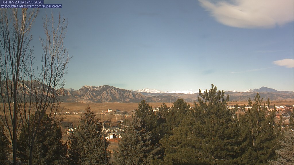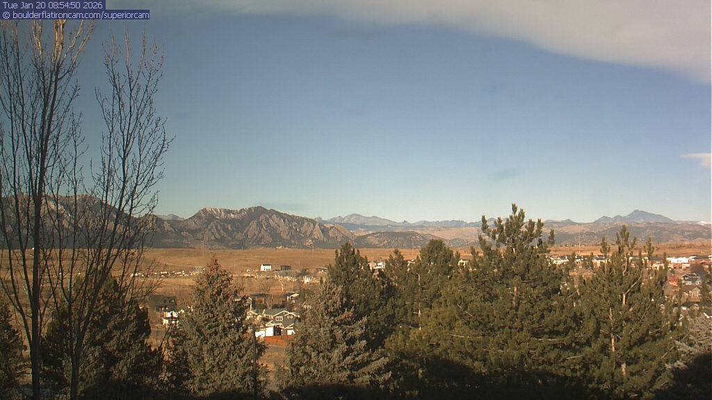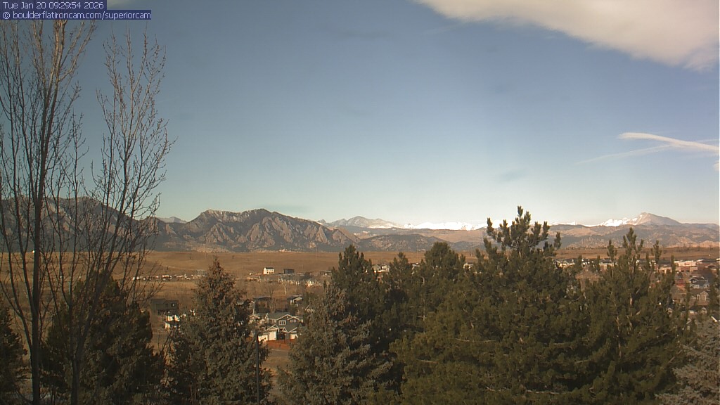 The Superior cam has a view to the northwest over Boulder, the Flatirons, Indian Peaks and Long’s Peak.   The Coal Creek trail is visible in the foreground with old town Superior.