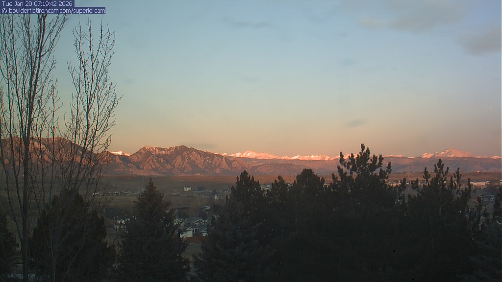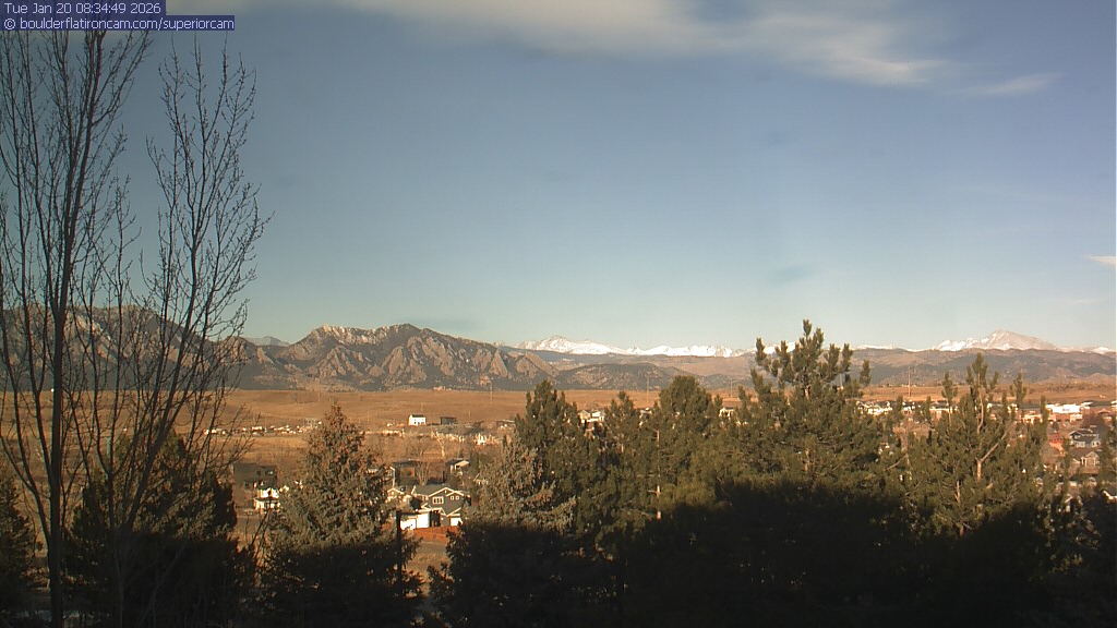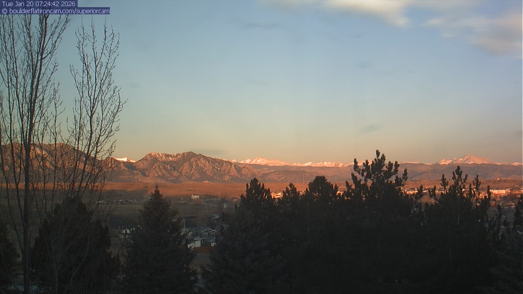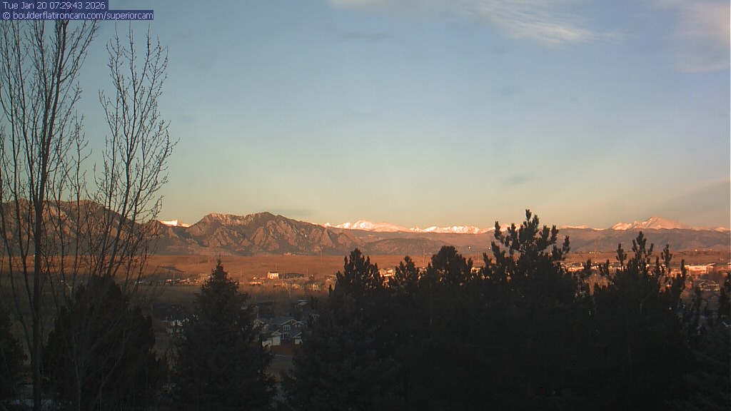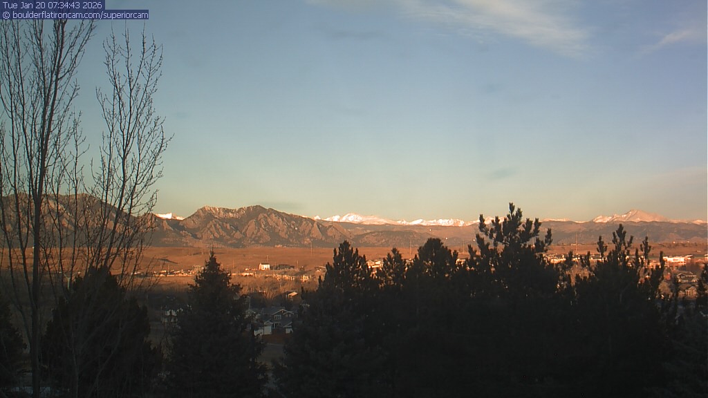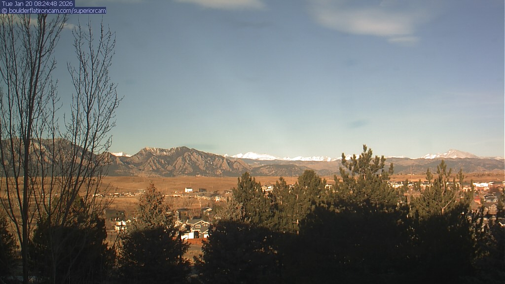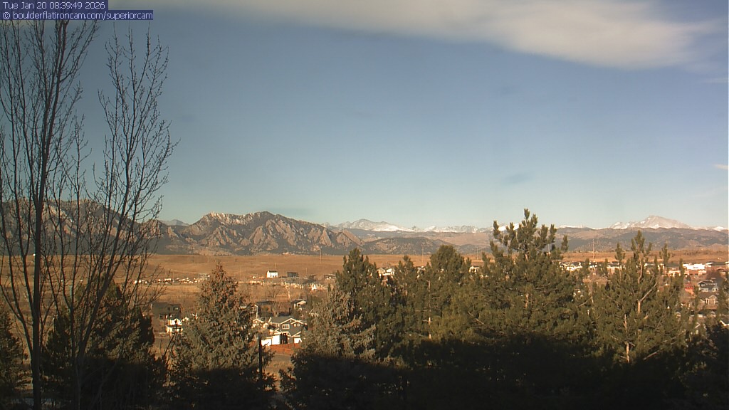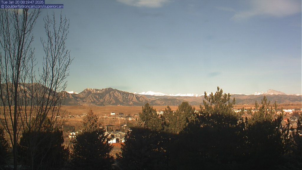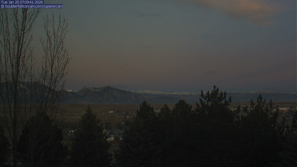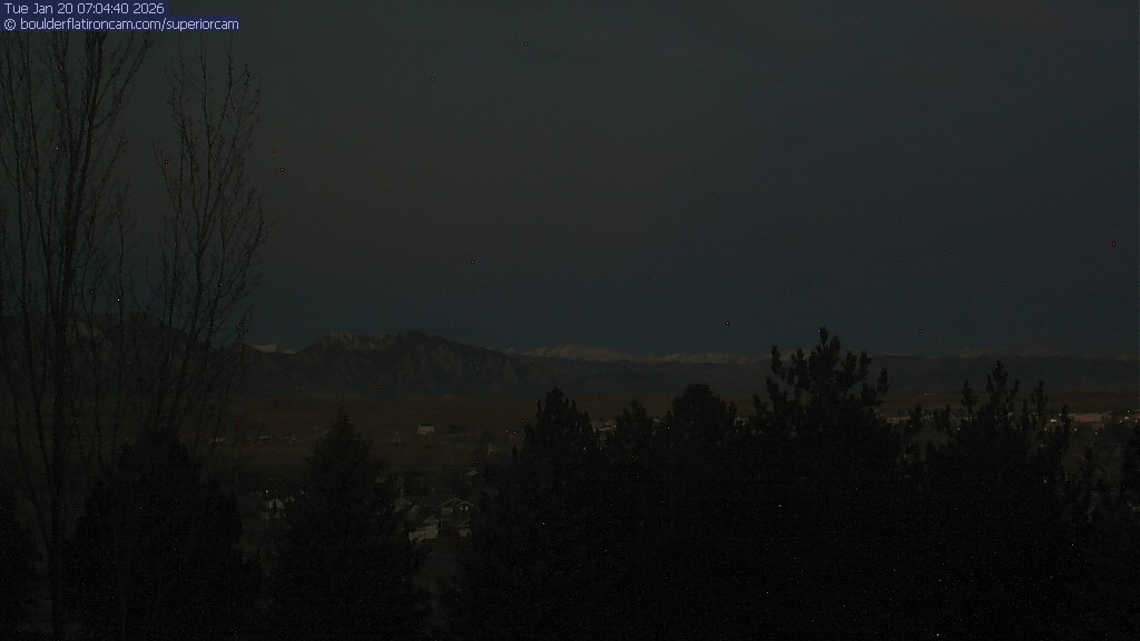 The Superior cam has a view to the northwest over Boulder, the Flatirons, Indian Peaks and Long’s Peak.   The Coal Creek trail is visible in the foreground with old town Superior.