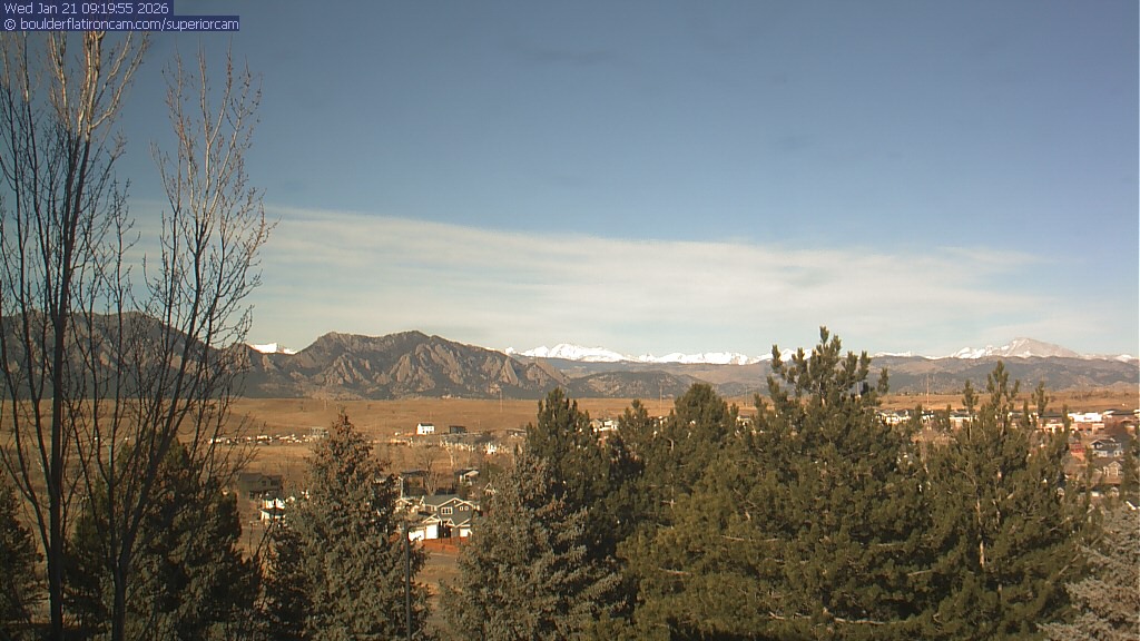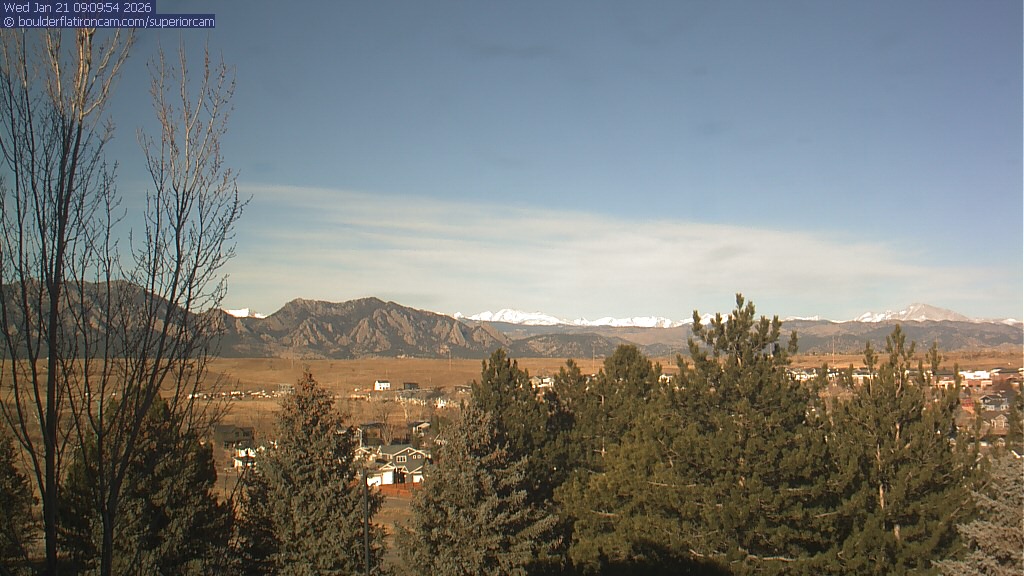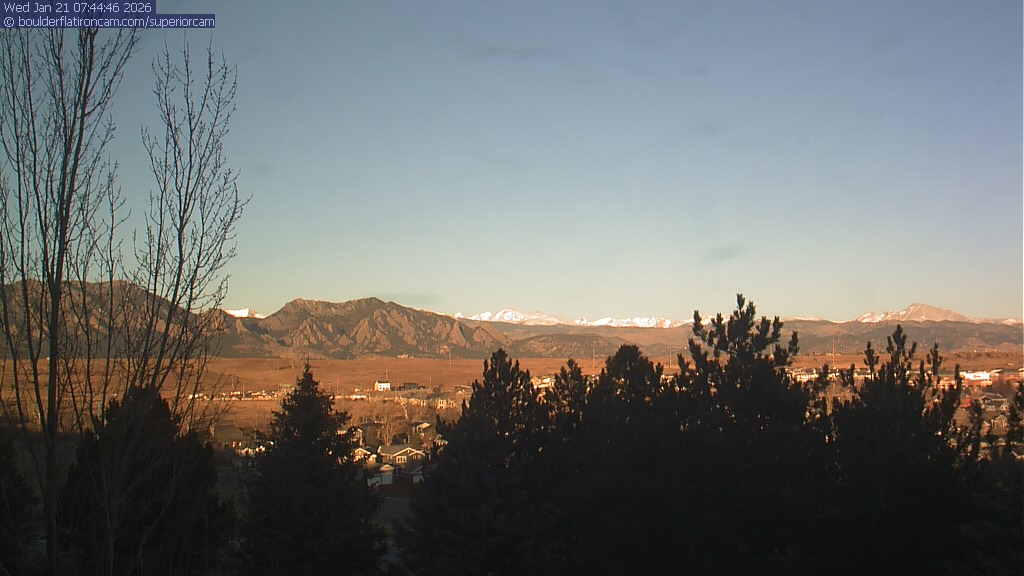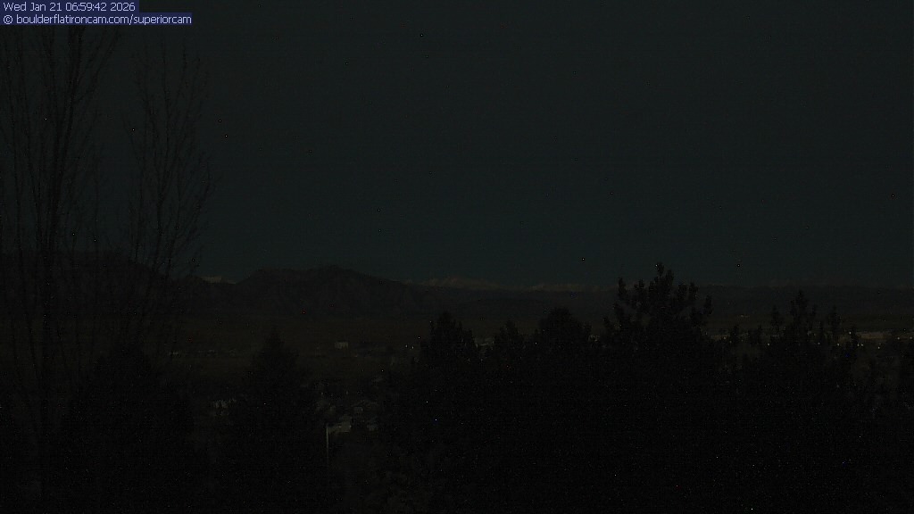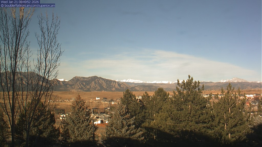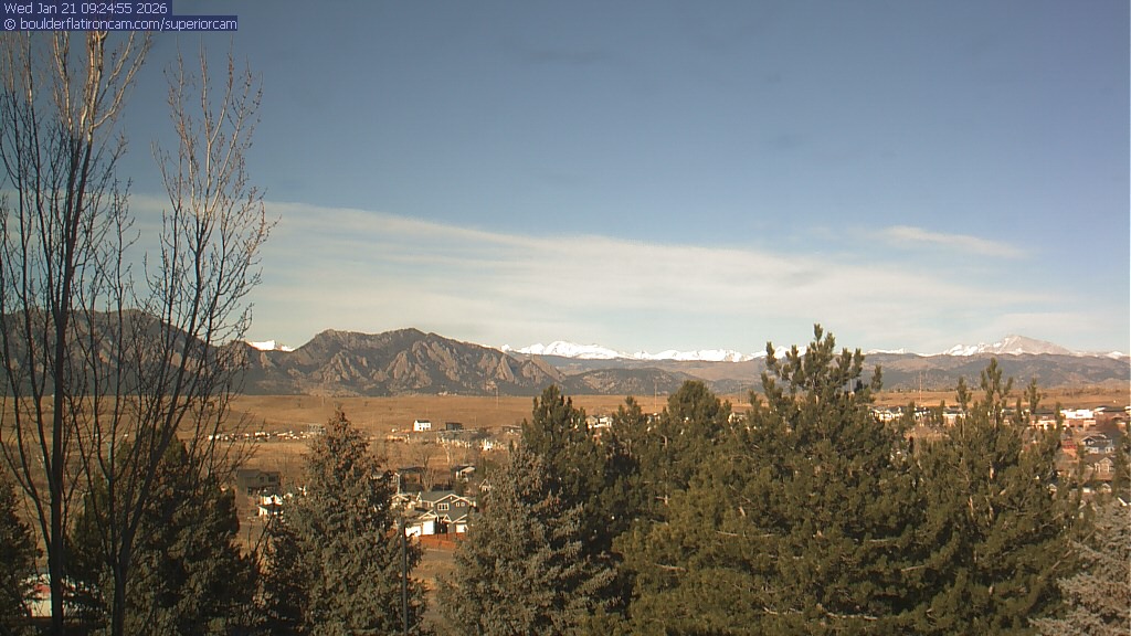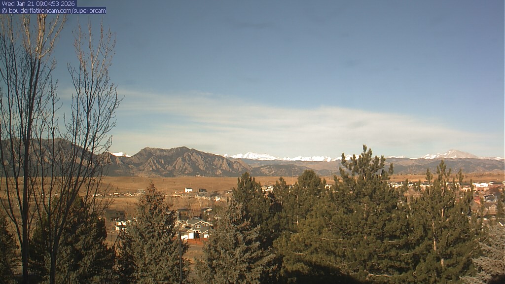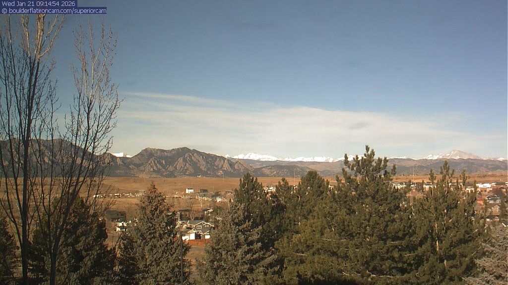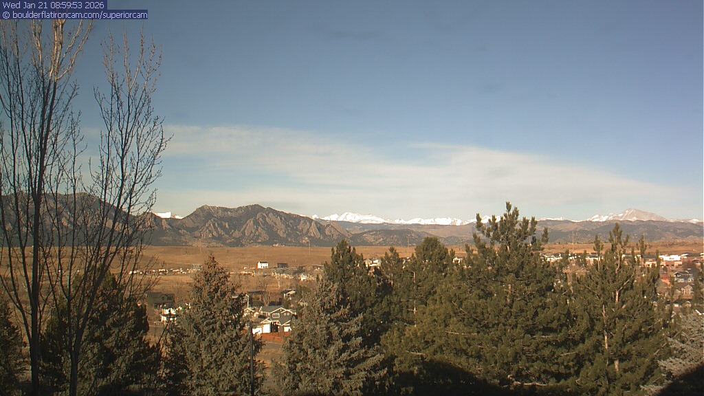 The Superior cam has a view to the northwest over Boulder, the Flatirons, Indian Peaks and Long’s Peak. The Coal Creek trail is visible in the foreground with old town Superior.