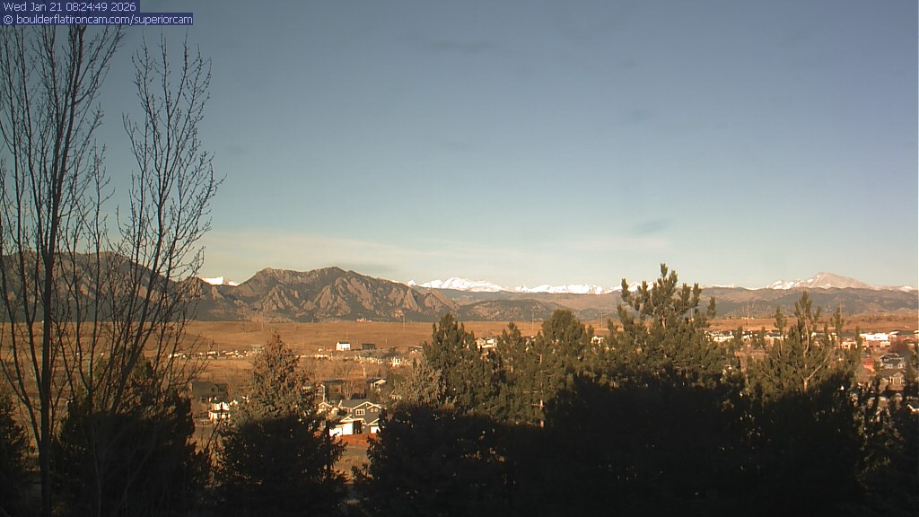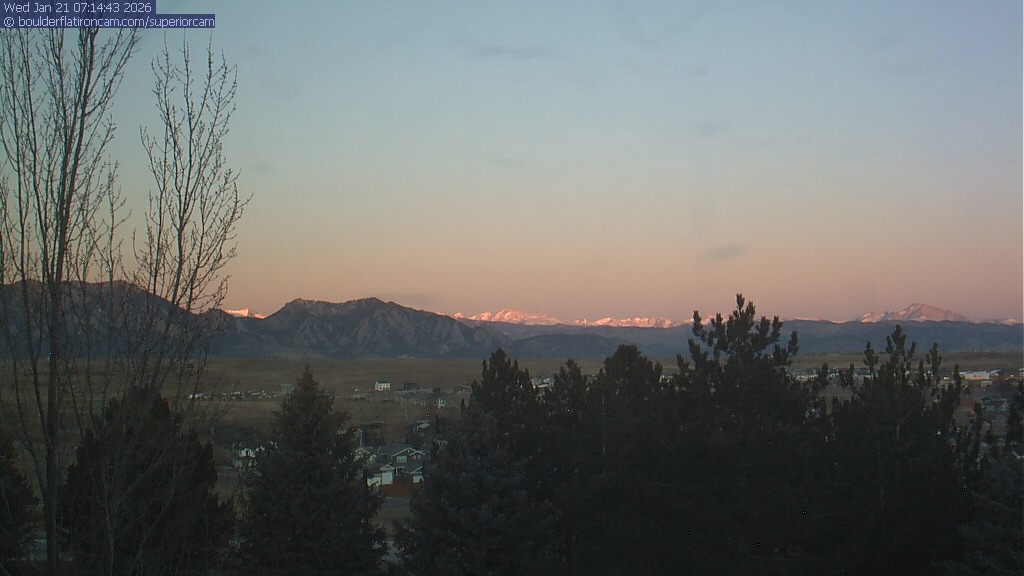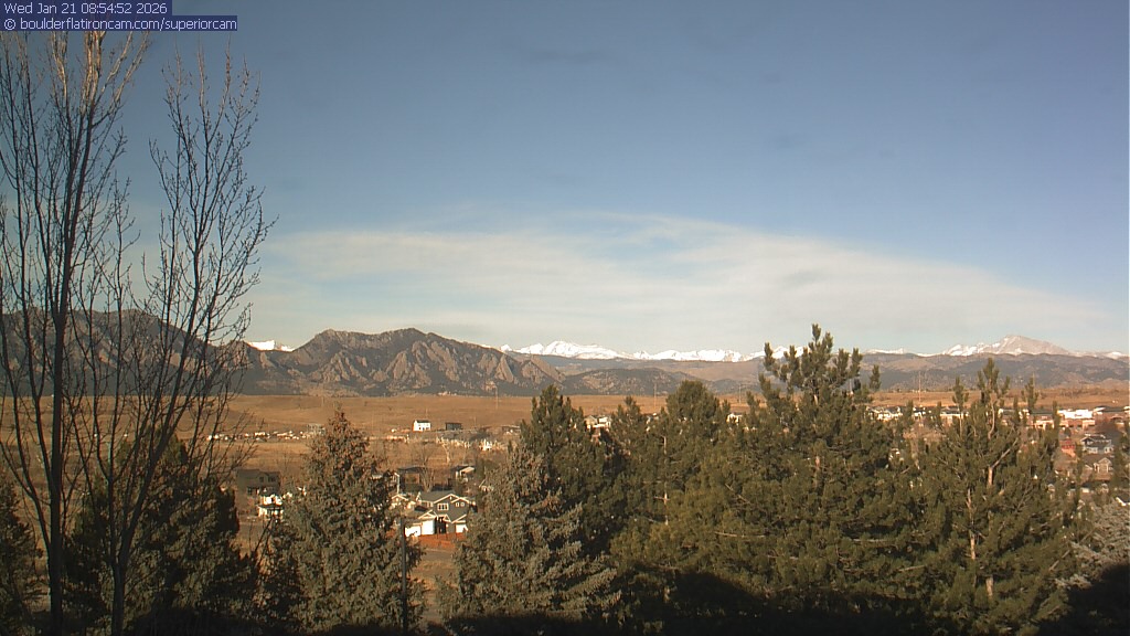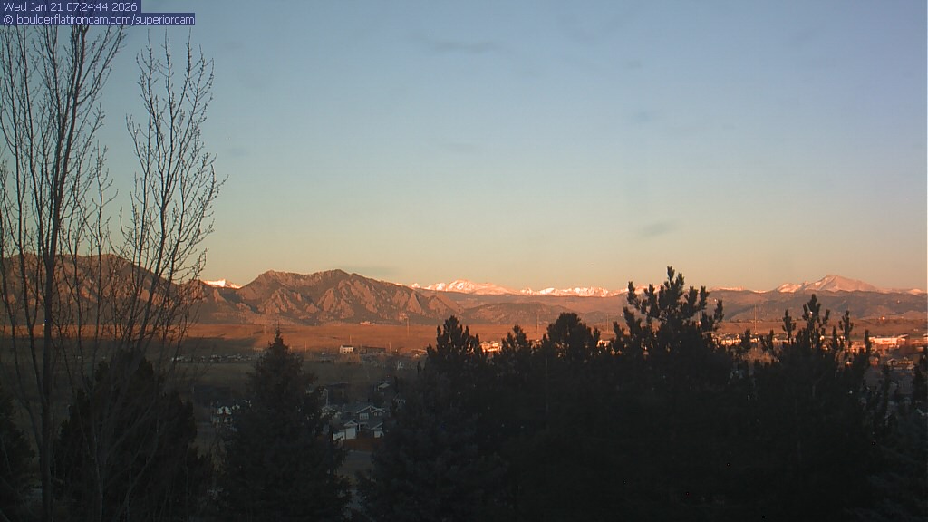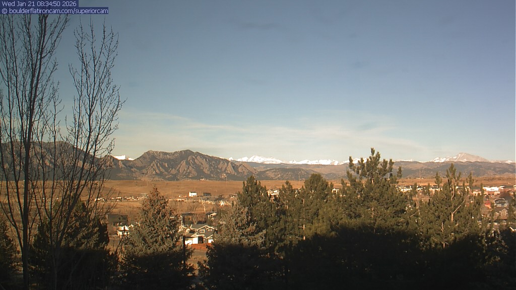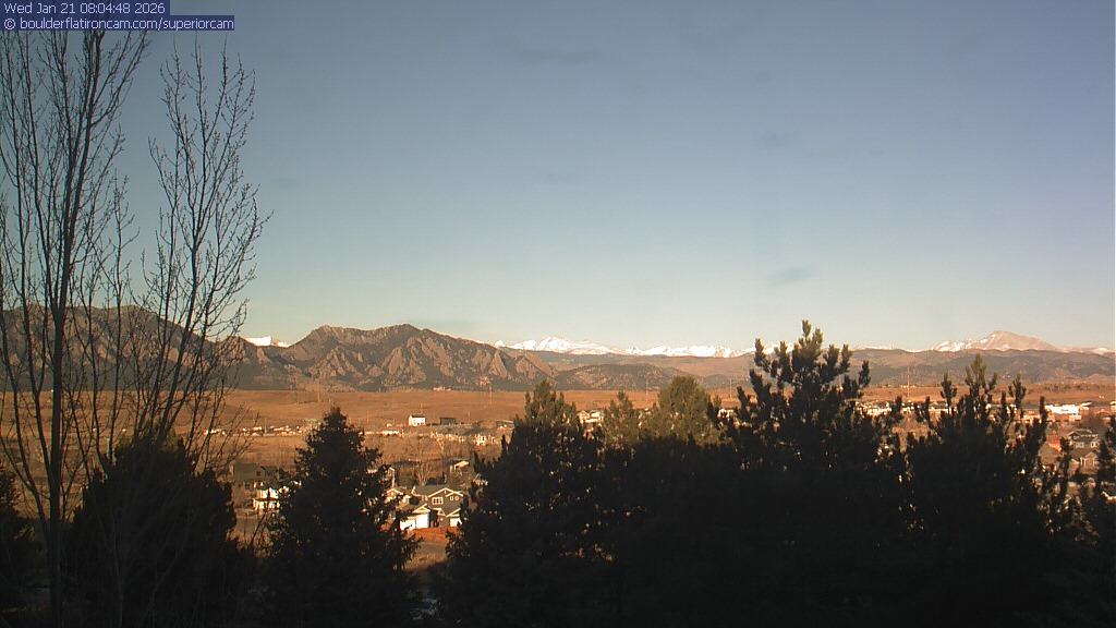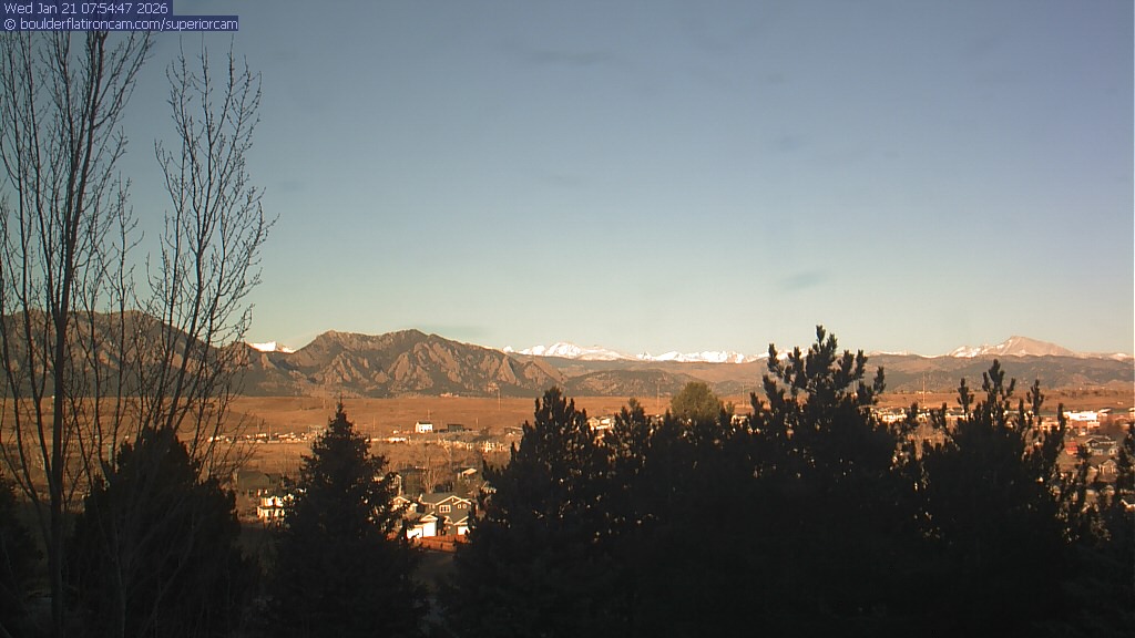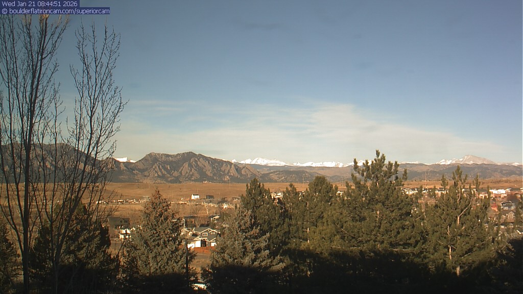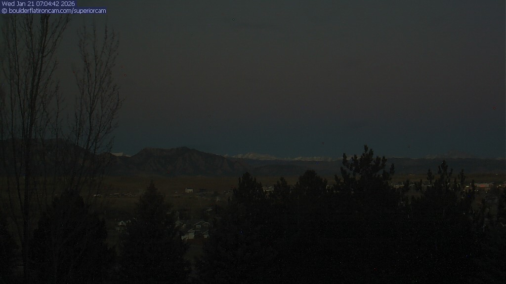 The Superior cam has a view to the northwest over Boulder, the Flatirons, Indian Peaks and Long’s Peak. The Coal Creek trail is visible in the foreground with old town Superior.