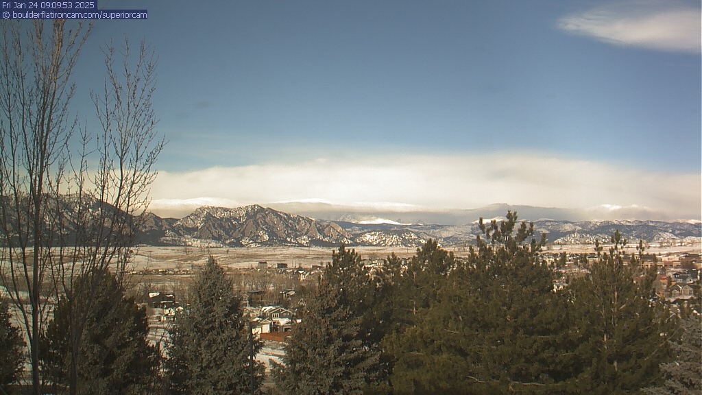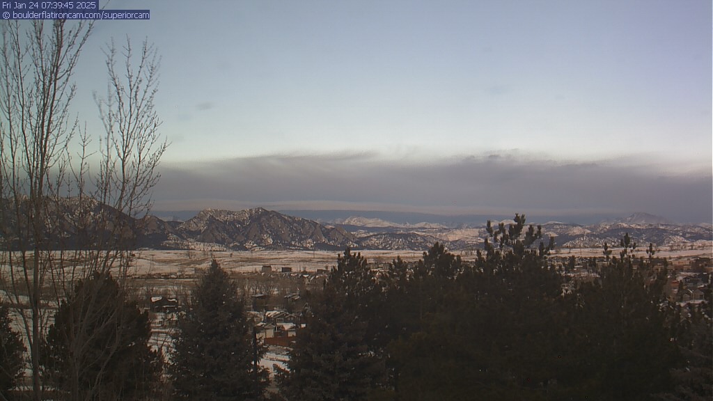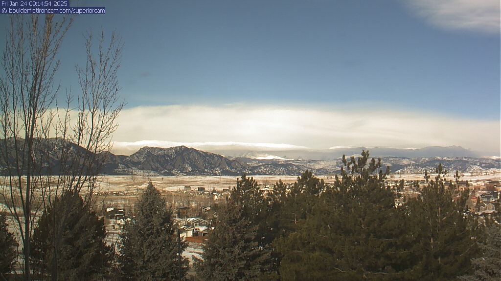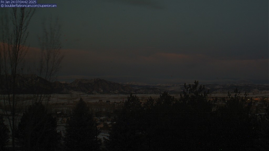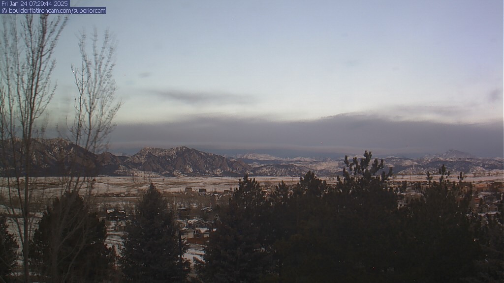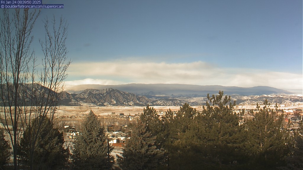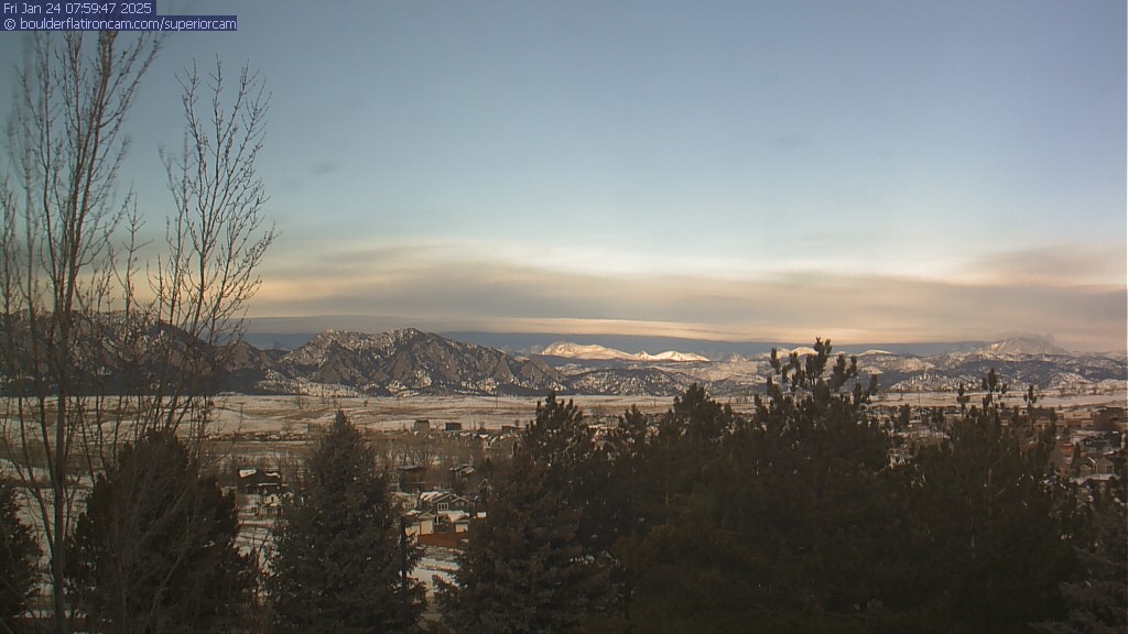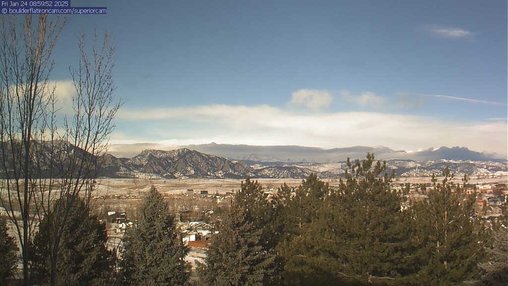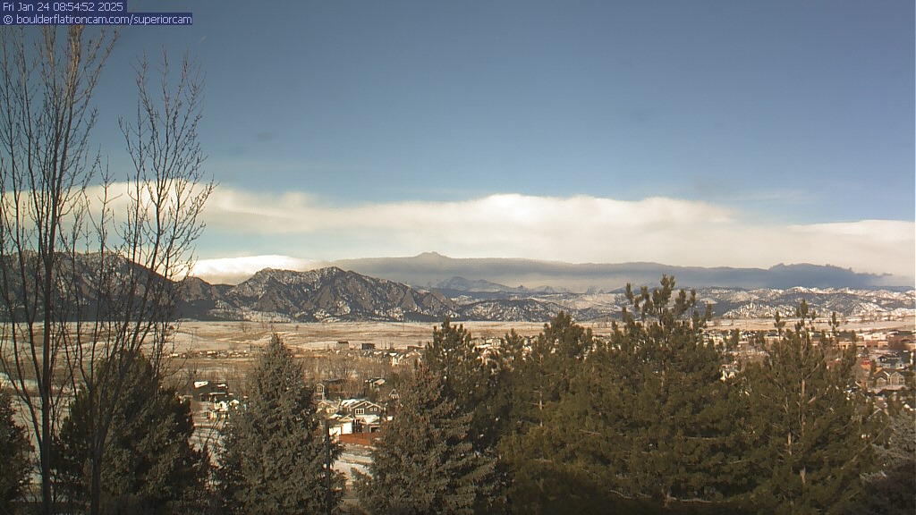 The Superior cam has a great view to the northwest over Boulder, the Flatirons, Indian Peaks and Long’s Peak.   The Coal Creek trail is visible in the foreground with old town Superior.  Thanks to Aweida Venture Partners management for the great view.