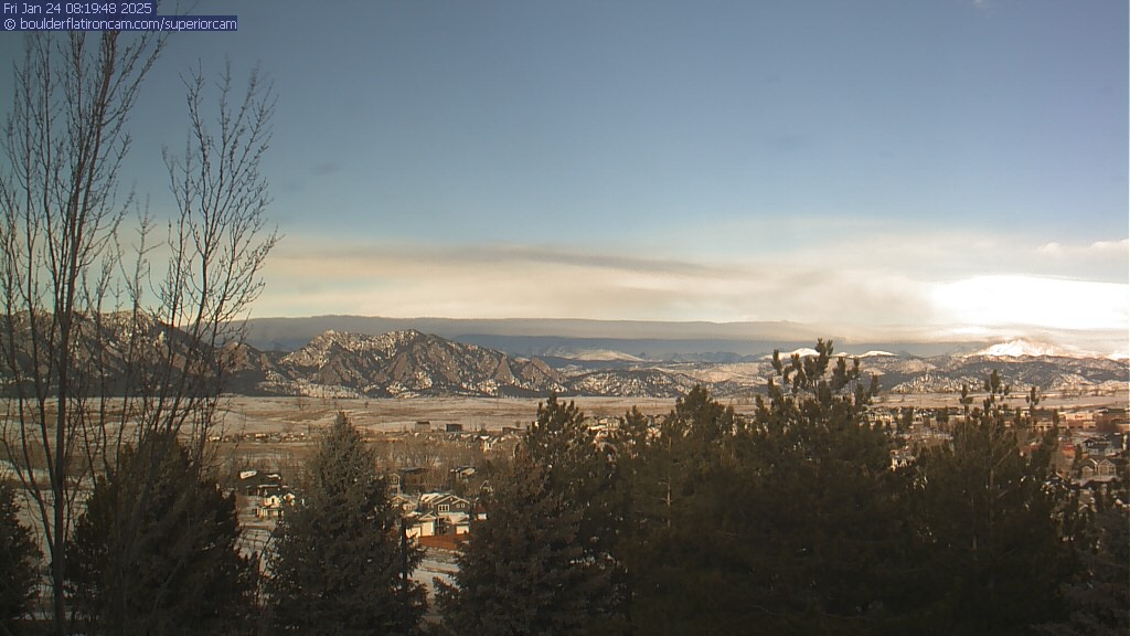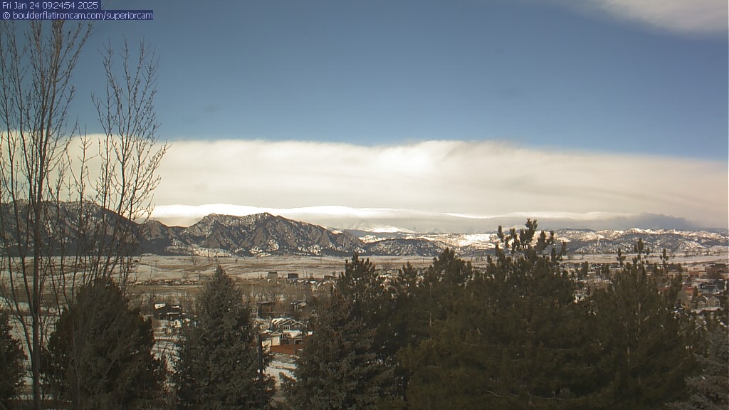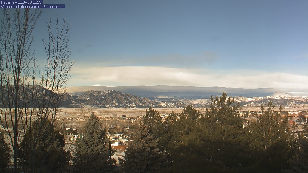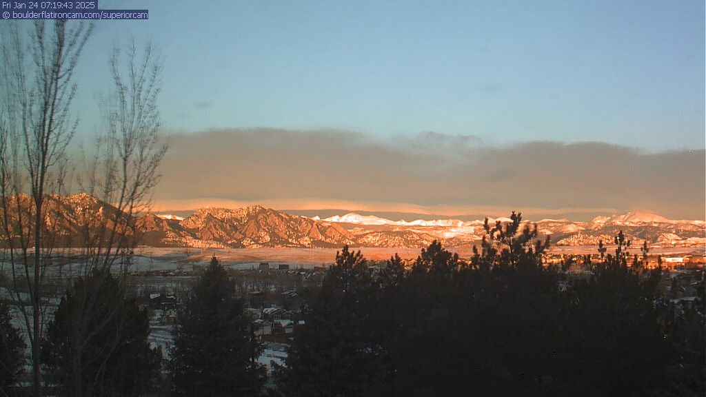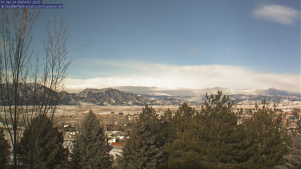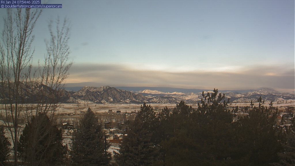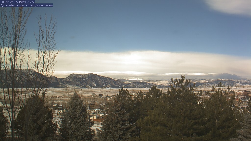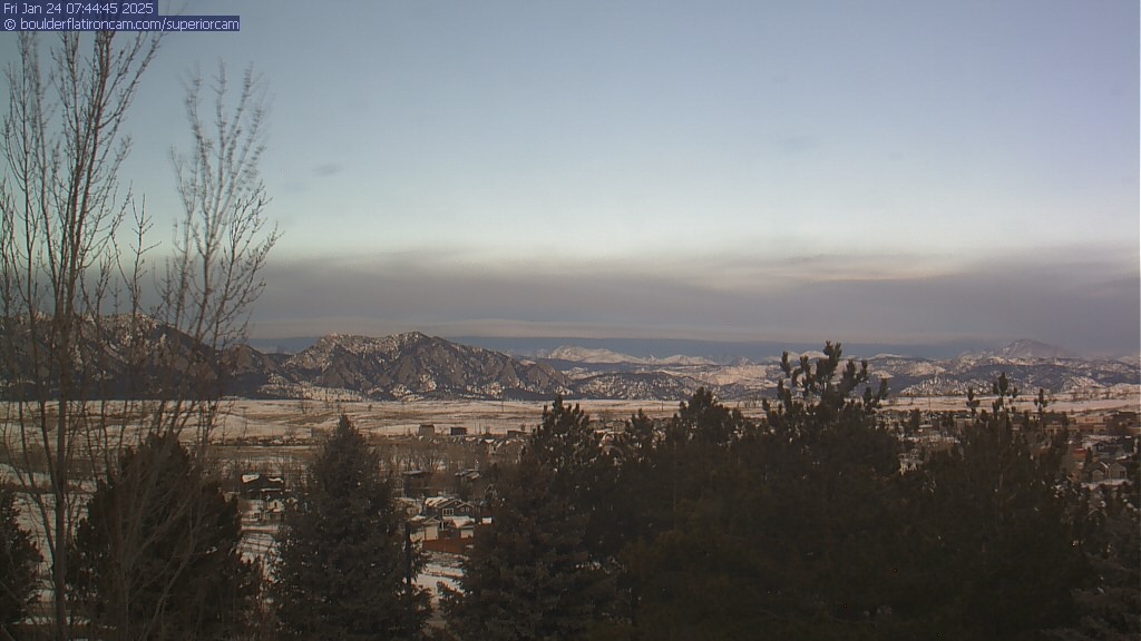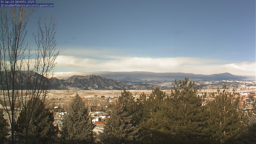 The Superior cam has a great view to the northwest over Boulder, the Flatirons, Indian Peaks and Long’s Peak.   The Coal Creek trail is visible in the foreground with old town Superior.  Thanks to Aweida Venture Partners management for the great view.