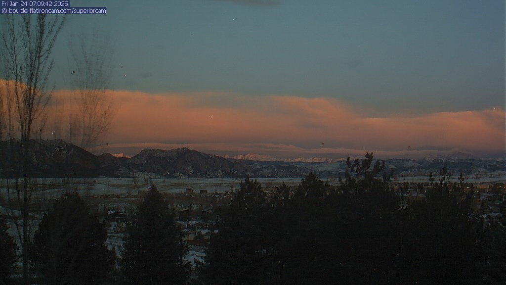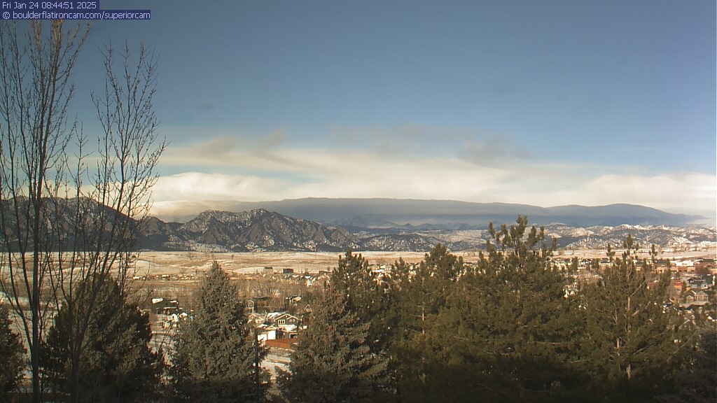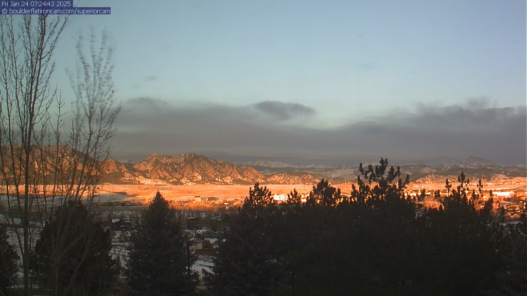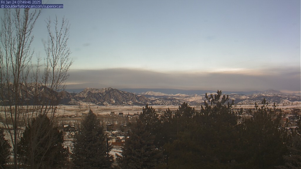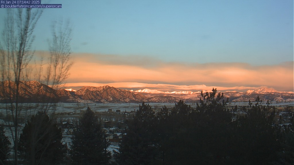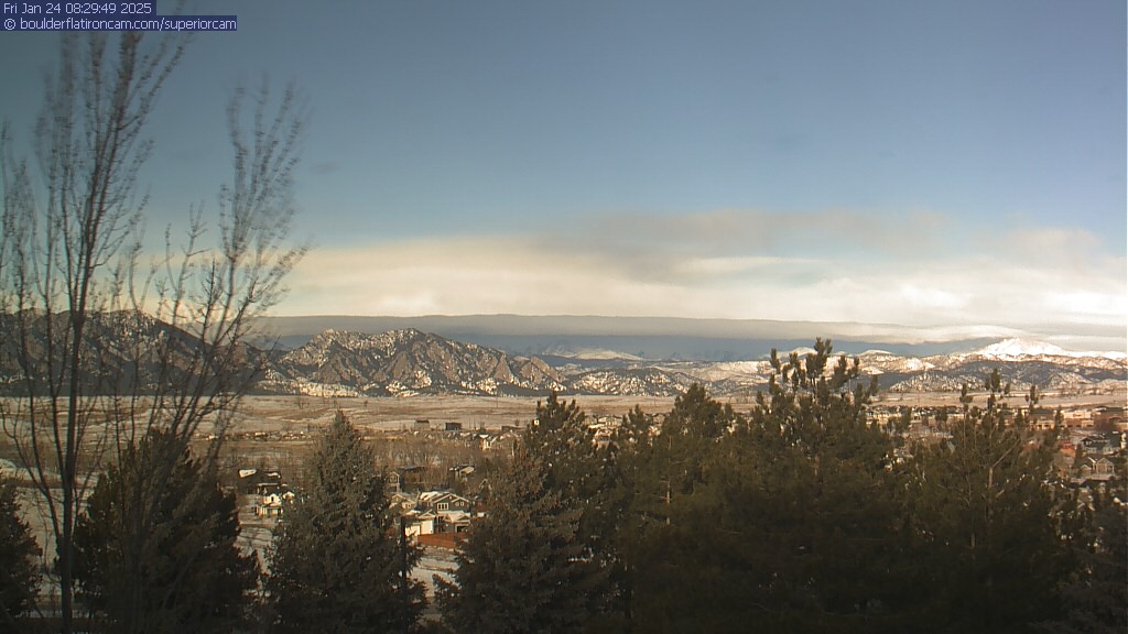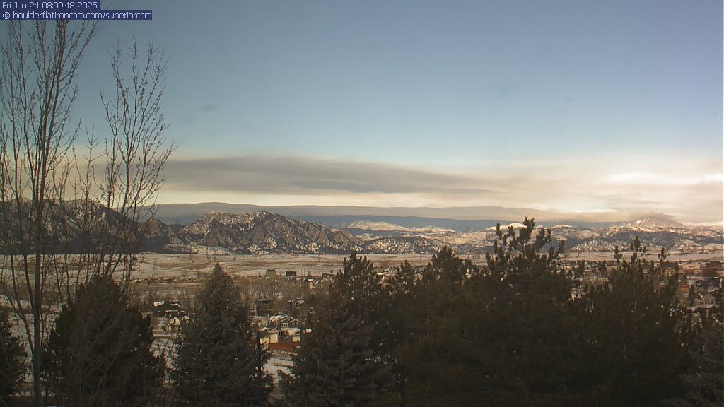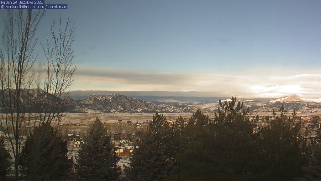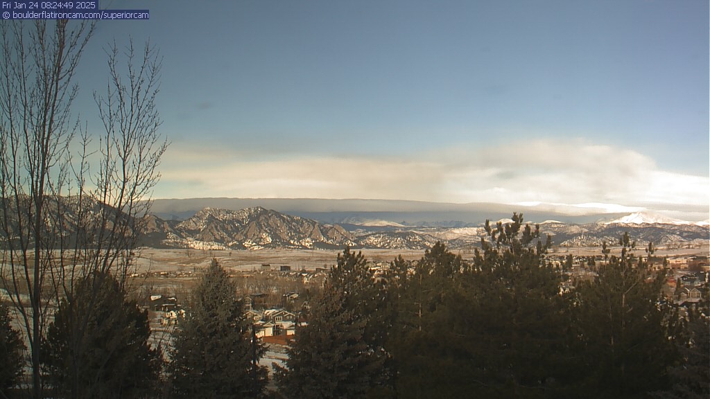 The Superior cam has a great view to the northwest over Boulder, the Flatirons, Indian Peaks and Long’s Peak.   The Coal Creek trail is visible in the foreground with old town Superior.  Thanks to Aweida Venture Partners management for the great view.