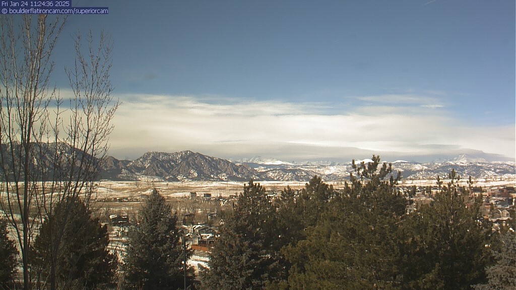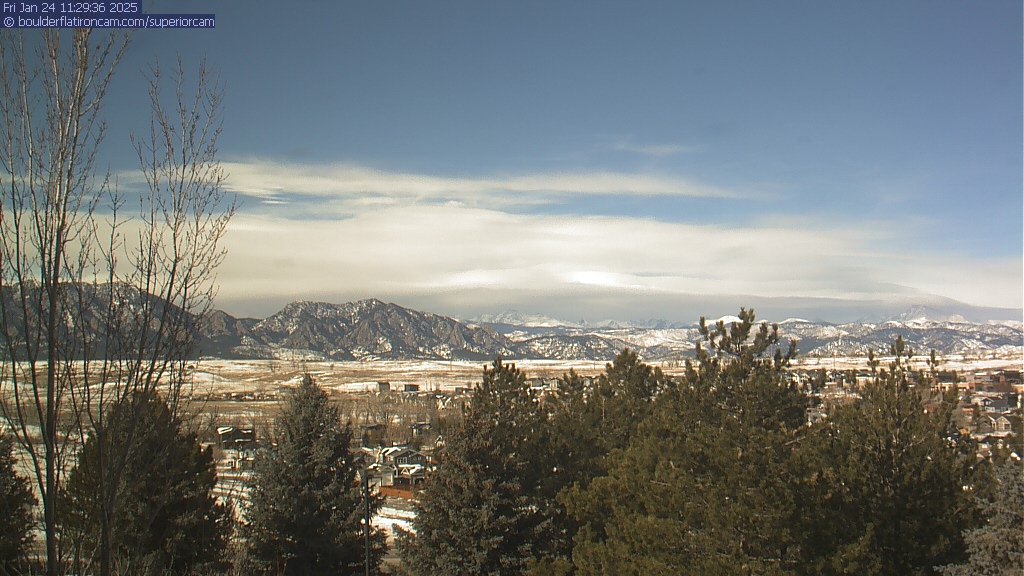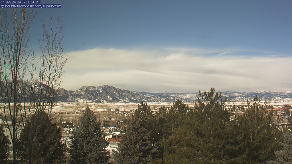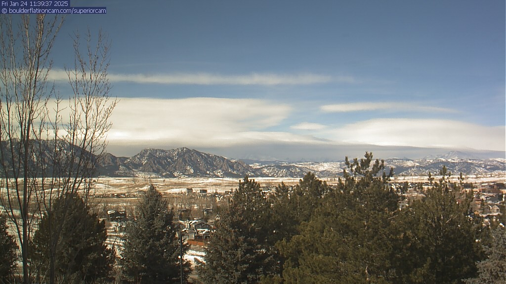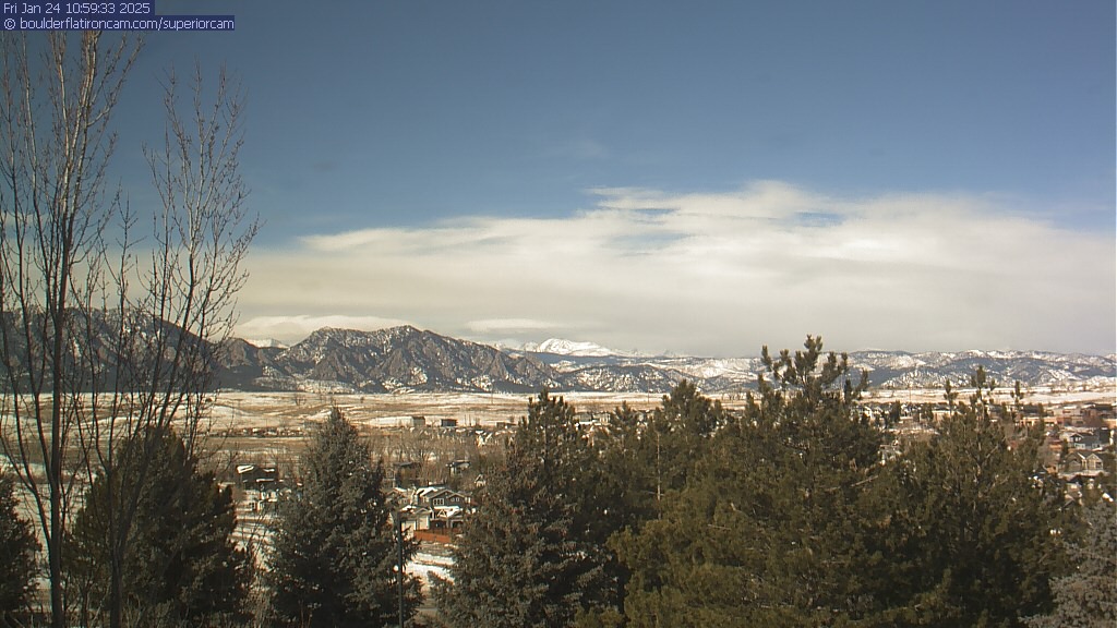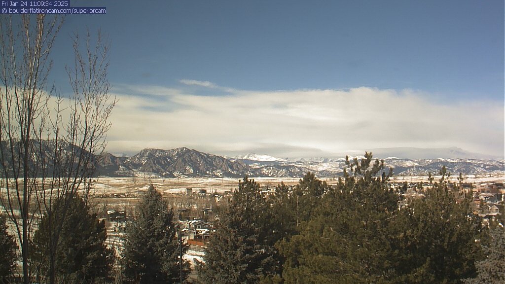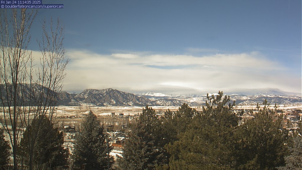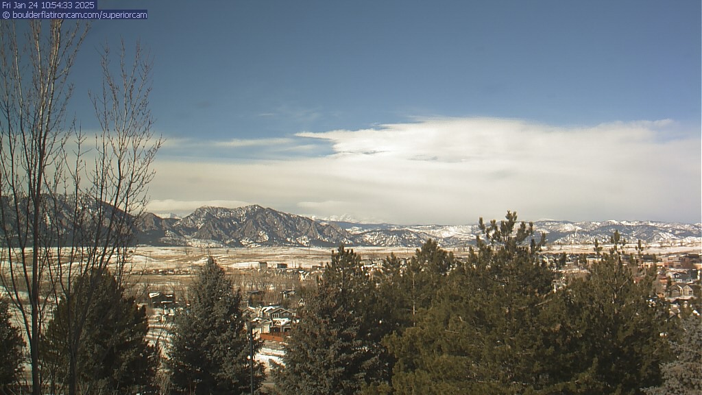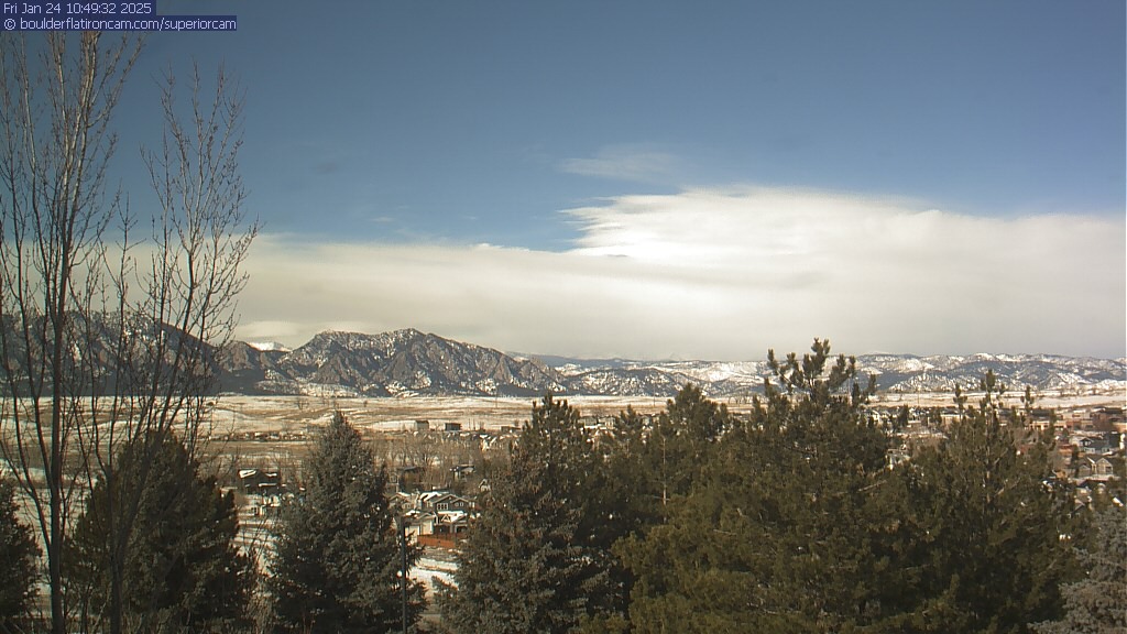 The Superior cam has a great view to the northwest over Boulder, the Flatirons, Indian Peaks and Long’s Peak.   The Coal Creek trail is visible in the foreground with old town Superior.  Thanks to Aweida Venture Partners management for the great view.