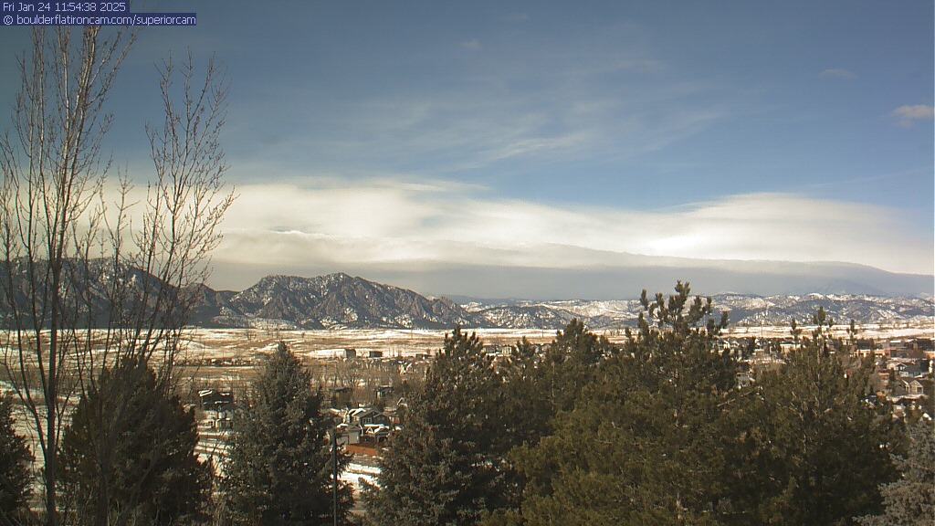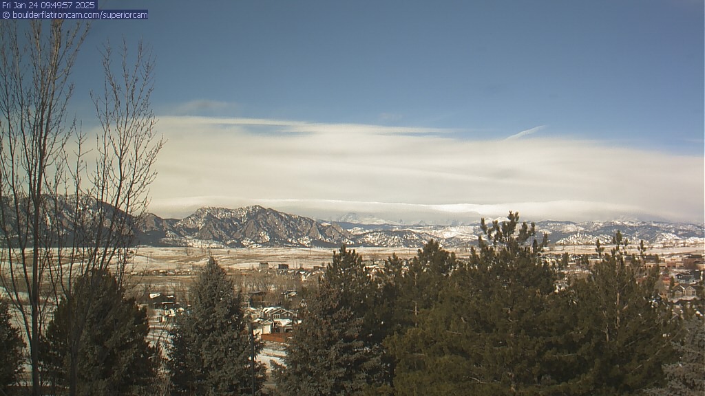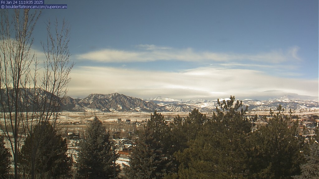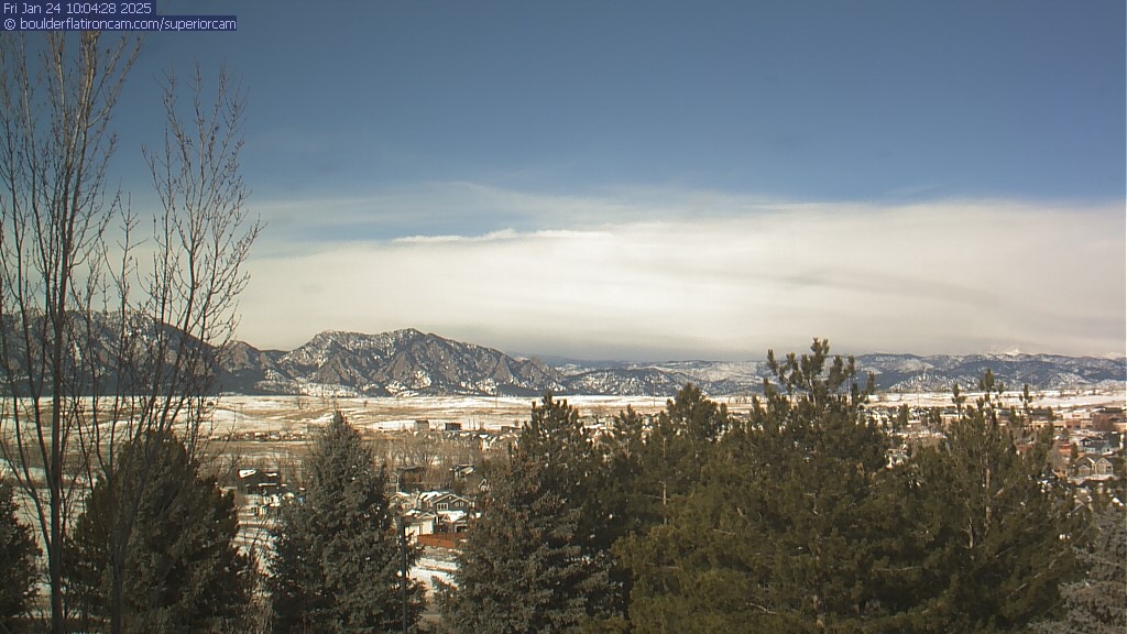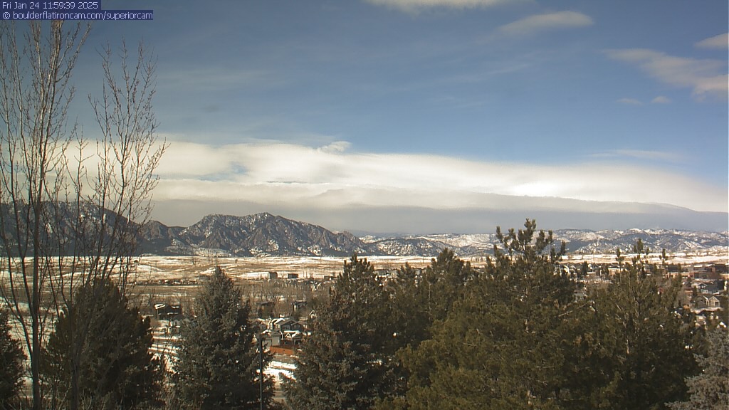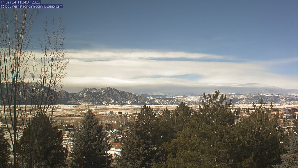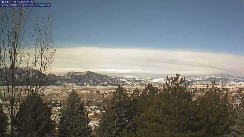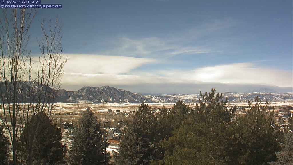 The Superior cam has a great view to the northwest over Boulder, the Flatirons, Indian Peaks and Long’s Peak.   The Coal Creek trail is visible in the foreground with old town Superior.  Thanks to Aweida Venture Partners management for the great view.