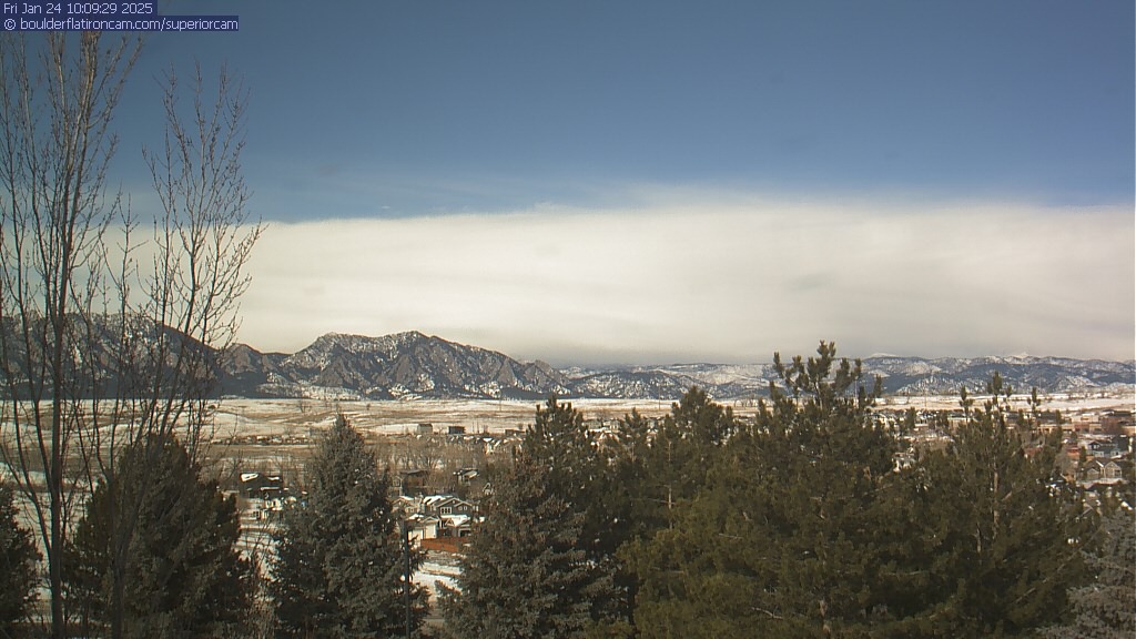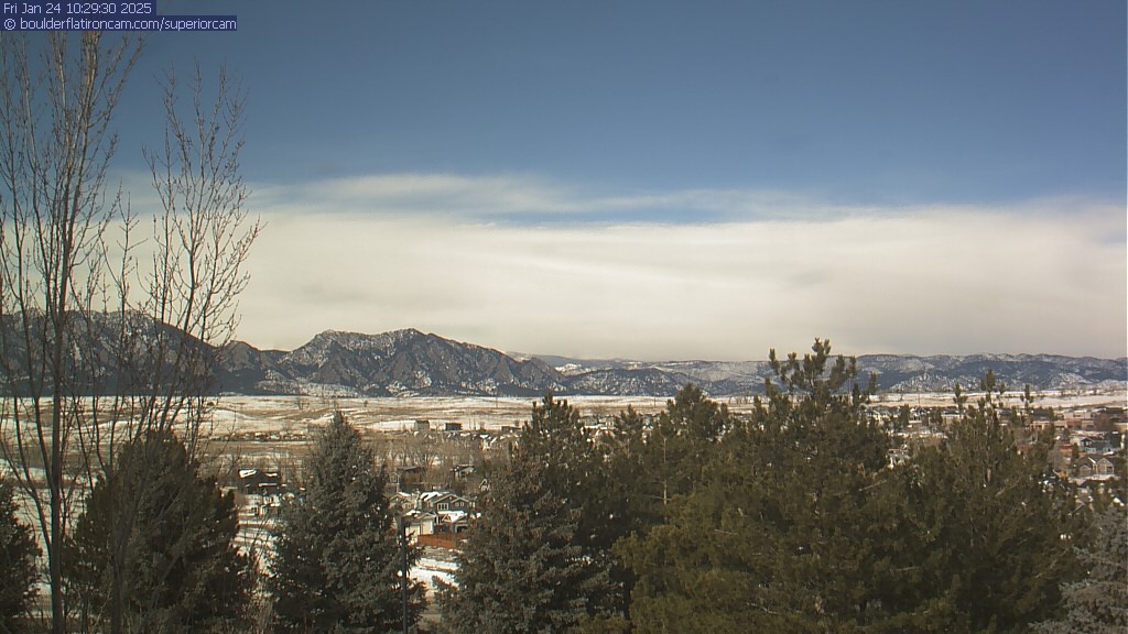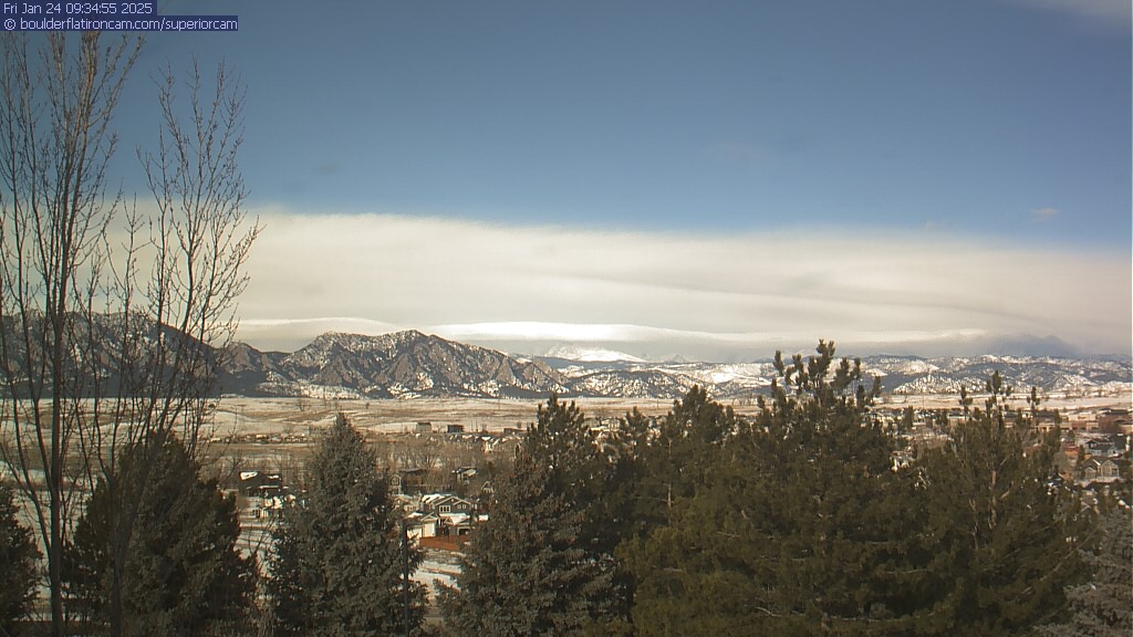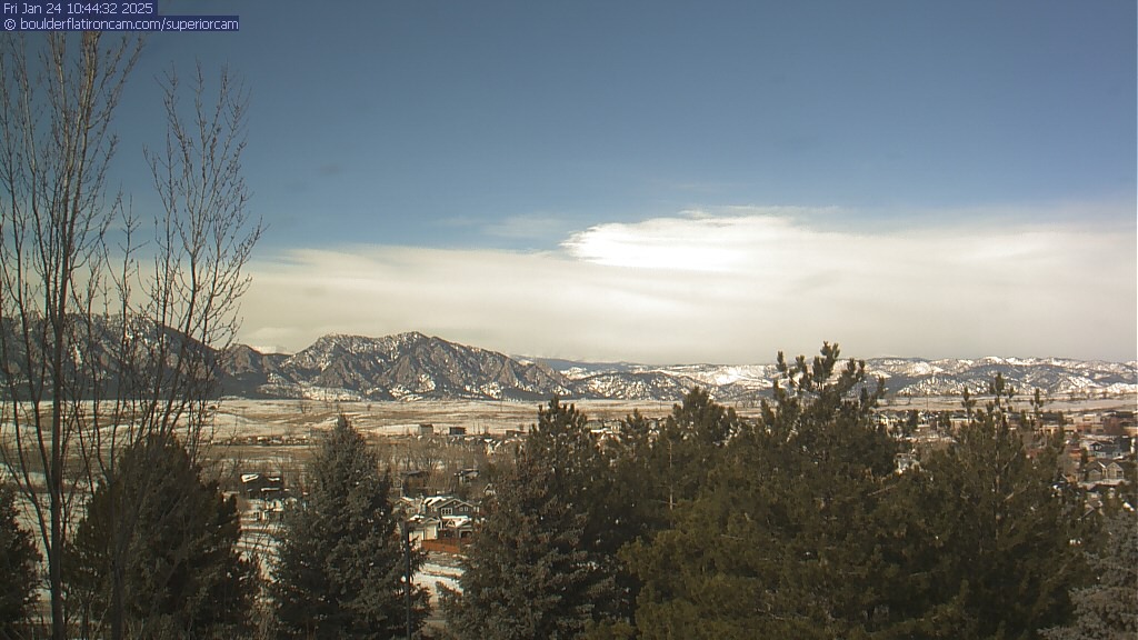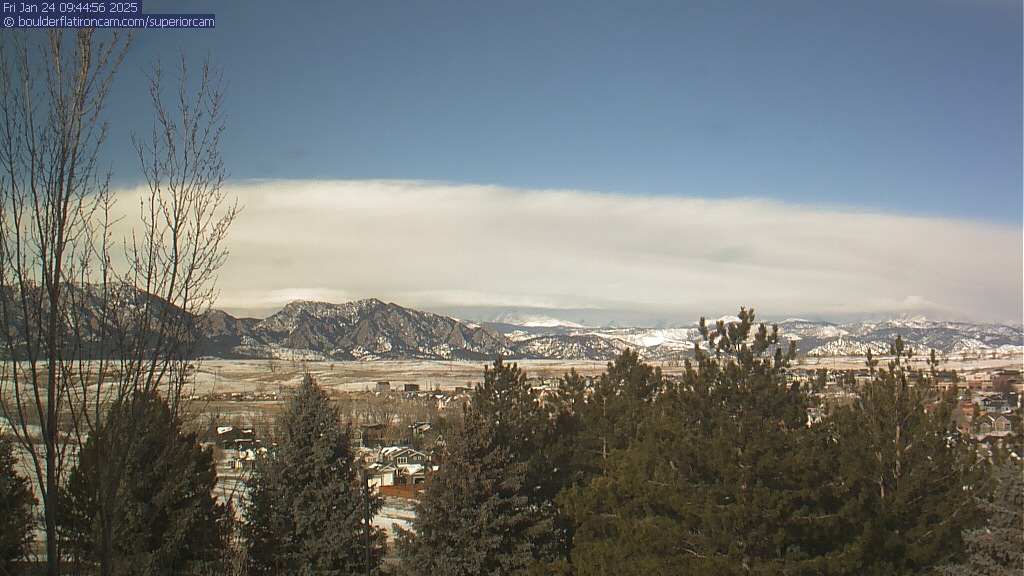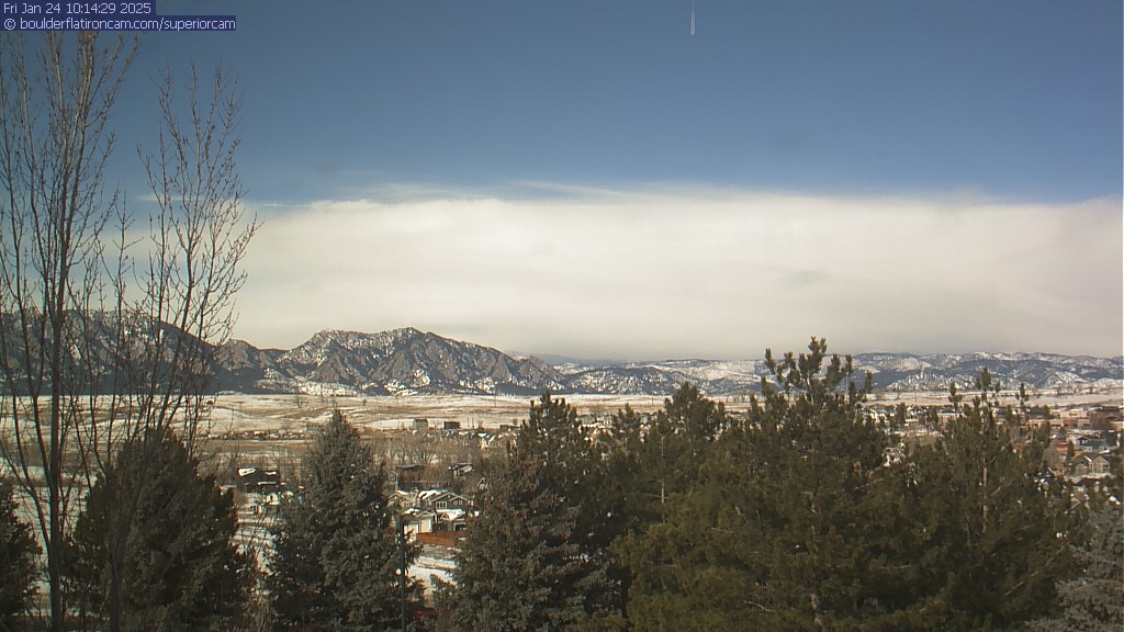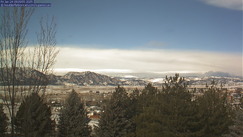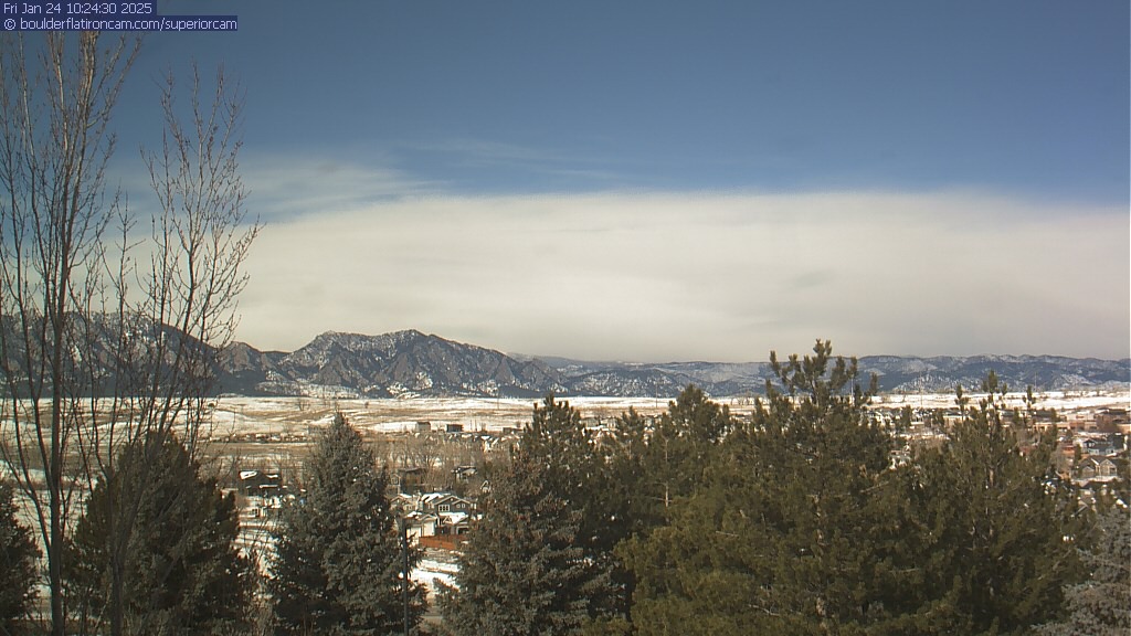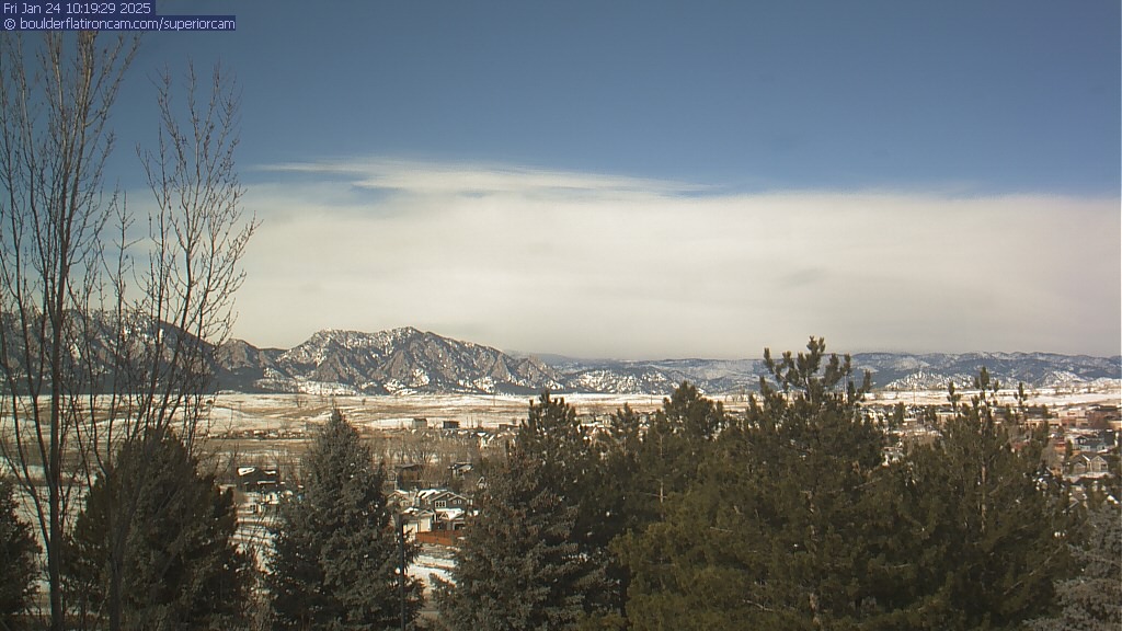 The Superior cam has a great view to the northwest over Boulder, the Flatirons, Indian Peaks and Long’s Peak.   The Coal Creek trail is visible in the foreground with old town Superior.  Thanks to Aweida Venture Partners management for the great view.