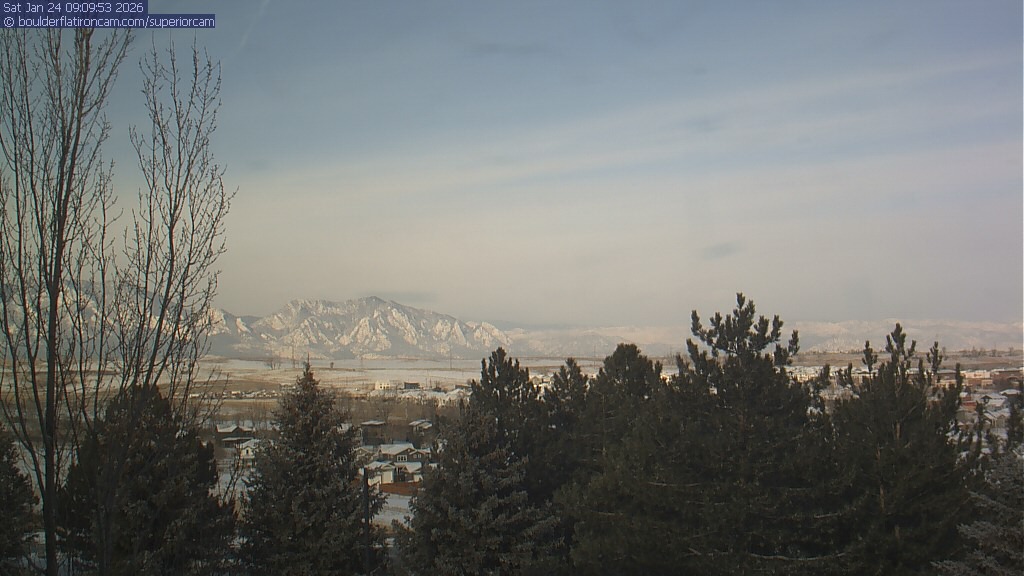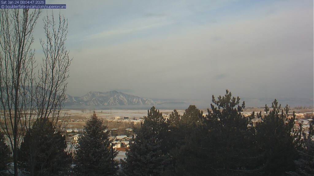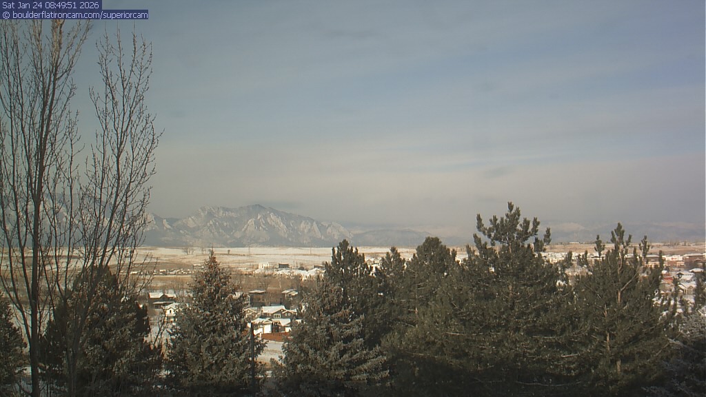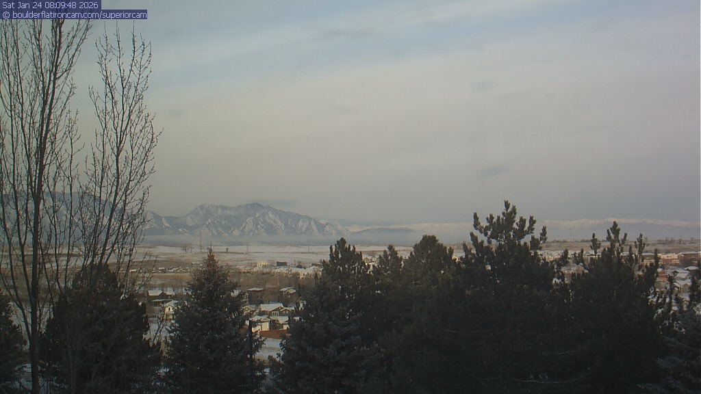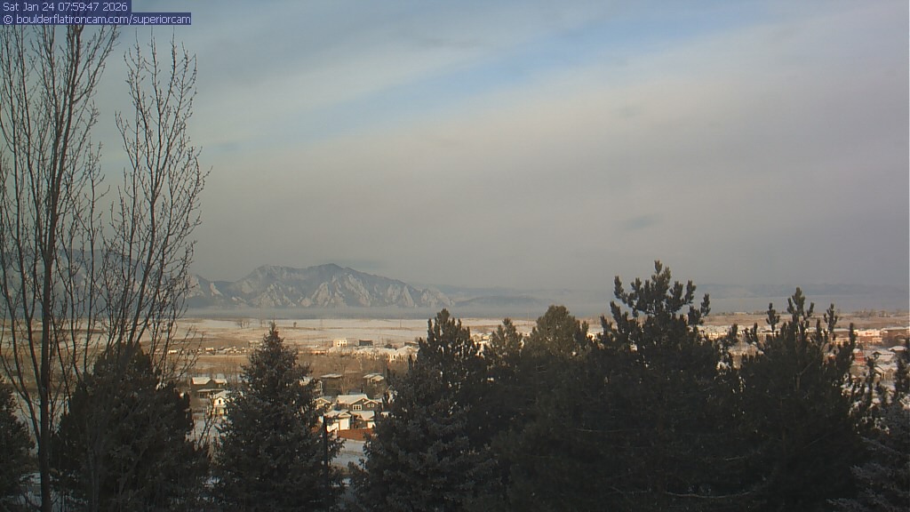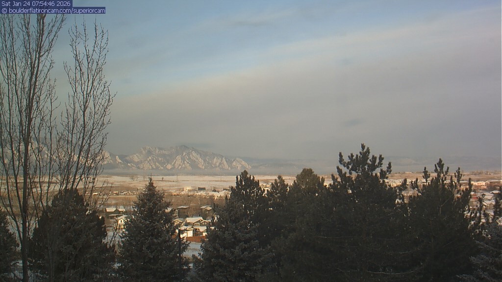 The Superior cam has a view to the northwest over Boulder, the Flatirons, Indian Peaks and Long’s Peak.   The Coal Creek trail is visible in the foreground with old town Superior.