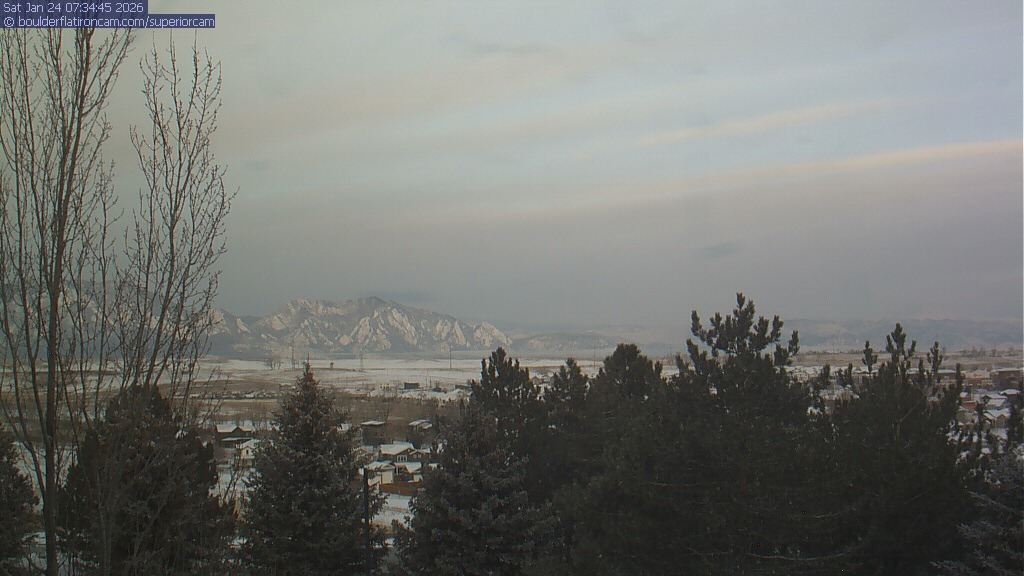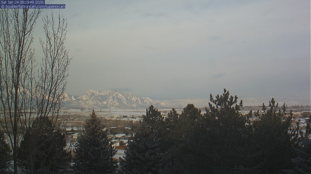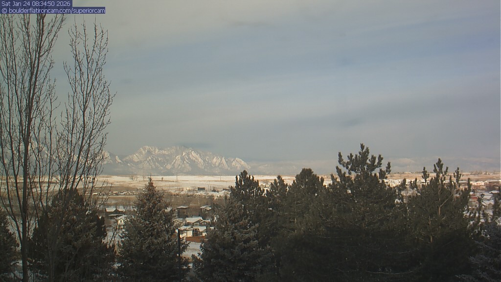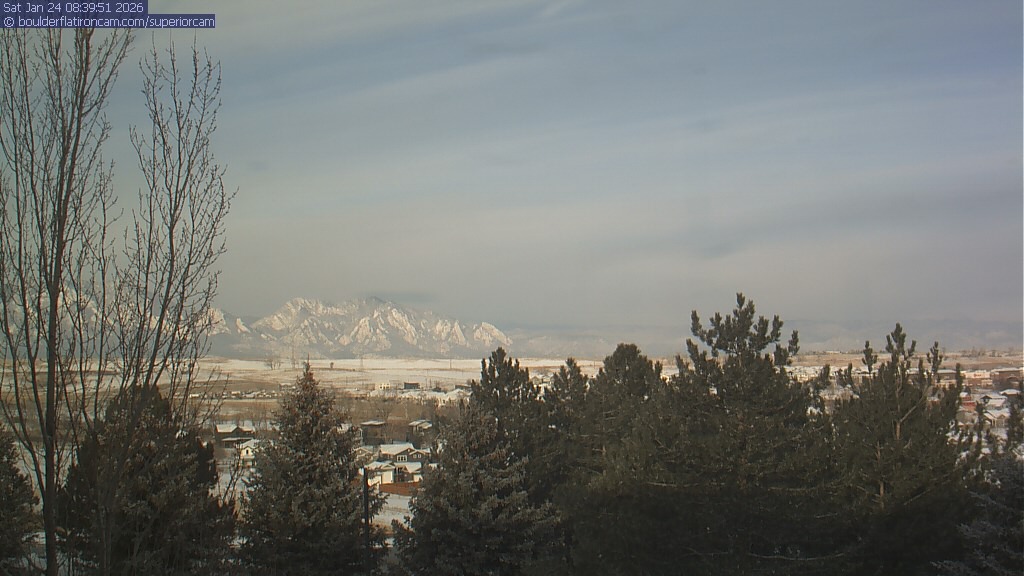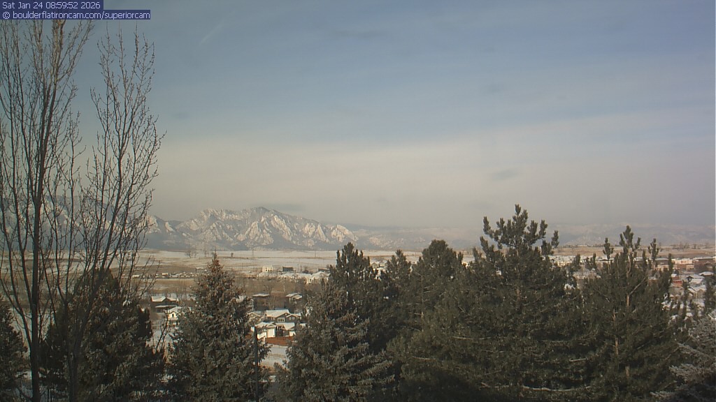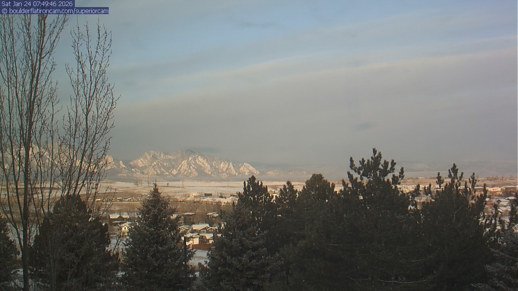 The Superior cam has a view to the northwest over Boulder, the Flatirons, Indian Peaks and Long’s Peak.   The Coal Creek trail is visible in the foreground with old town Superior.
