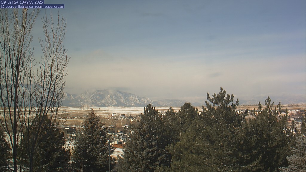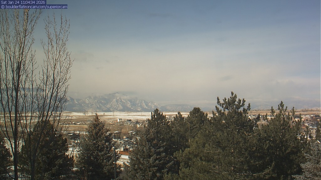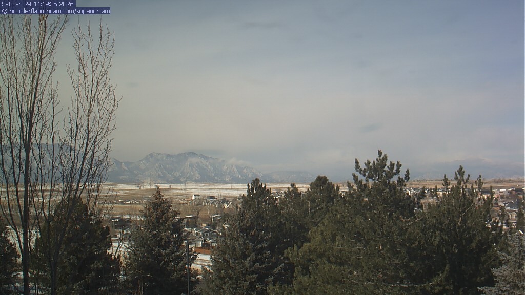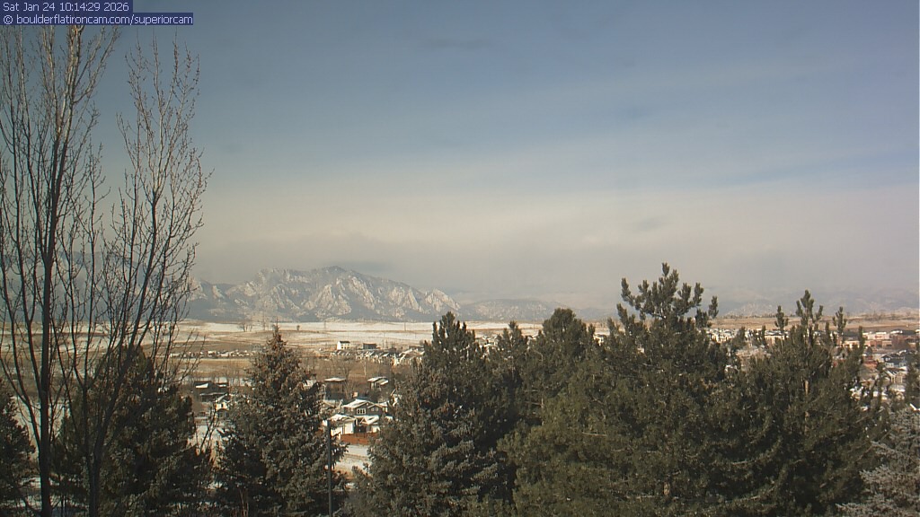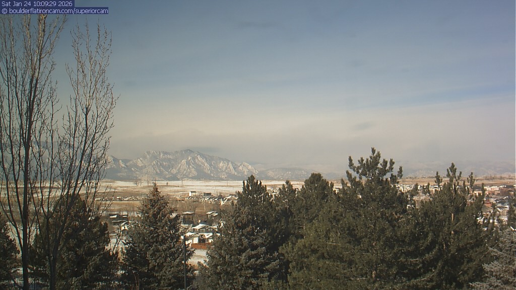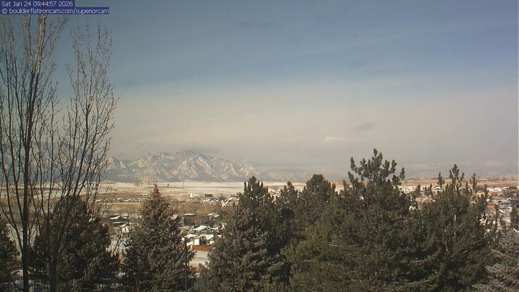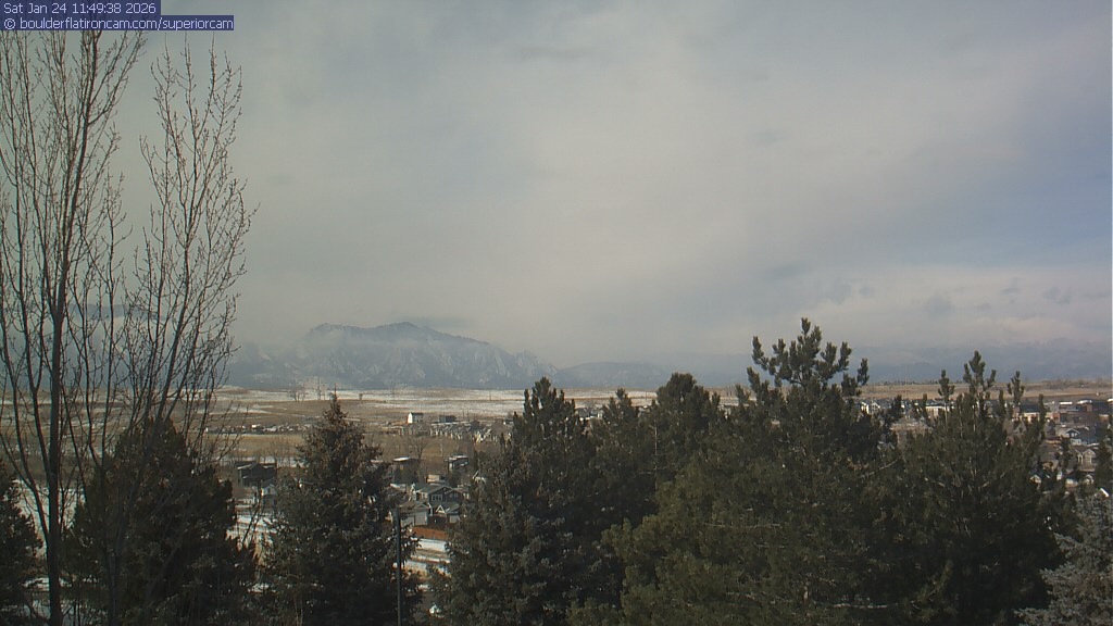 The Superior cam has a view to the northwest over Boulder, the Flatirons, Indian Peaks and Long’s Peak.   The Coal Creek trail is visible in the foreground with old town Superior.