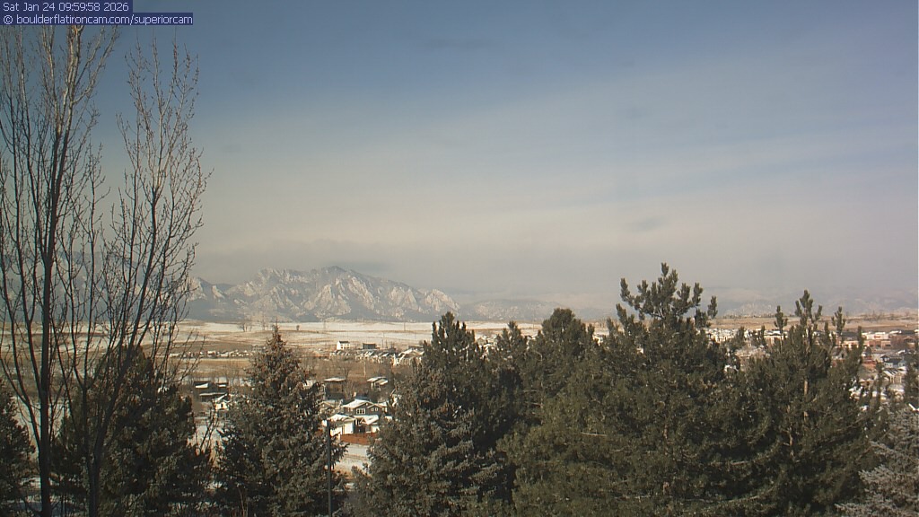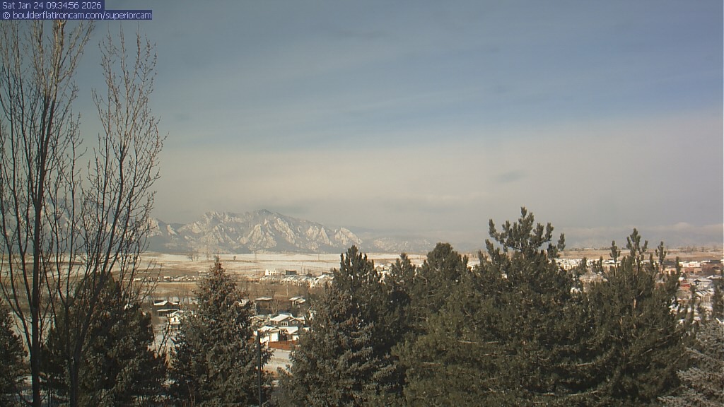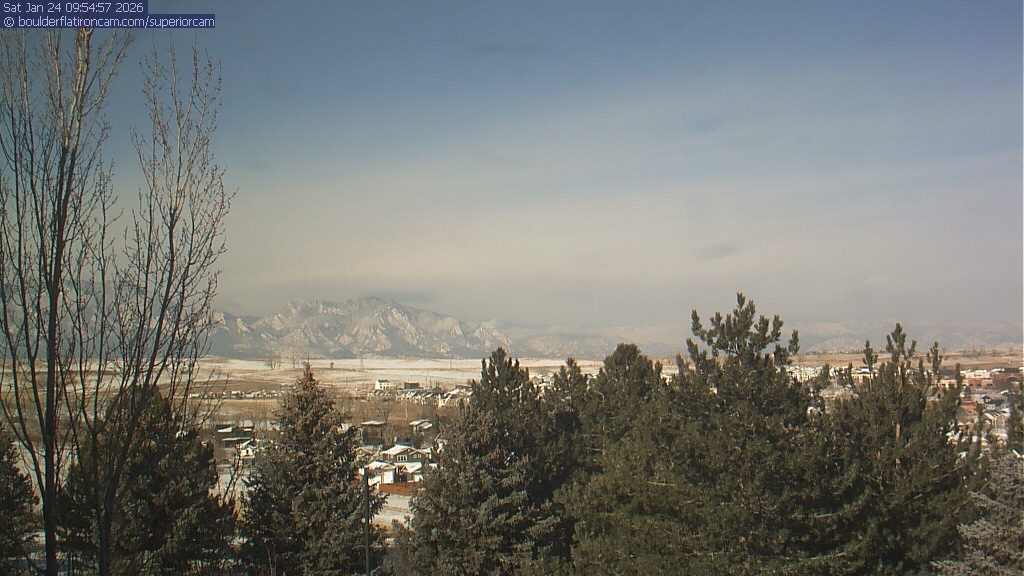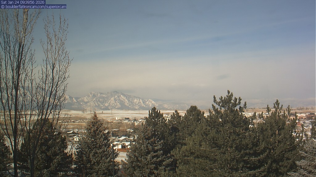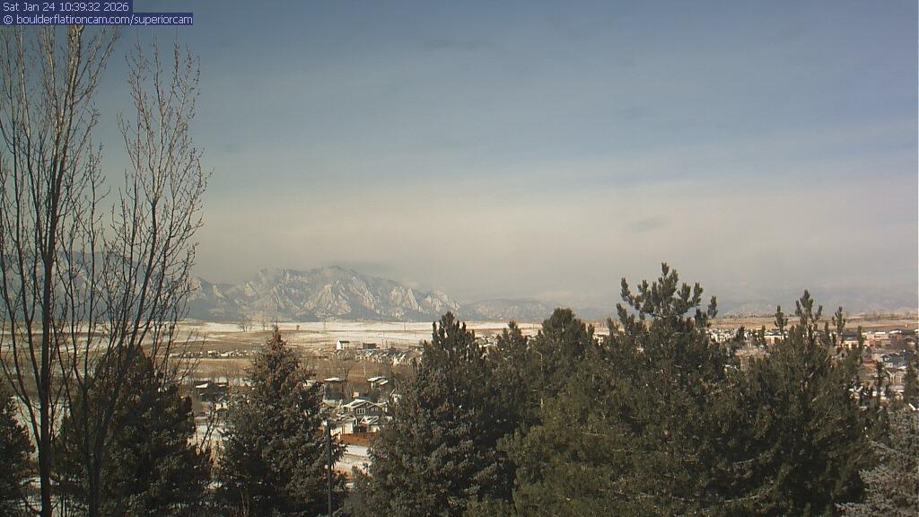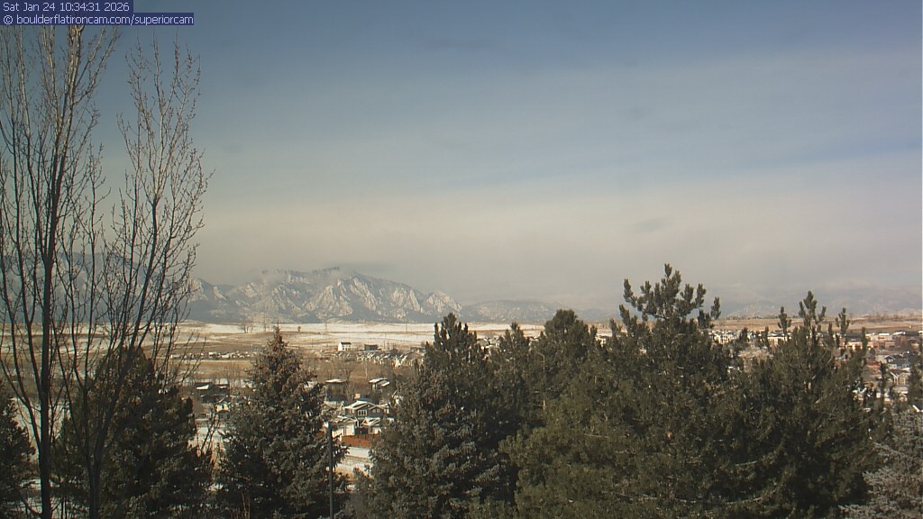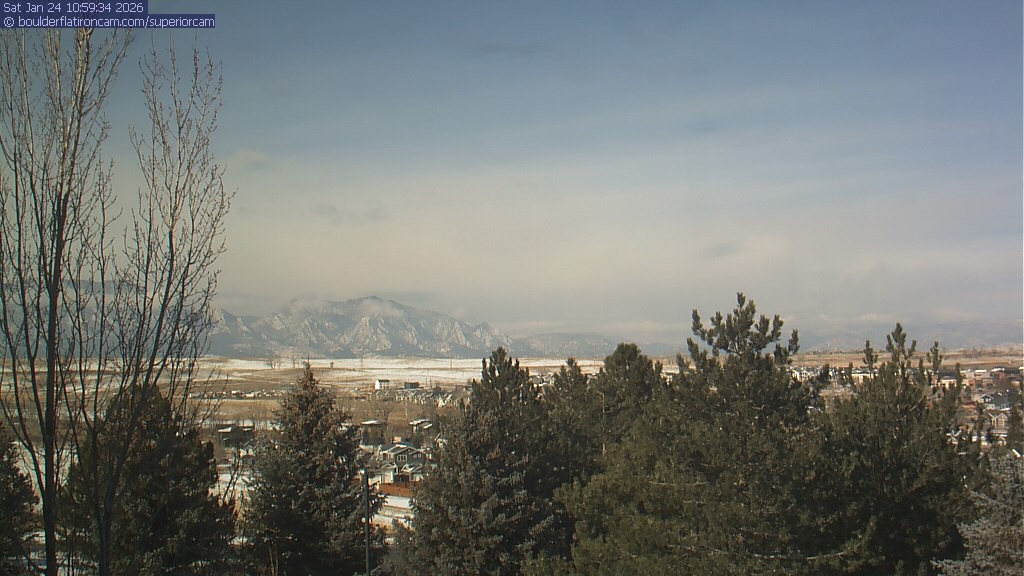 The Superior cam has a view to the northwest over Boulder, the Flatirons, Indian Peaks and Long’s Peak.   The Coal Creek trail is visible in the foreground with old town Superior.