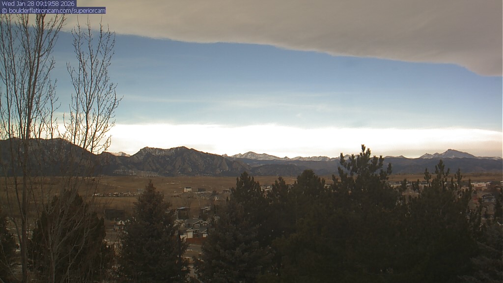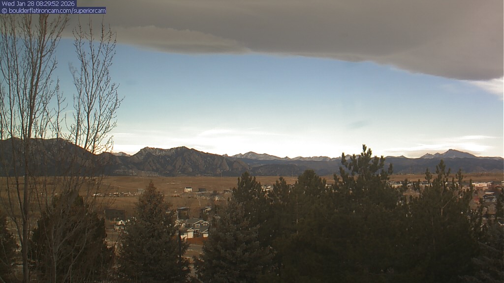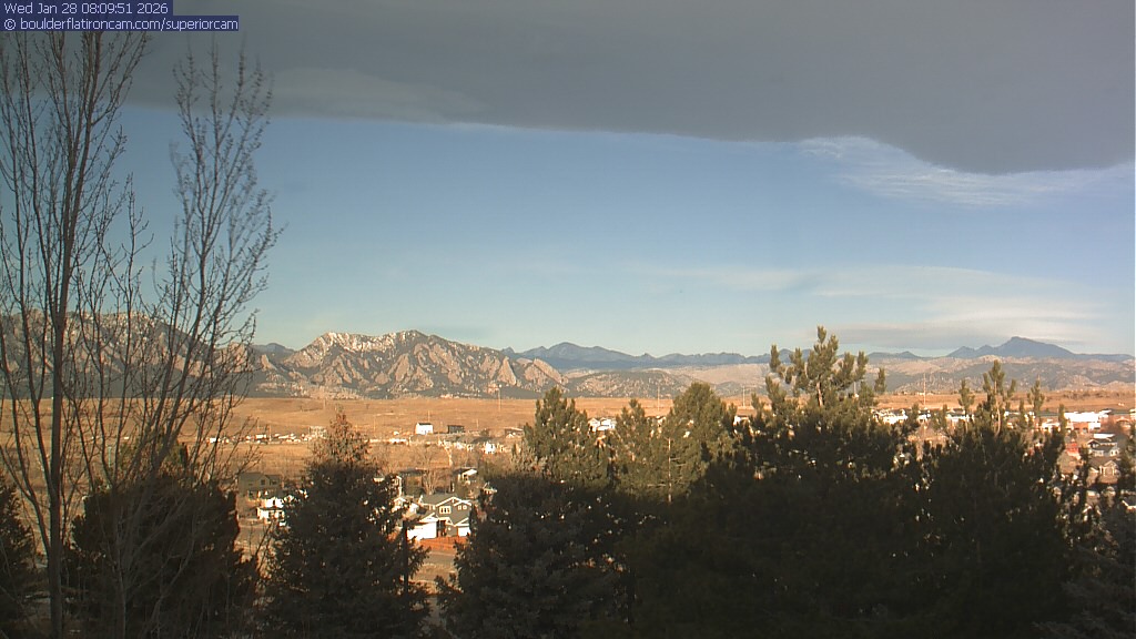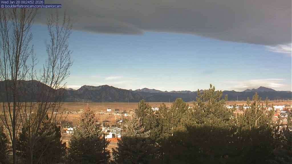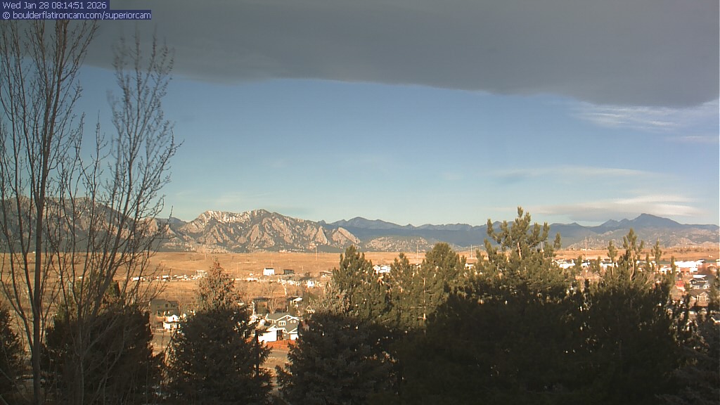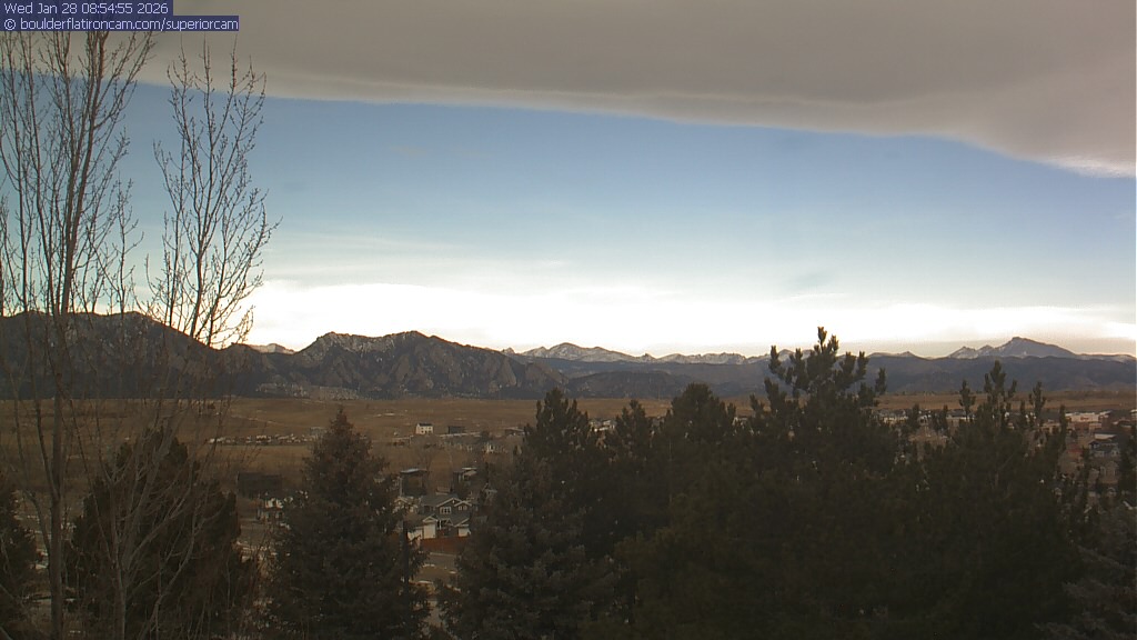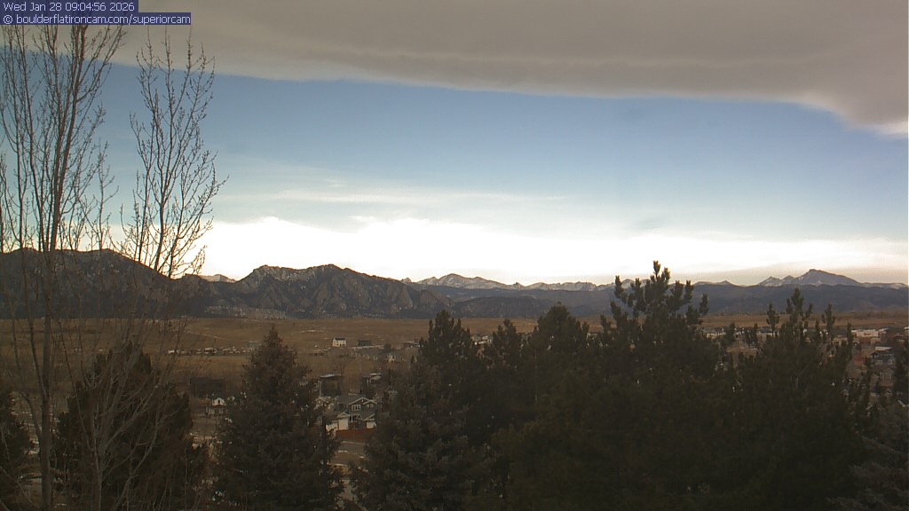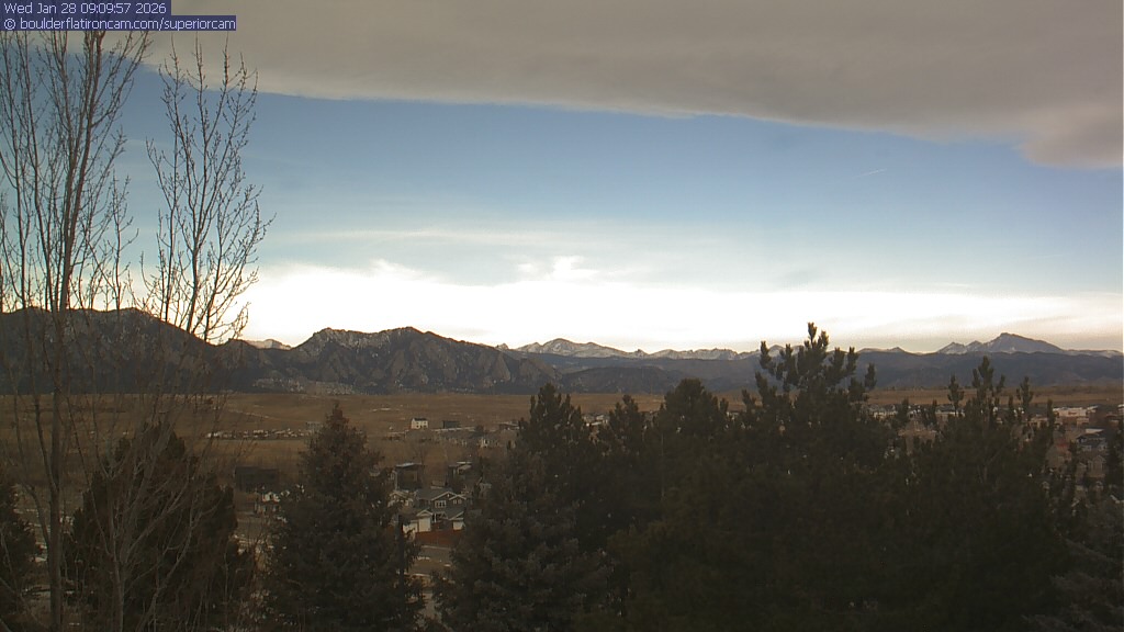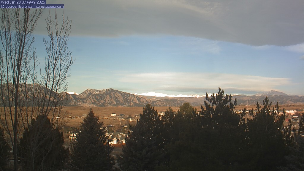 The Superior cam has a view to the northwest over Boulder, the Flatirons, Indian Peaks and Long’s Peak.   The Coal Creek trail is visible in the foreground with old town Superior.