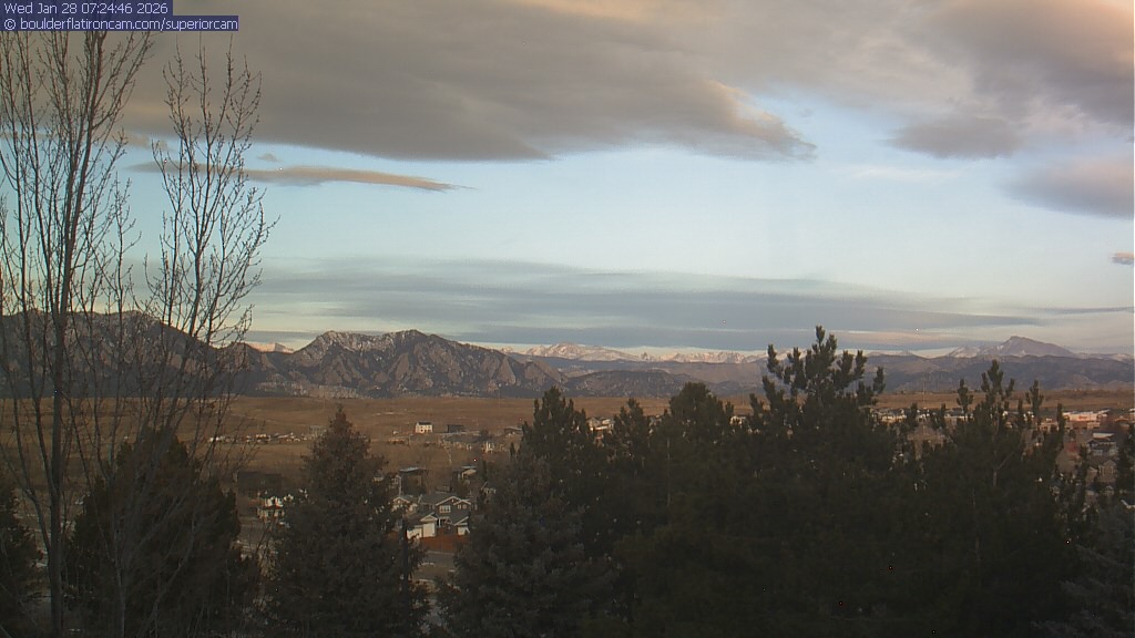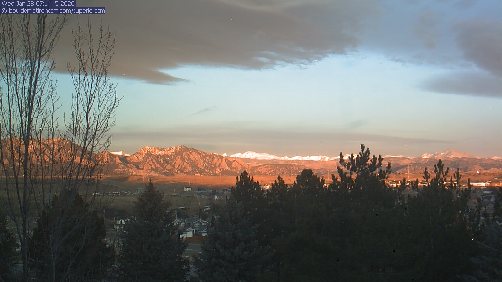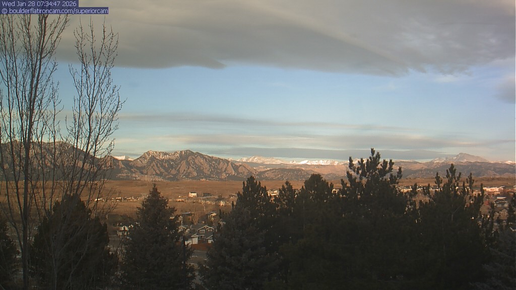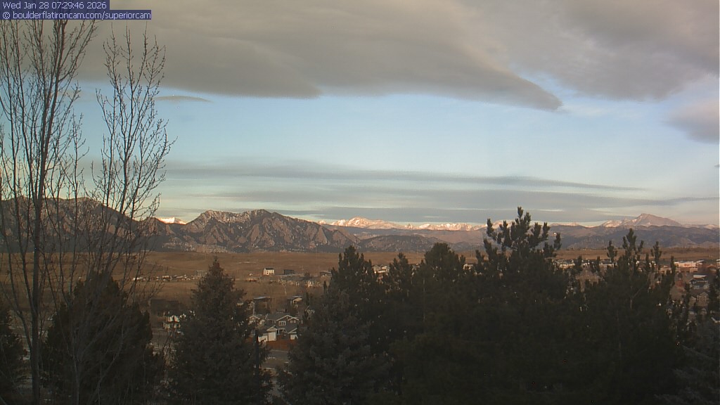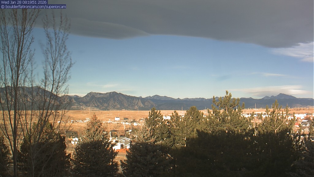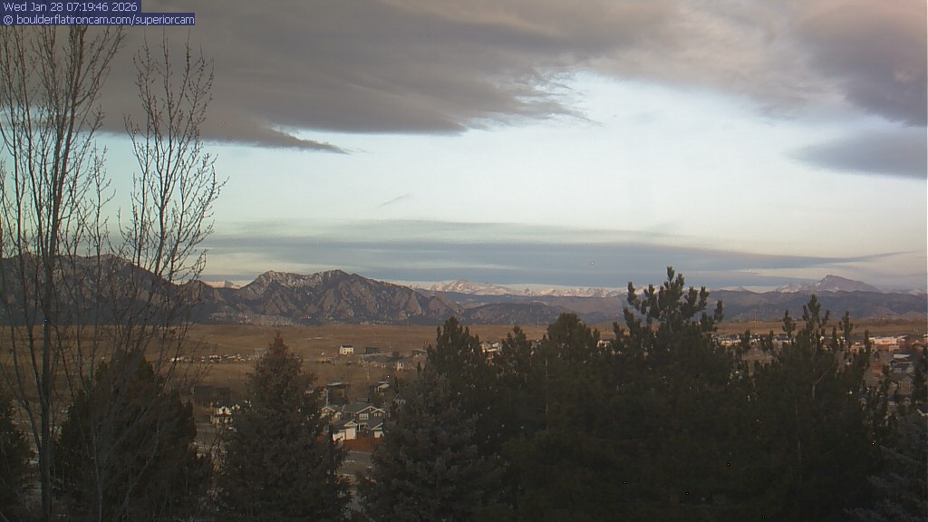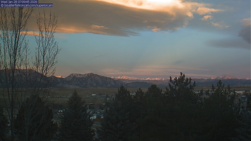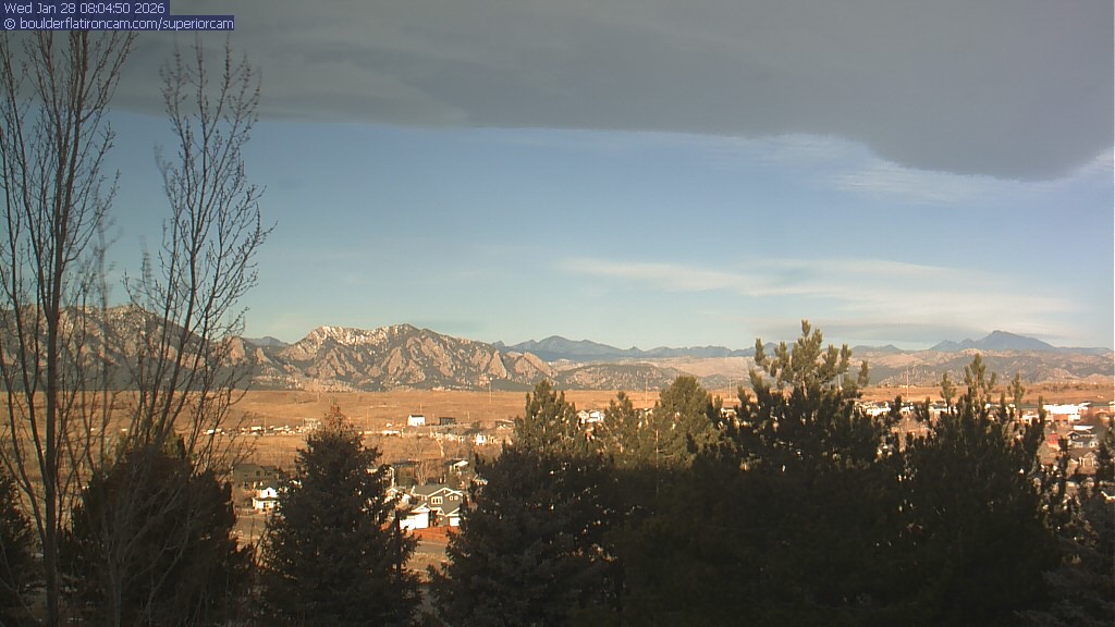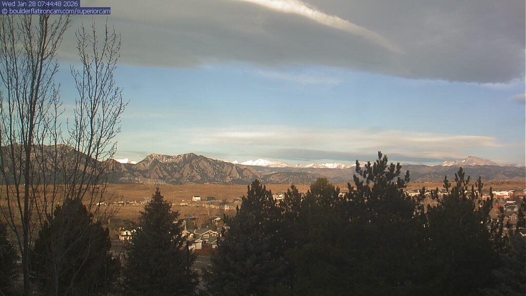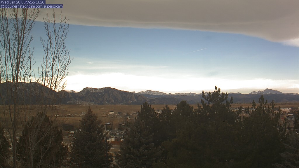 The Superior cam has a view to the northwest over Boulder, the Flatirons, Indian Peaks and Long’s Peak.   The Coal Creek trail is visible in the foreground with old town Superior.