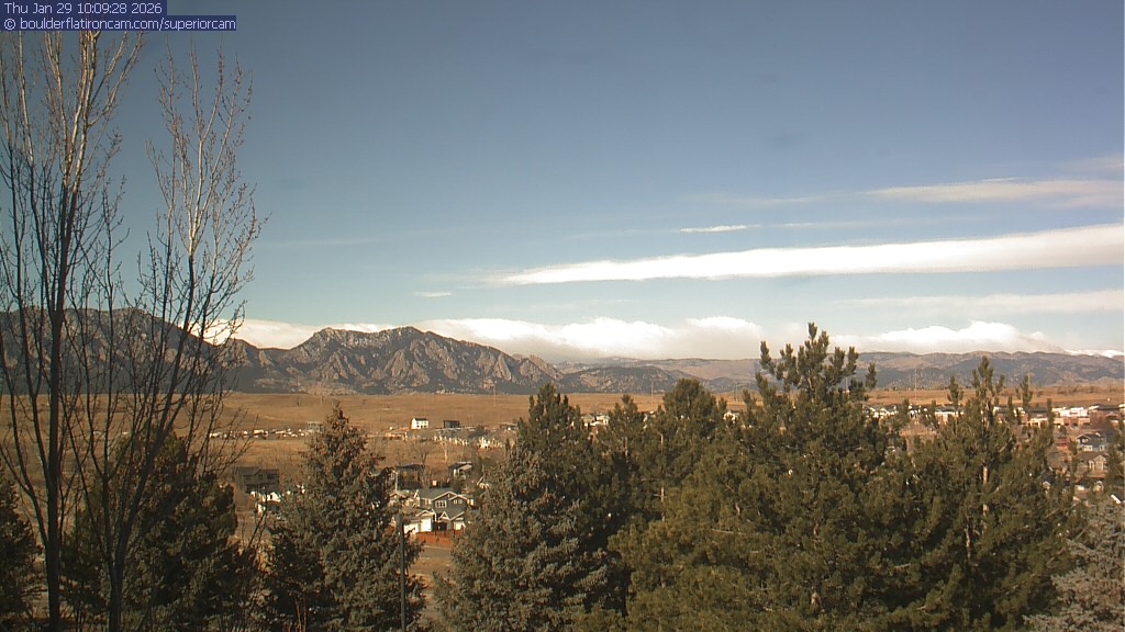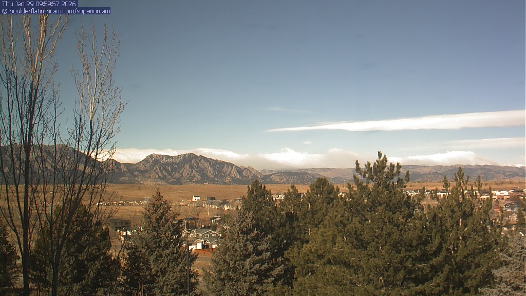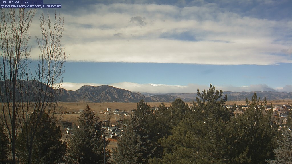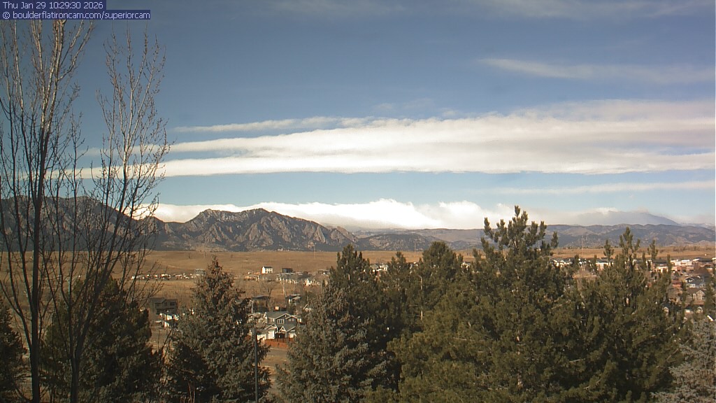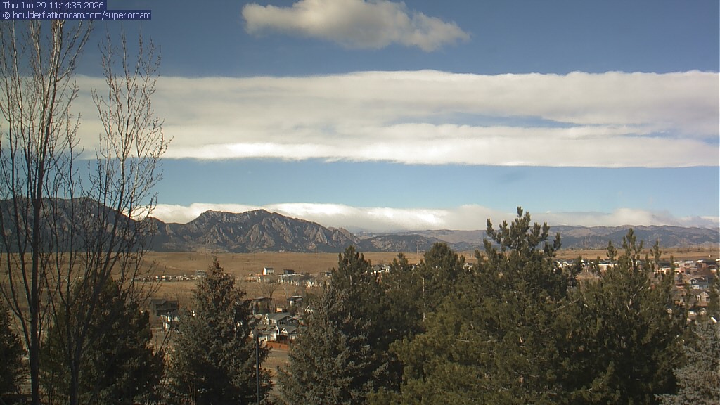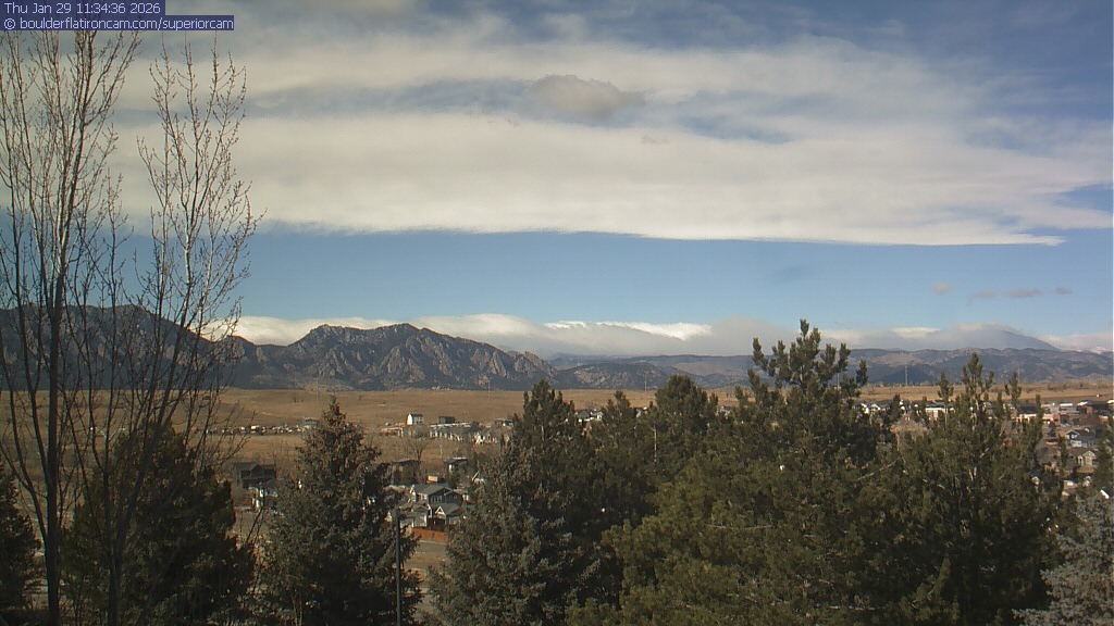 The Superior cam has a view to the northwest over Boulder, the Flatirons, Indian Peaks and Long’s Peak.   The Coal Creek trail is visible in the foreground with old town Superior.