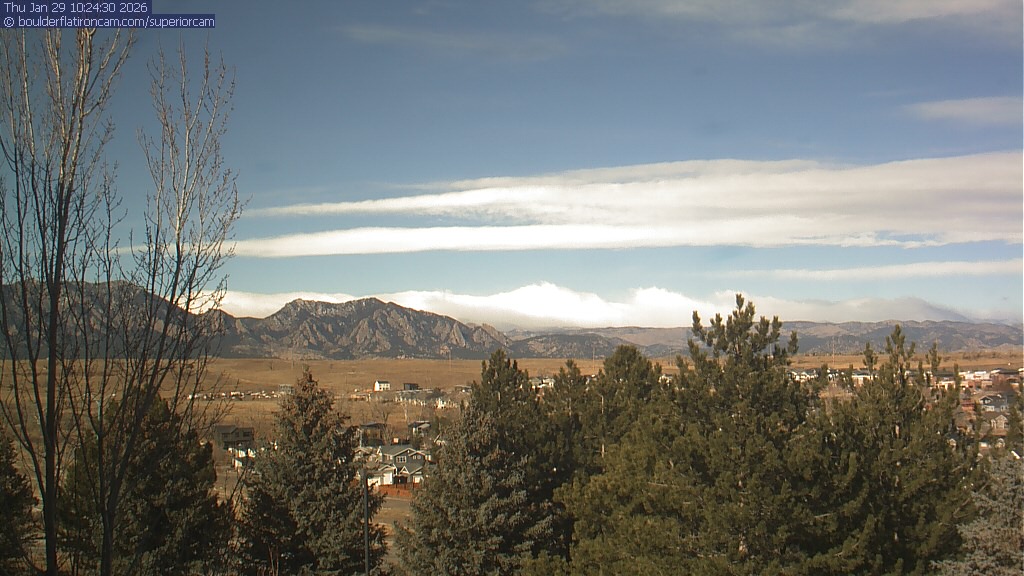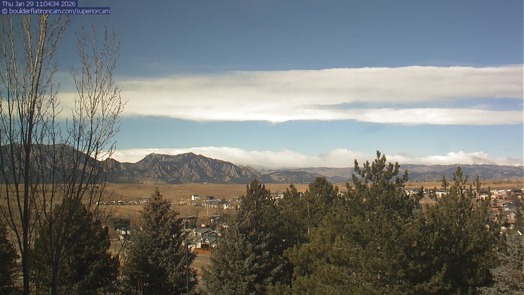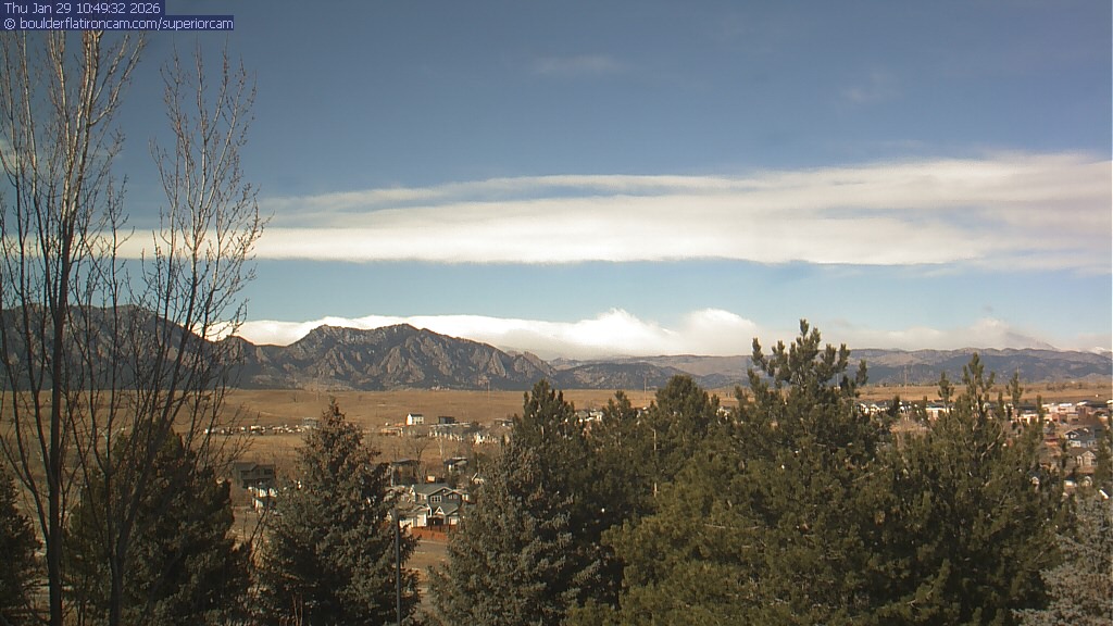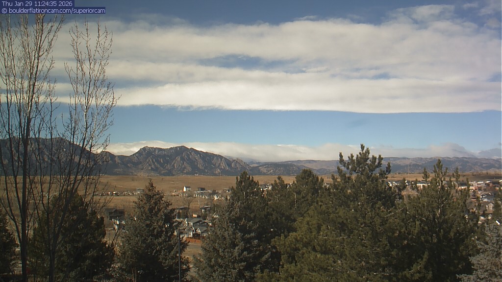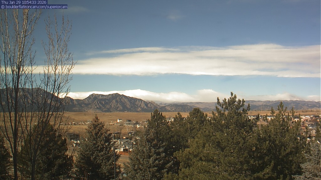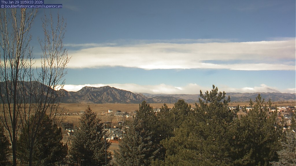 The Superior cam has a view to the northwest over Boulder, the Flatirons, Indian Peaks and Long’s Peak.   The Coal Creek trail is visible in the foreground with old town Superior.
