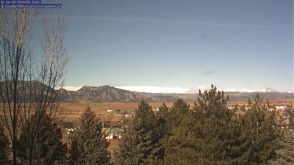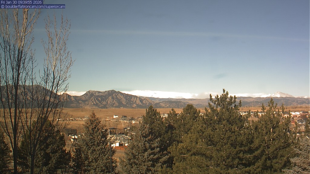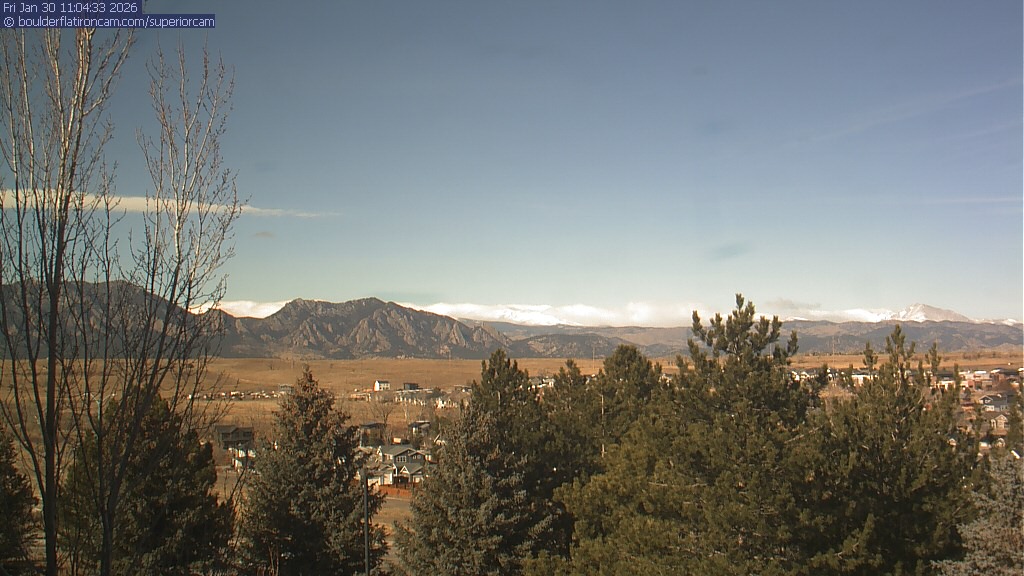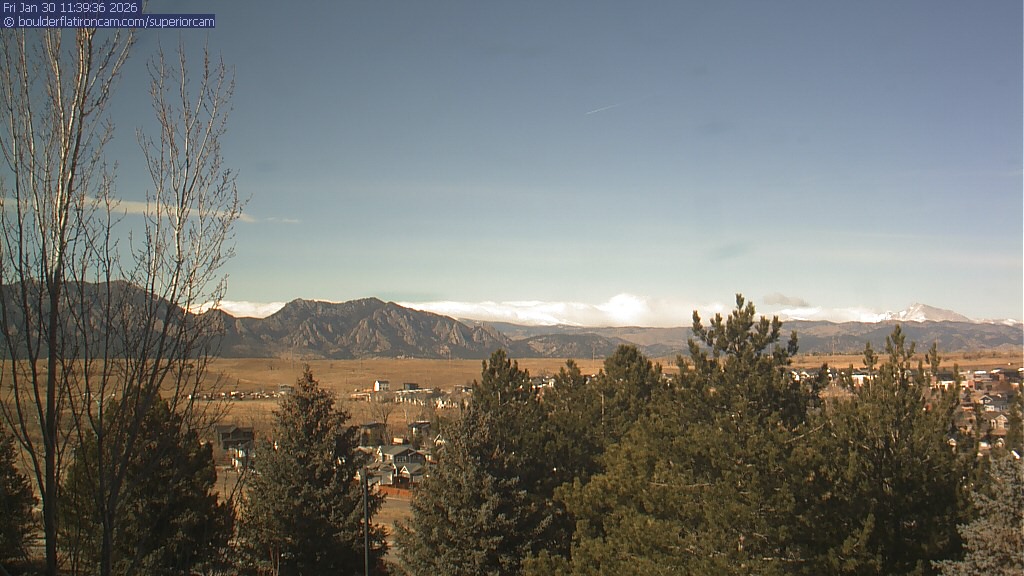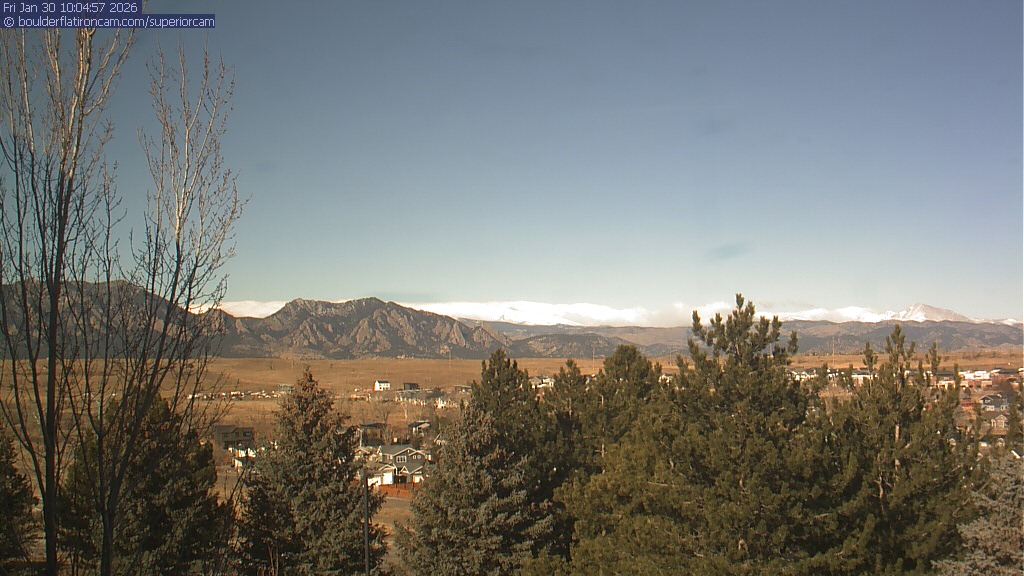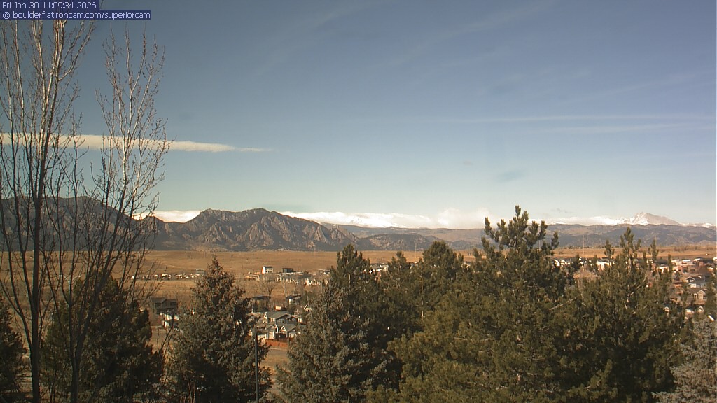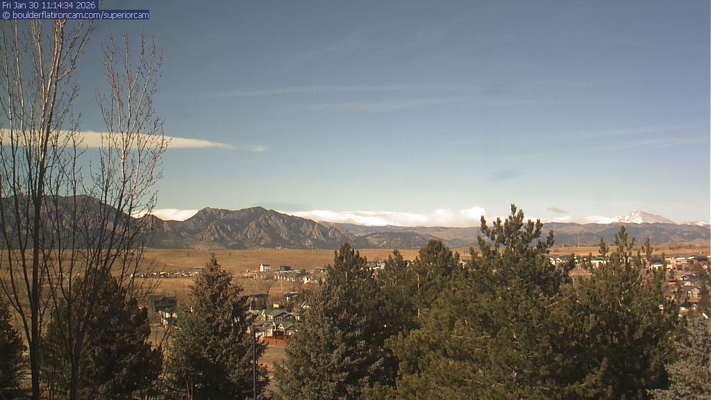 The Superior cam has a view to the northwest over Boulder, the Flatirons, Indian Peaks and Long’s Peak.   The Coal Creek trail is visible in the foreground with old town Superior.