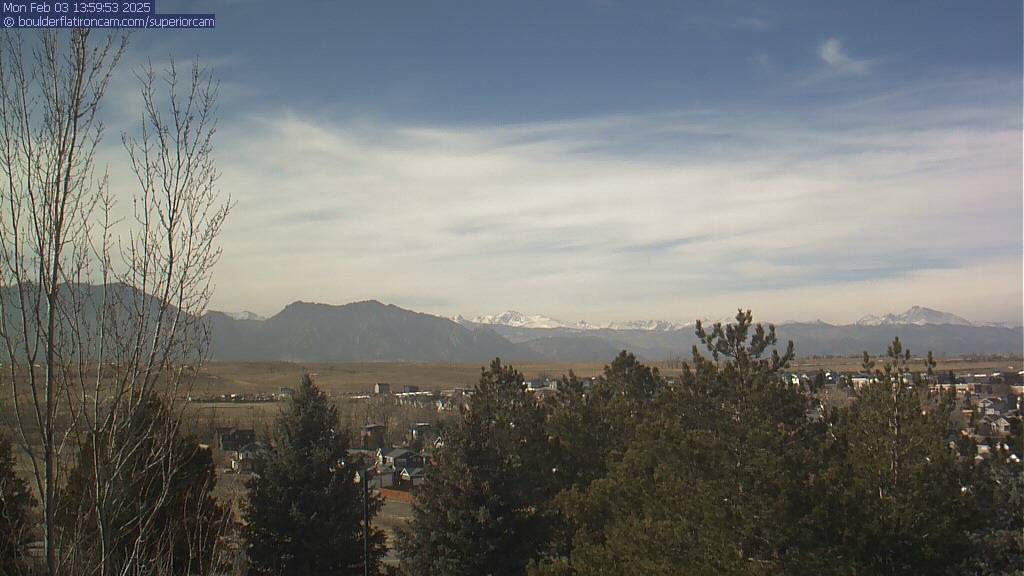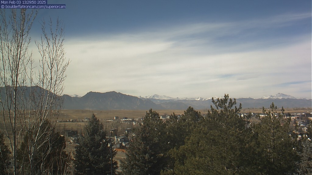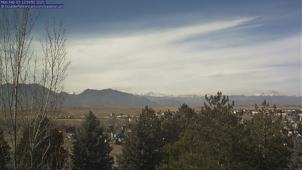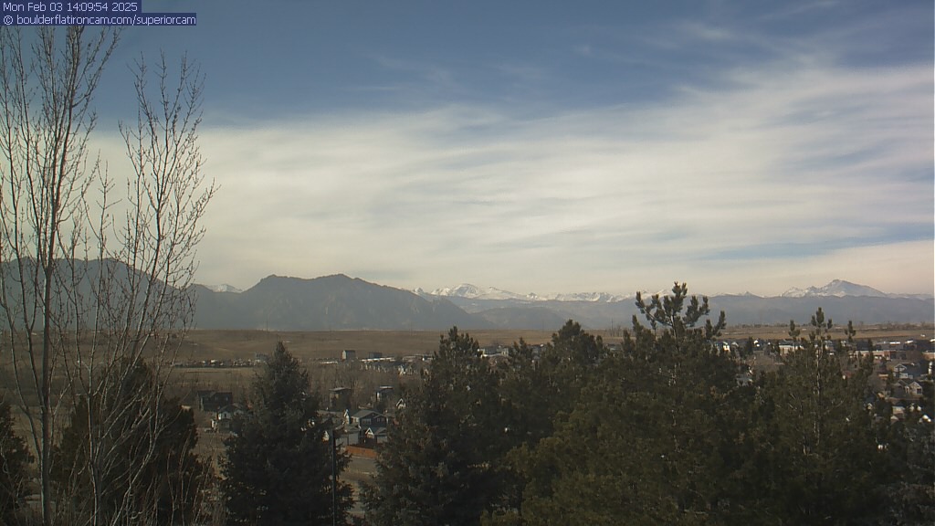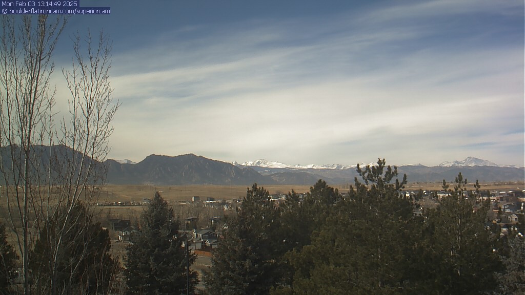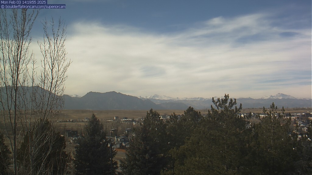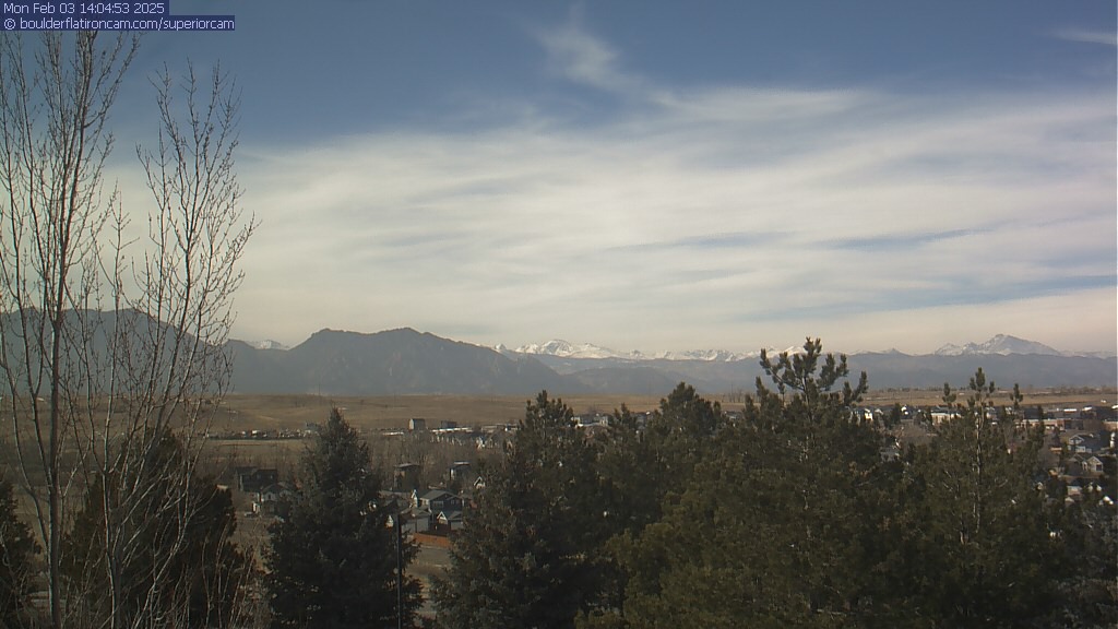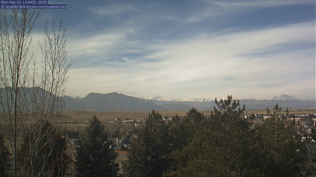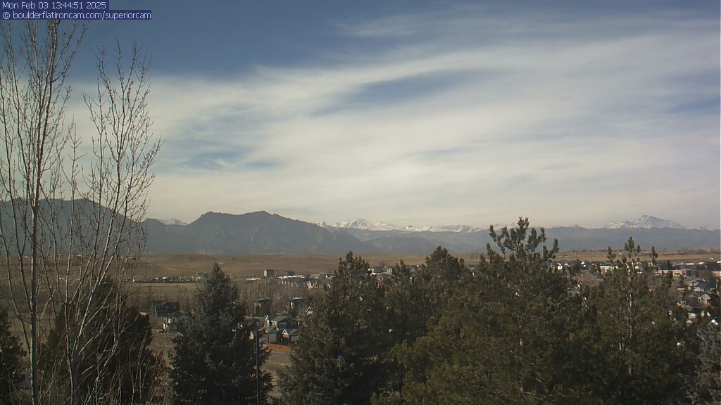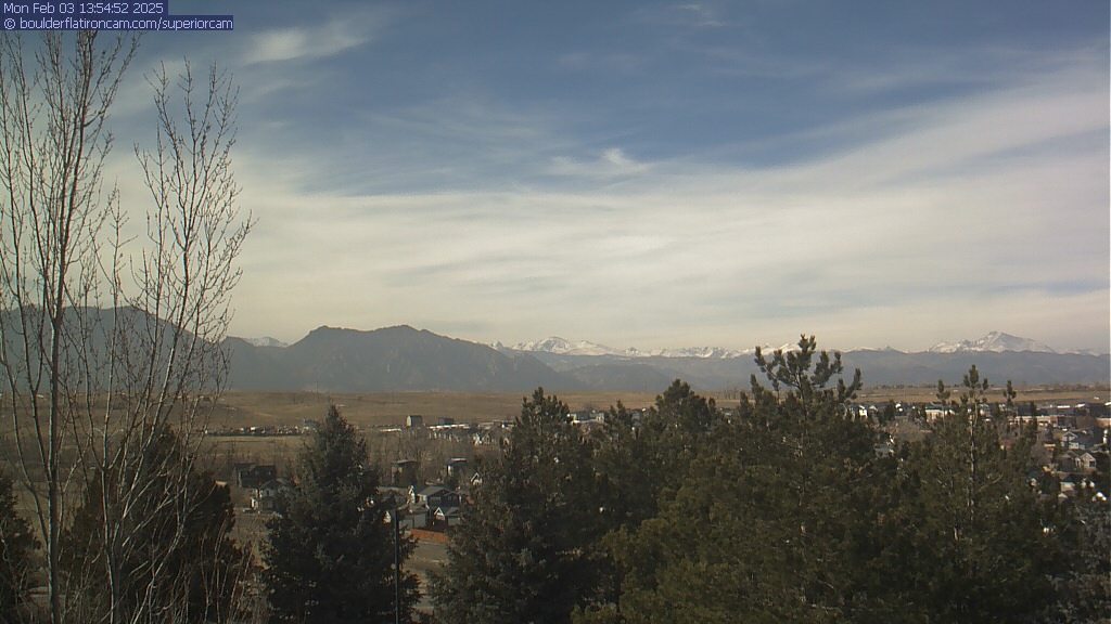 The Superior cam has a great view to the northwest over Boulder, the Flatirons, Indian Peaks and Long’s Peak.   The Coal Creek trail is visible in the foreground with old town Superior.  Thanks to Aweida Venture Partners management for the great view.