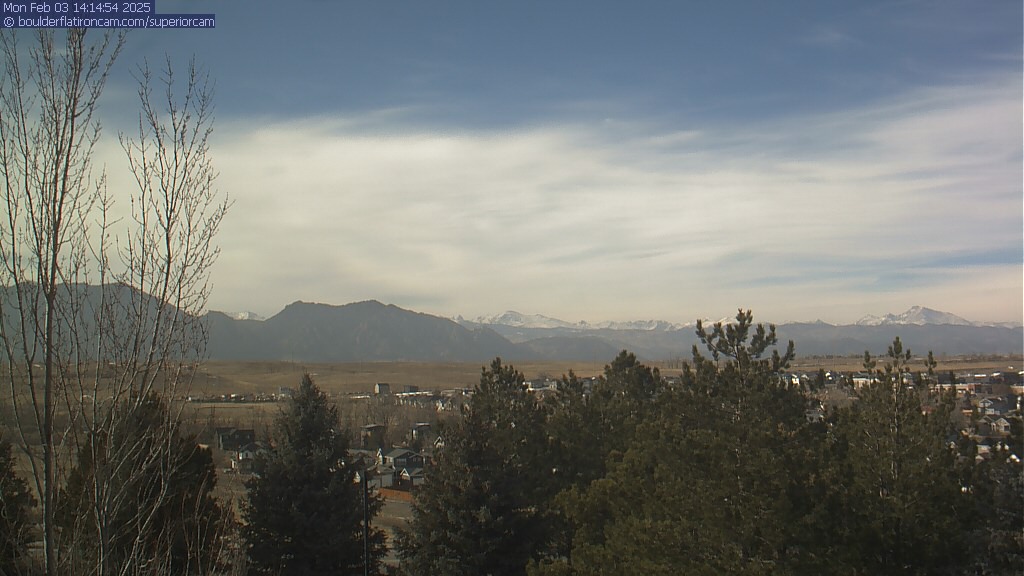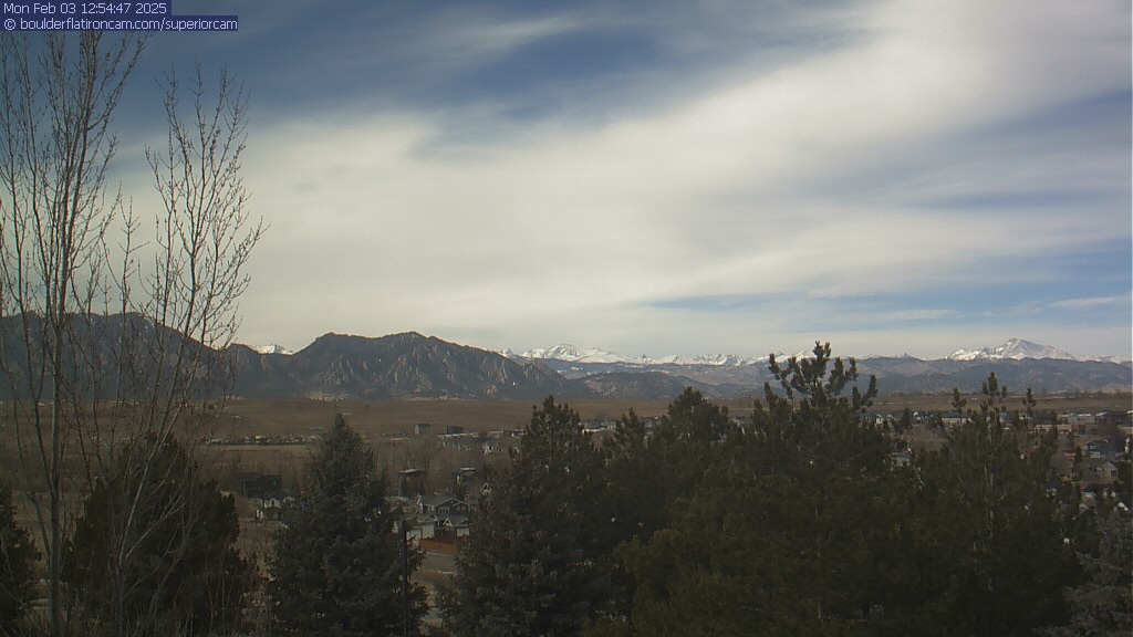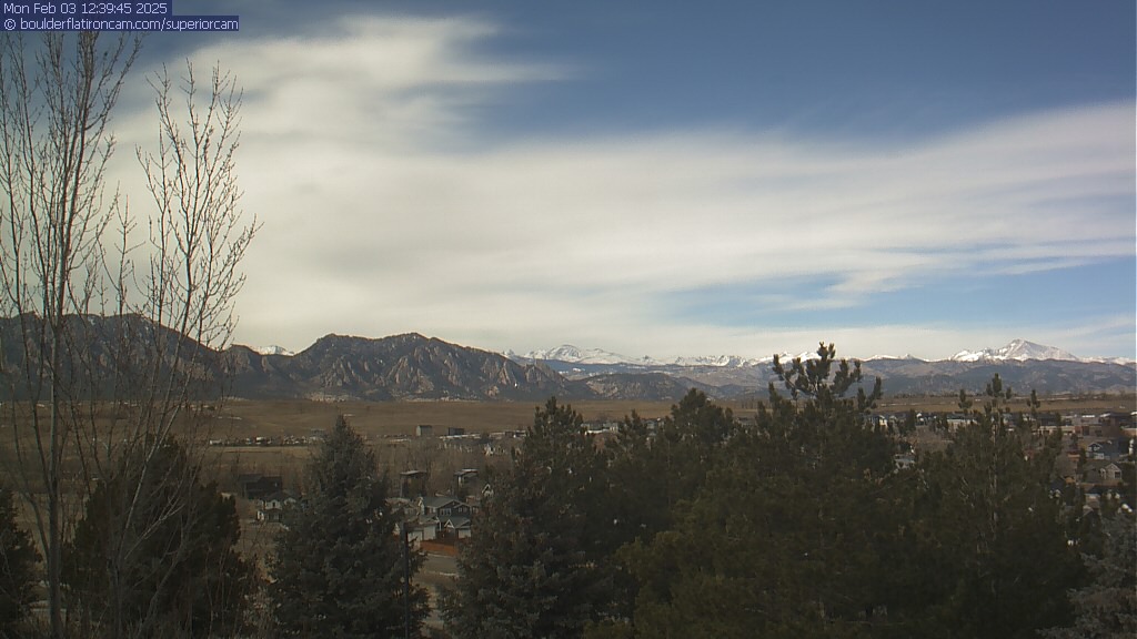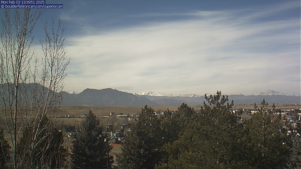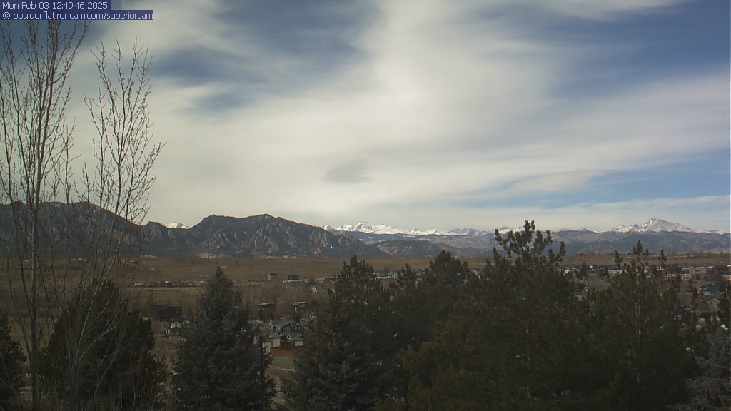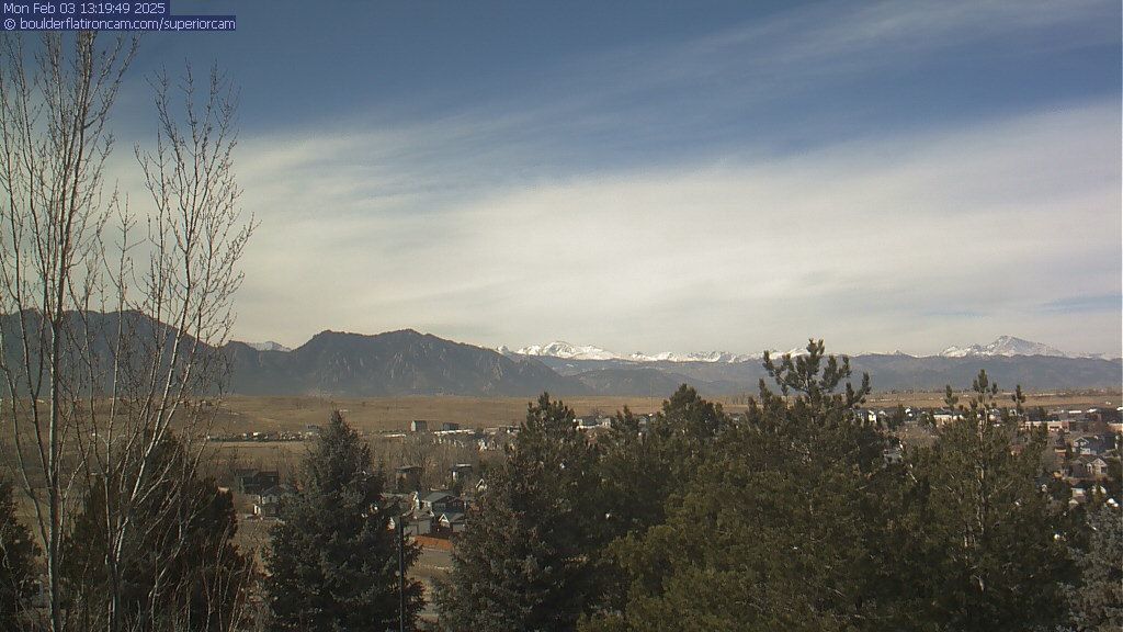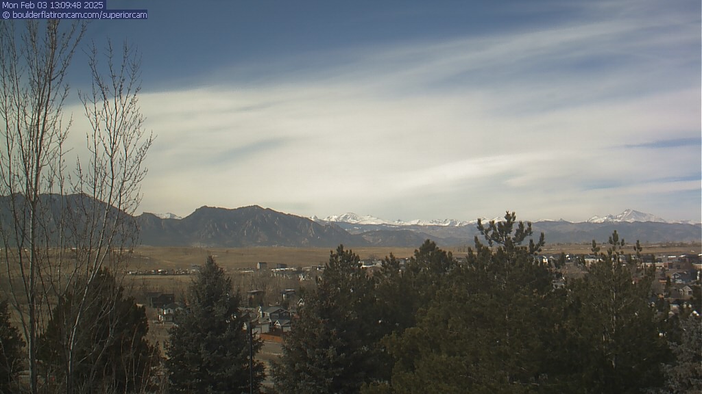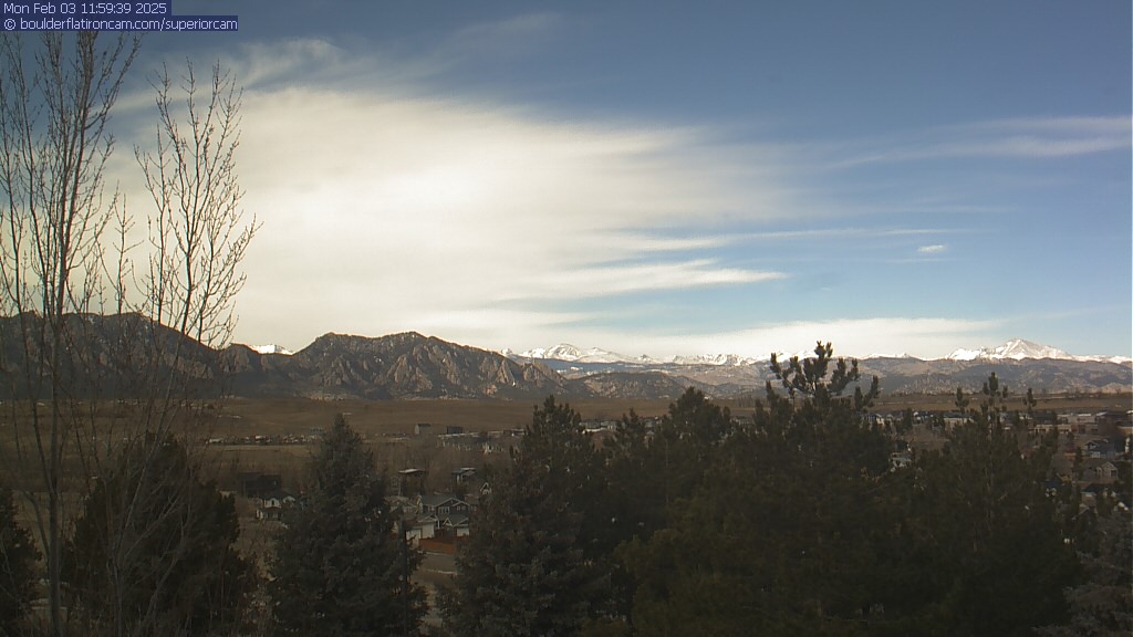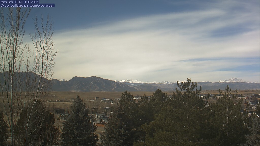 The Superior cam has a great view to the northwest over Boulder, the Flatirons, Indian Peaks and Long’s Peak.   The Coal Creek trail is visible in the foreground with old town Superior.  Thanks to Aweida Venture Partners management for the great view.