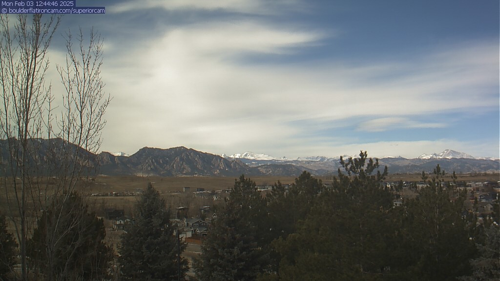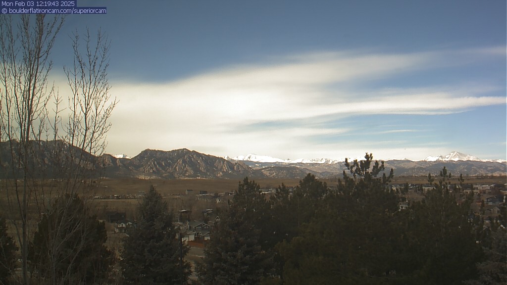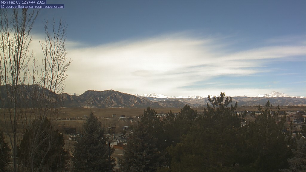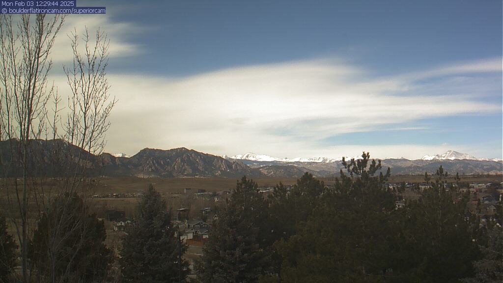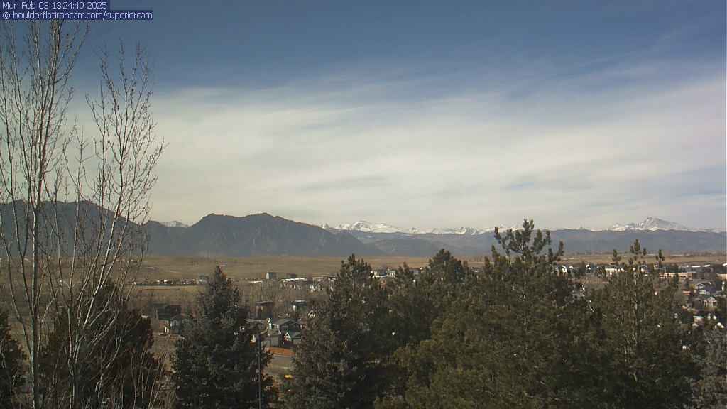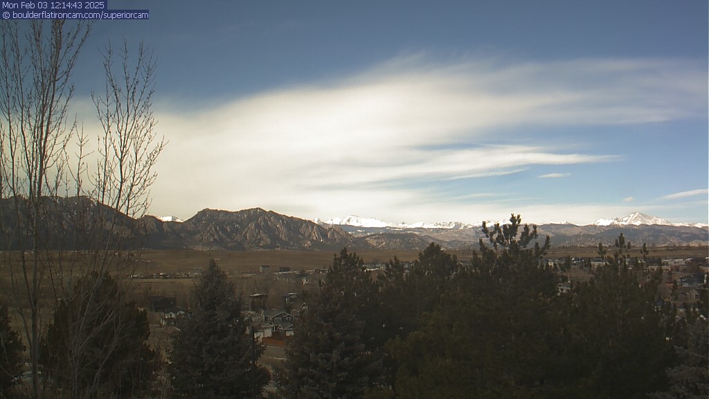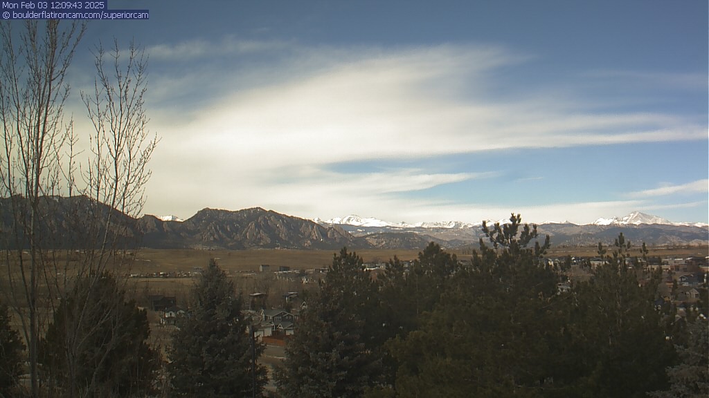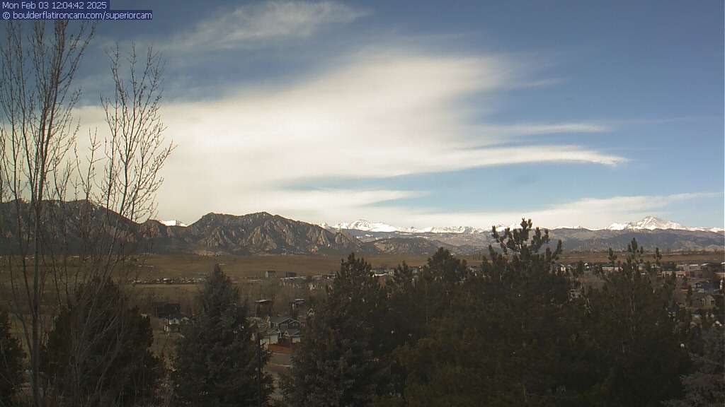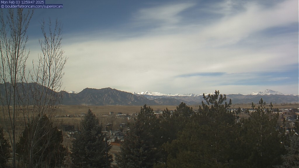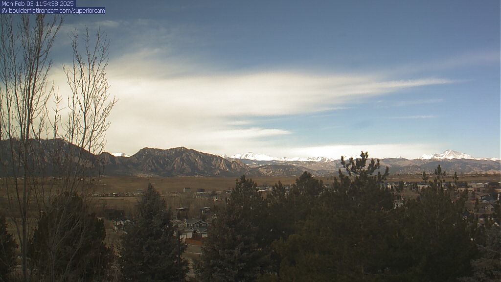 The Superior cam has a great view to the northwest over Boulder, the Flatirons, Indian Peaks and Long’s Peak.   The Coal Creek trail is visible in the foreground with old town Superior.  Thanks to Aweida Venture Partners management for the great view.