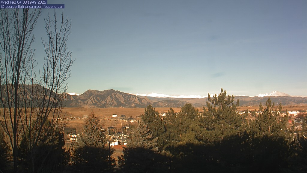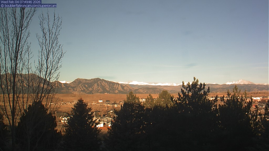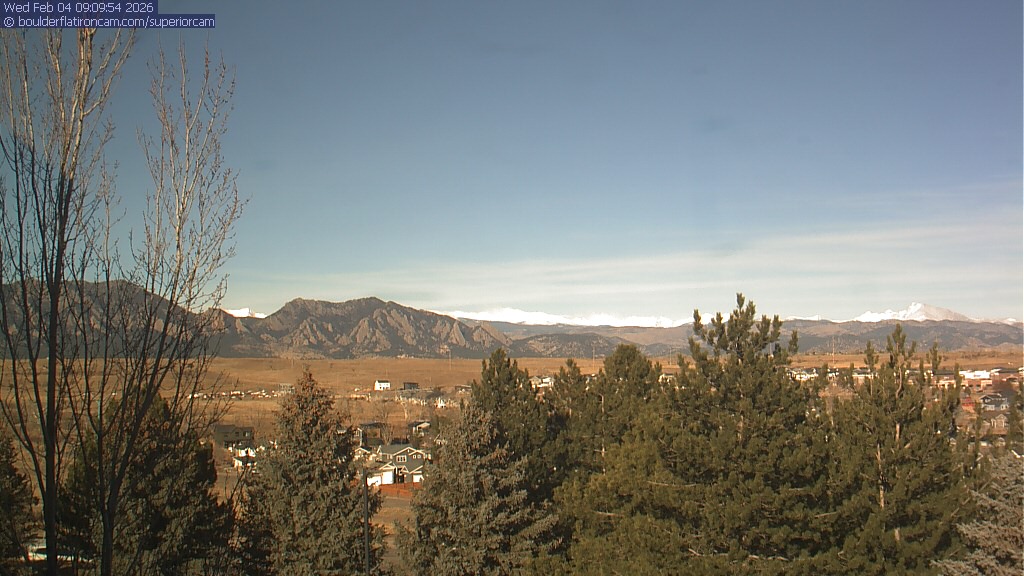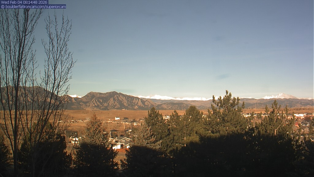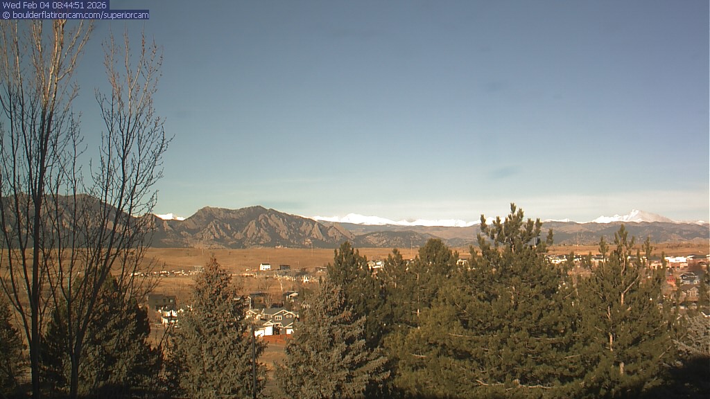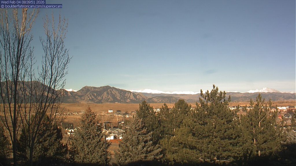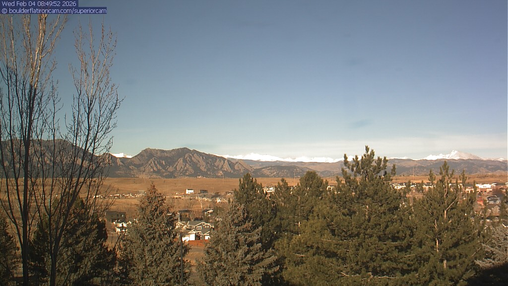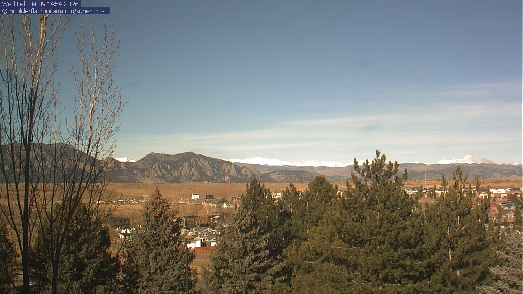 The Superior cam has a view to the northwest over Boulder, the Flatirons, Indian Peaks and Long’s Peak.   The Coal Creek trail is visible in the foreground with old town Superior.