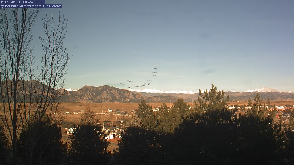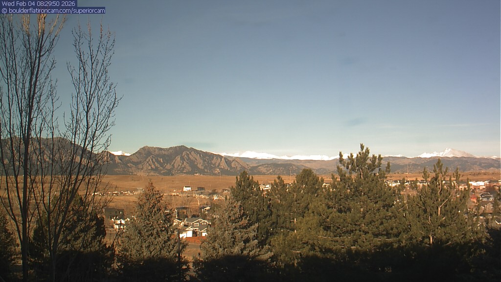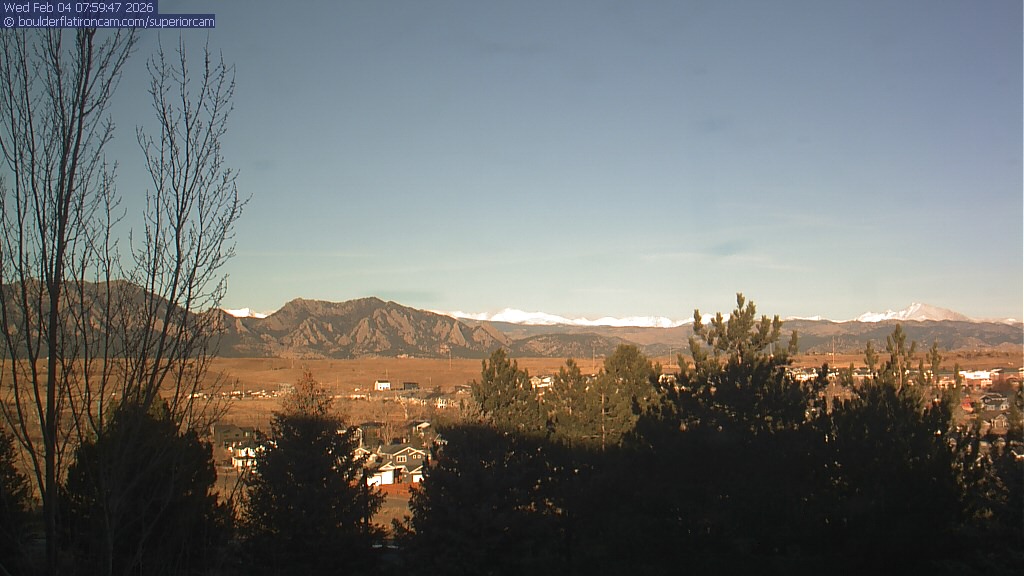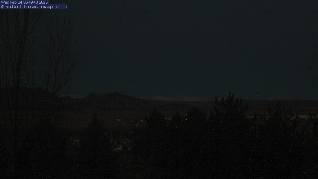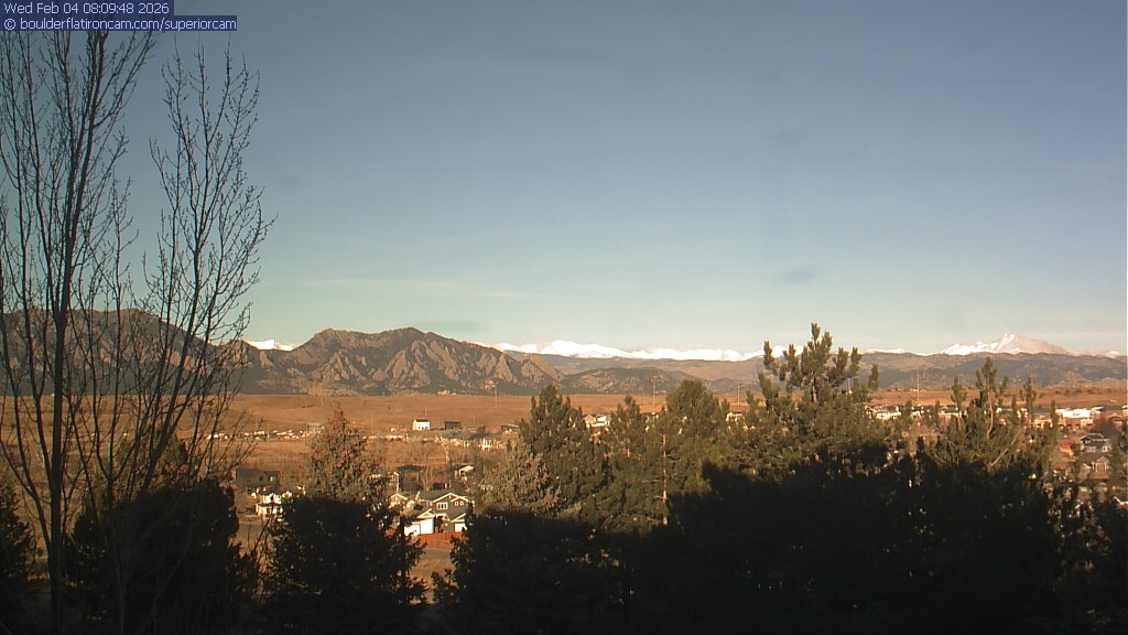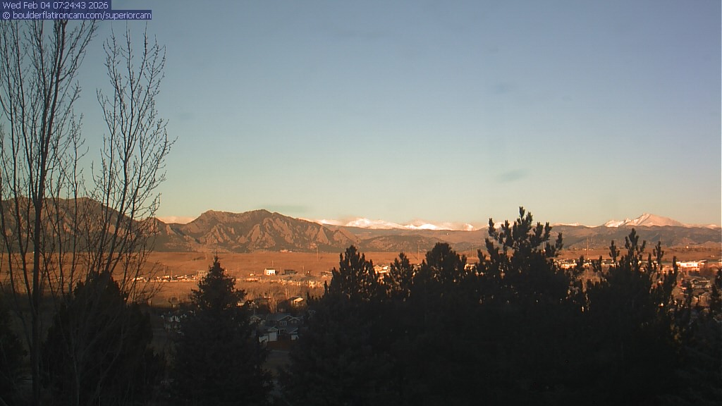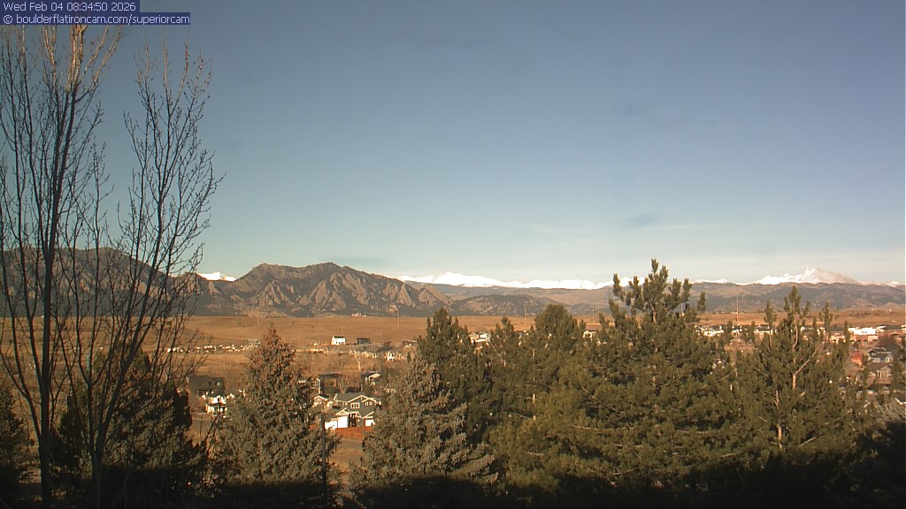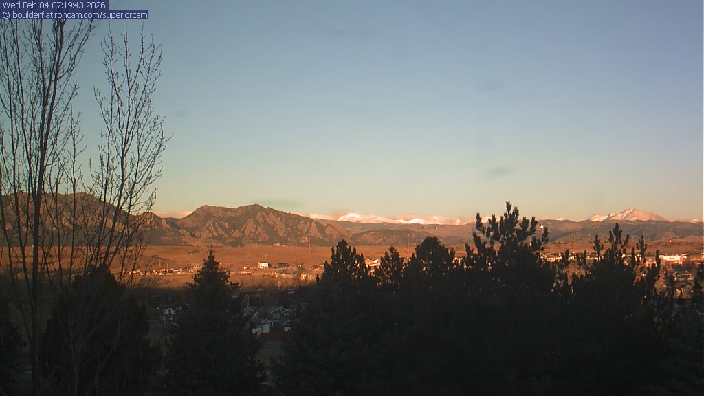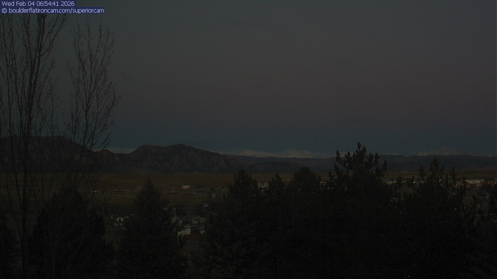 The Superior cam has a view to the northwest over Boulder, the Flatirons, Indian Peaks and Long’s Peak.   The Coal Creek trail is visible in the foreground with old town Superior.
