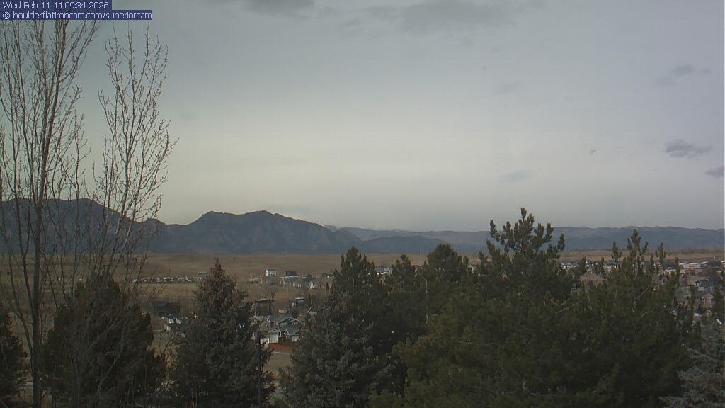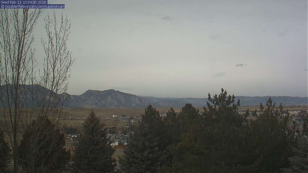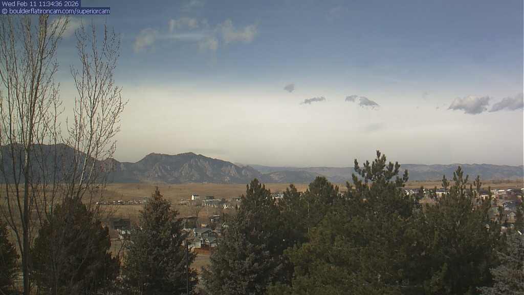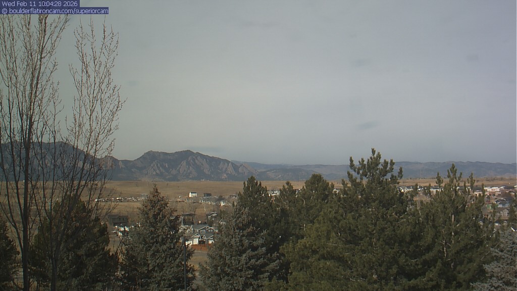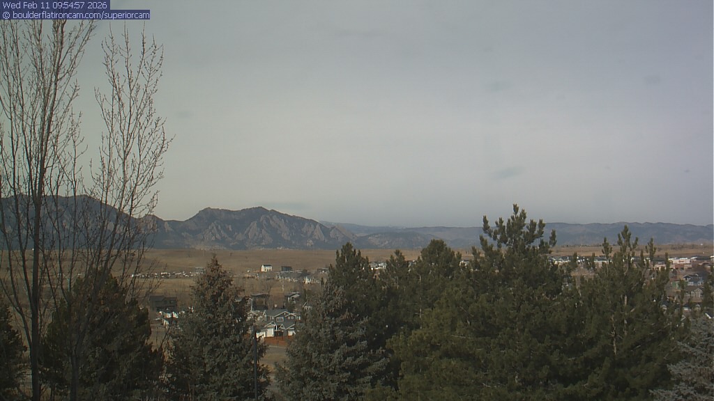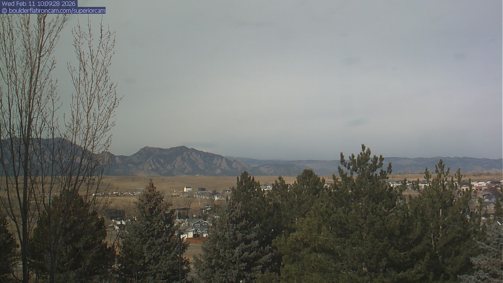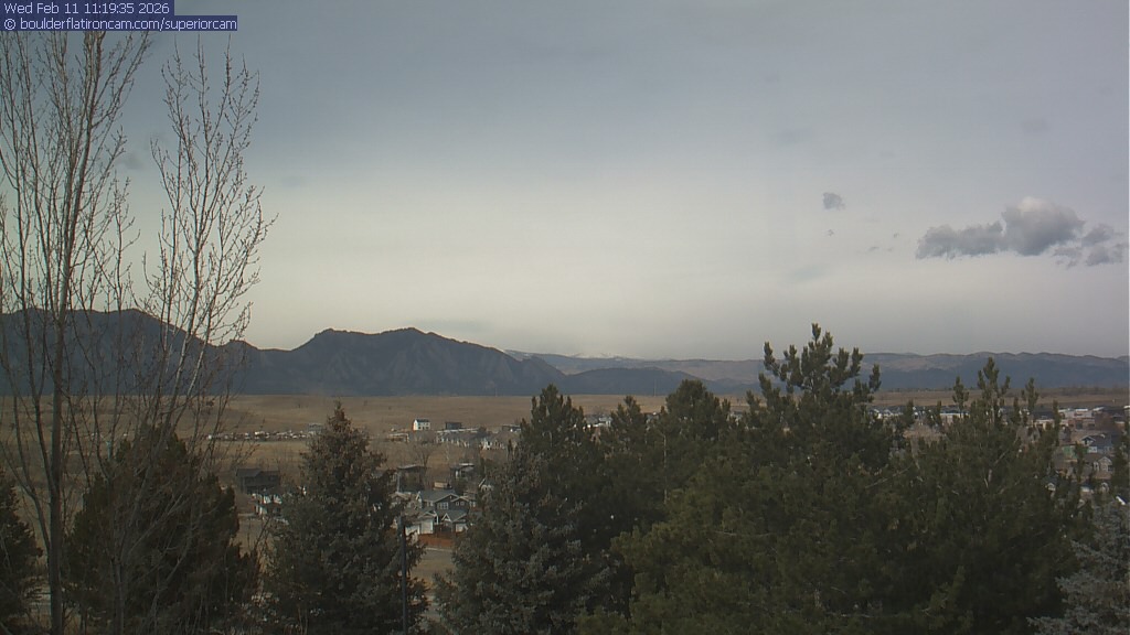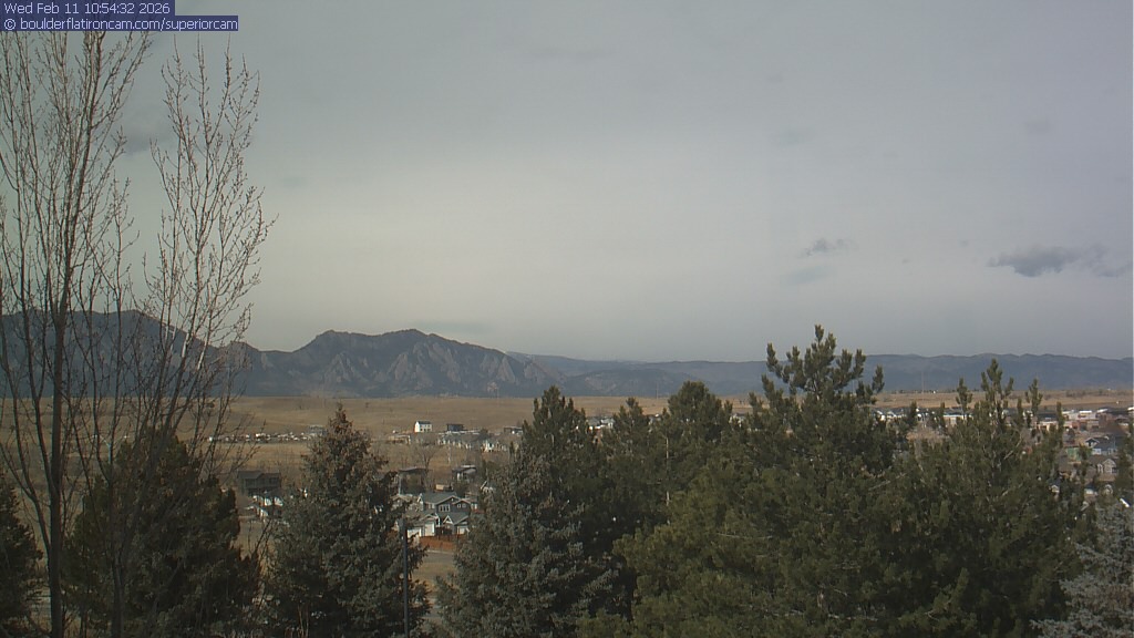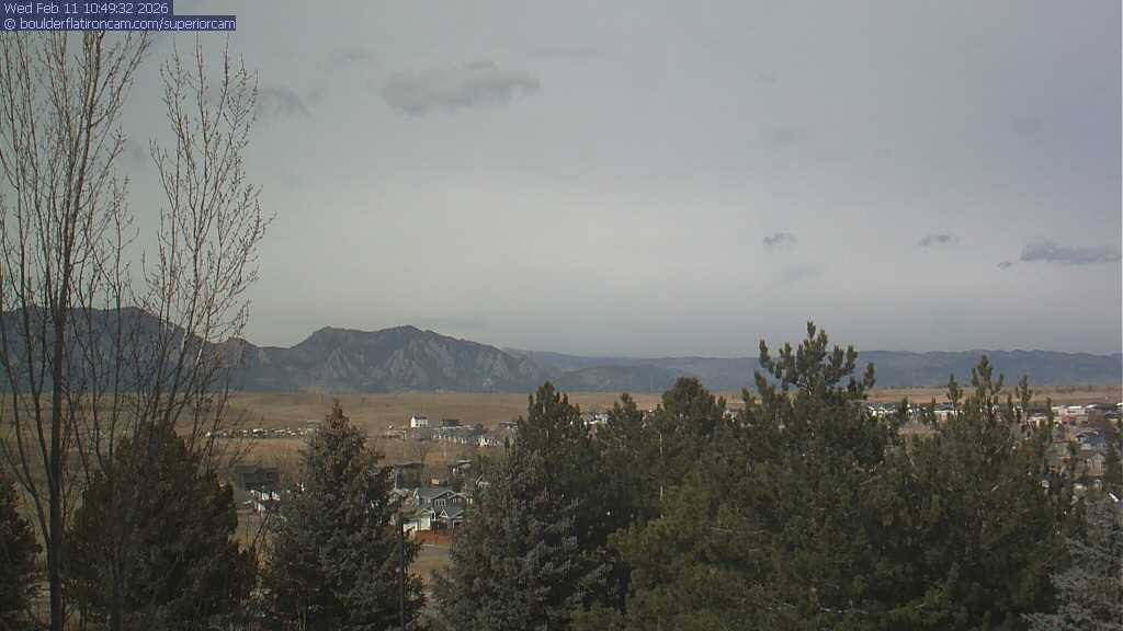 The Superior cam has a view to the northwest over Boulder, the Flatirons, Indian Peaks and Long’s Peak.   The Coal Creek trail is visible in the foreground with old town Superior.