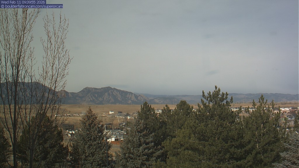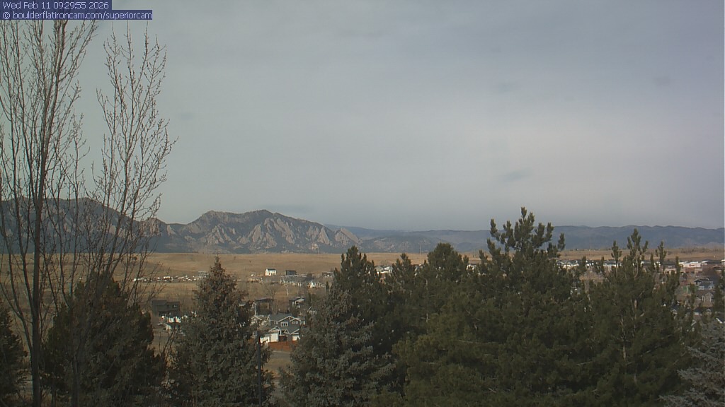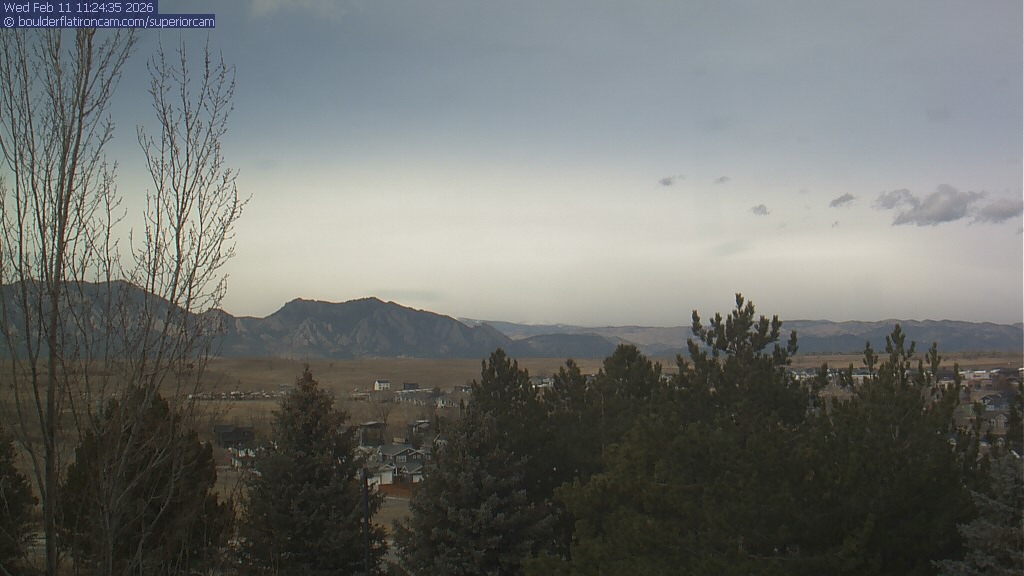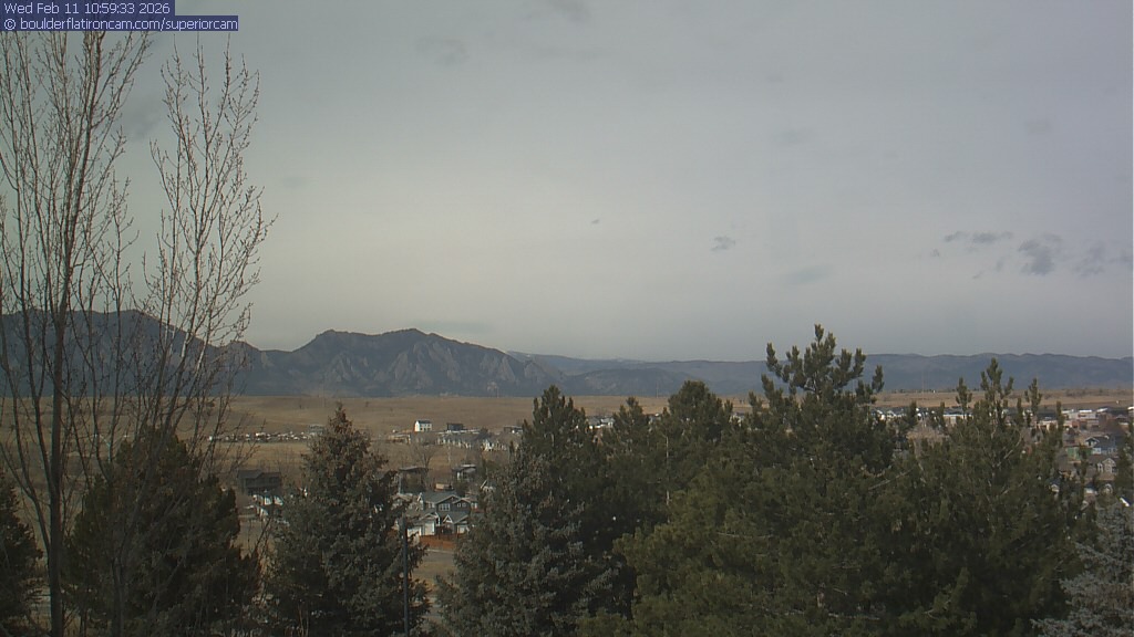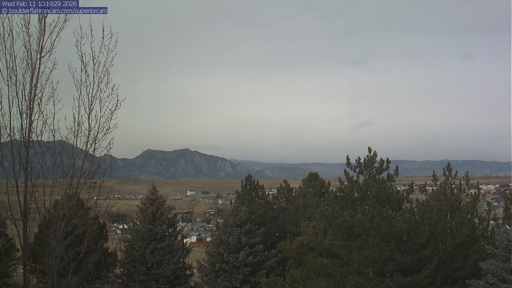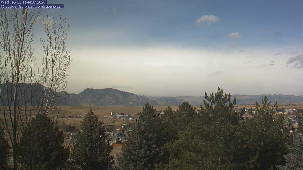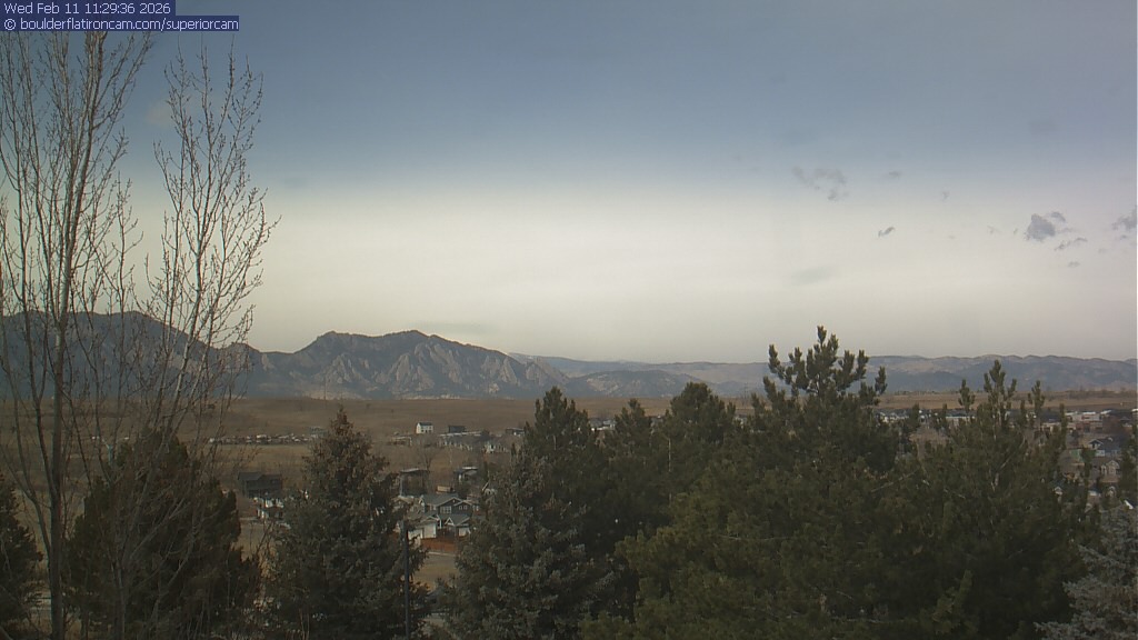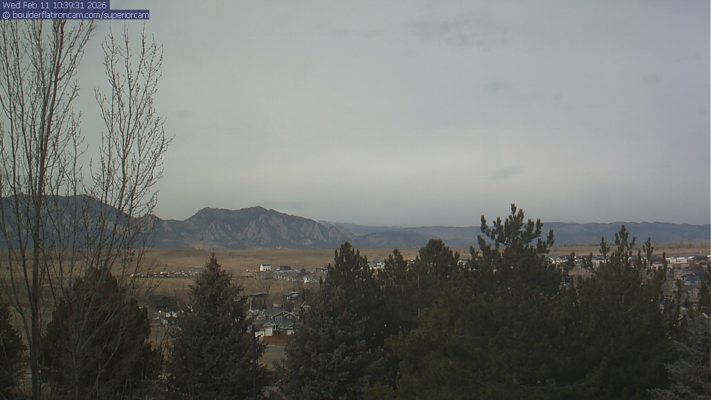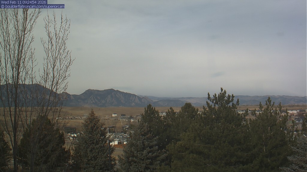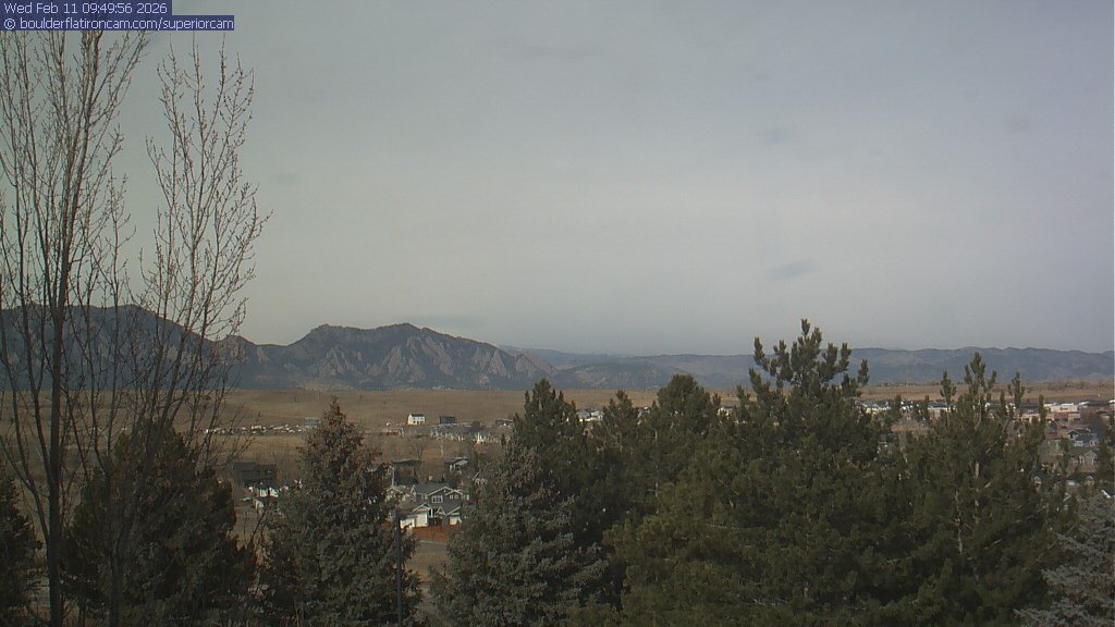 The Superior cam has a view to the northwest over Boulder, the Flatirons, Indian Peaks and Long’s Peak.   The Coal Creek trail is visible in the foreground with old town Superior.