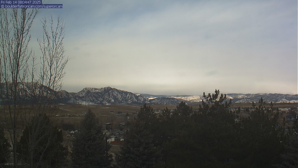 The Superior cam has a great view to the northwest over Boulder, the Flatirons, Indian Peaks and Long’s Peak.   The Coal Creek trail is visible in the foreground with old town Superior.  Thanks to Aweida Venture Partners management for the great view.