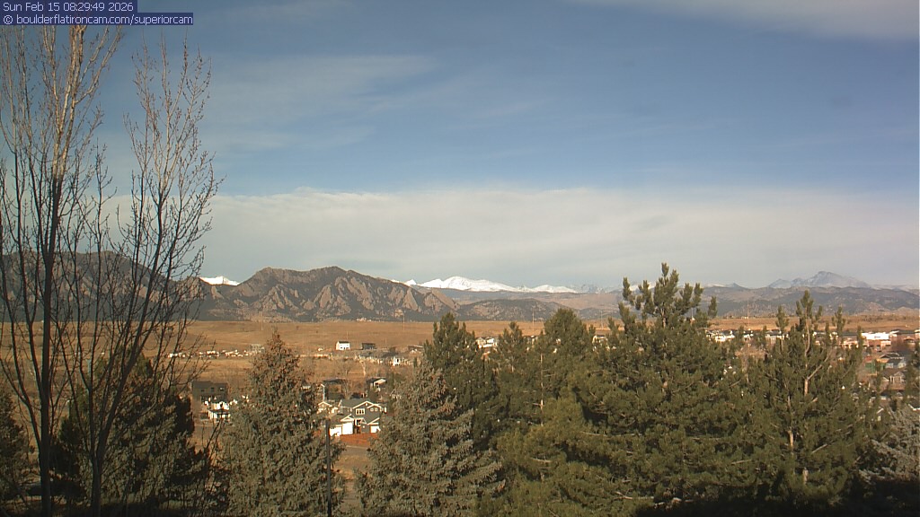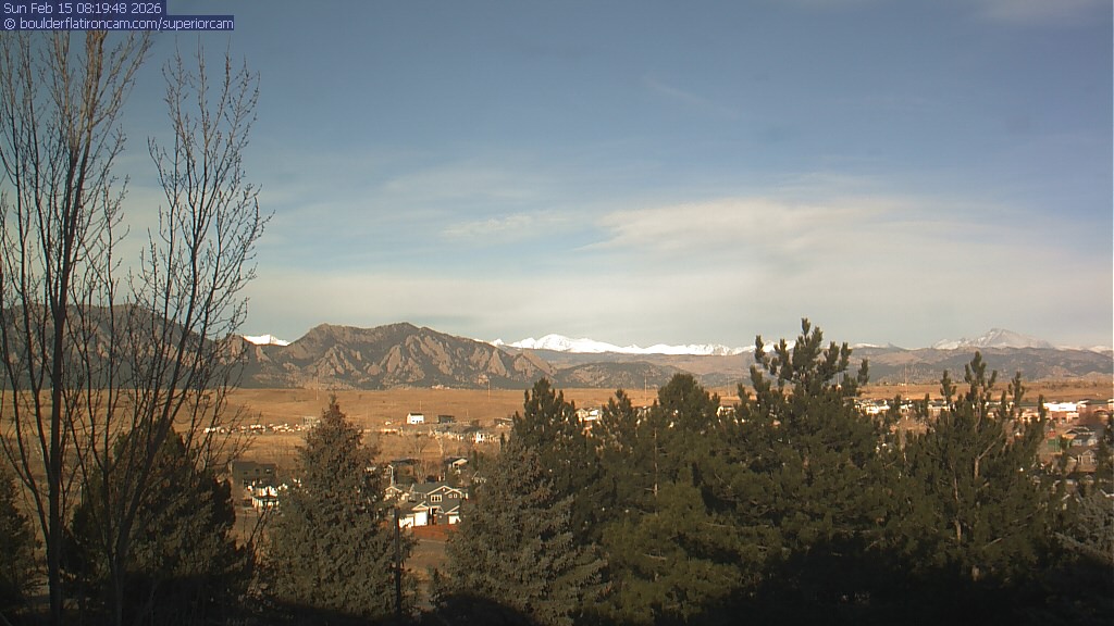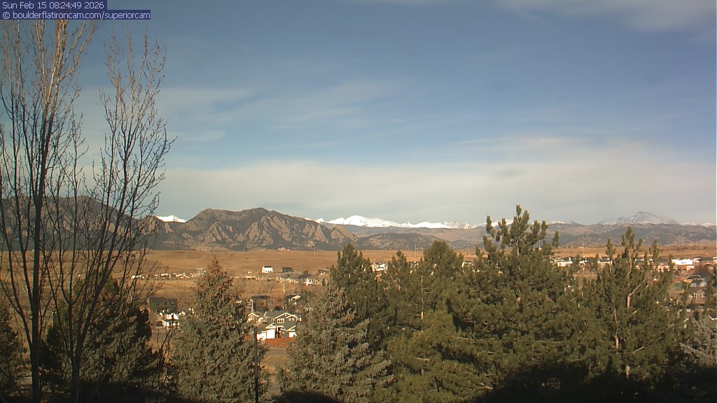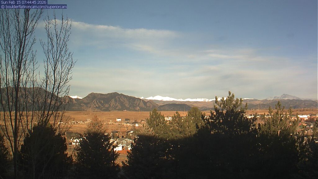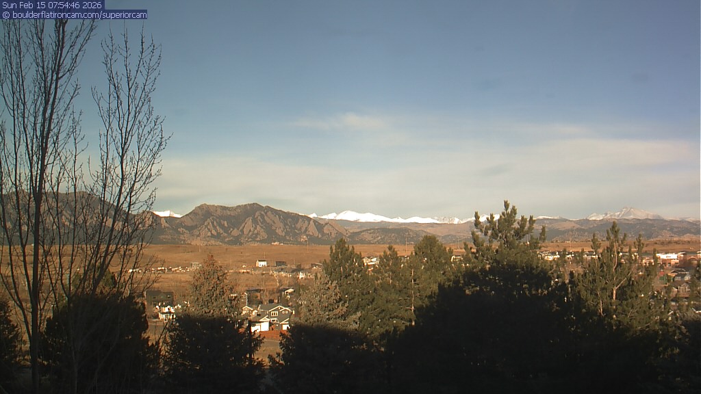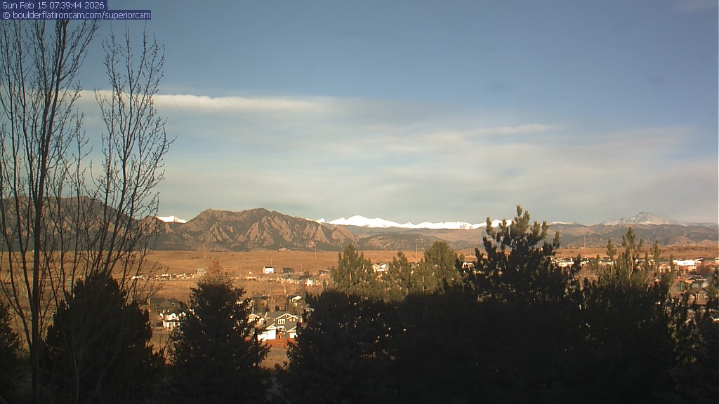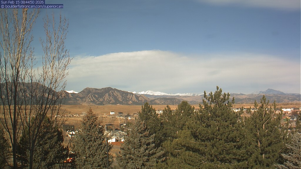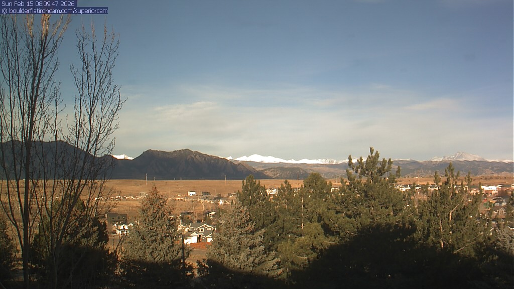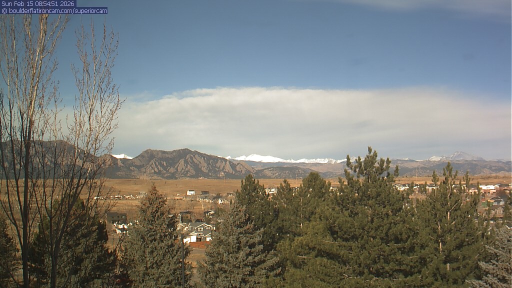 The Superior cam has a view to the northwest over Boulder, the Flatirons, Indian Peaks and Long’s Peak.   The Coal Creek trail is visible in the foreground with old town Superior.