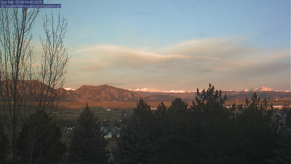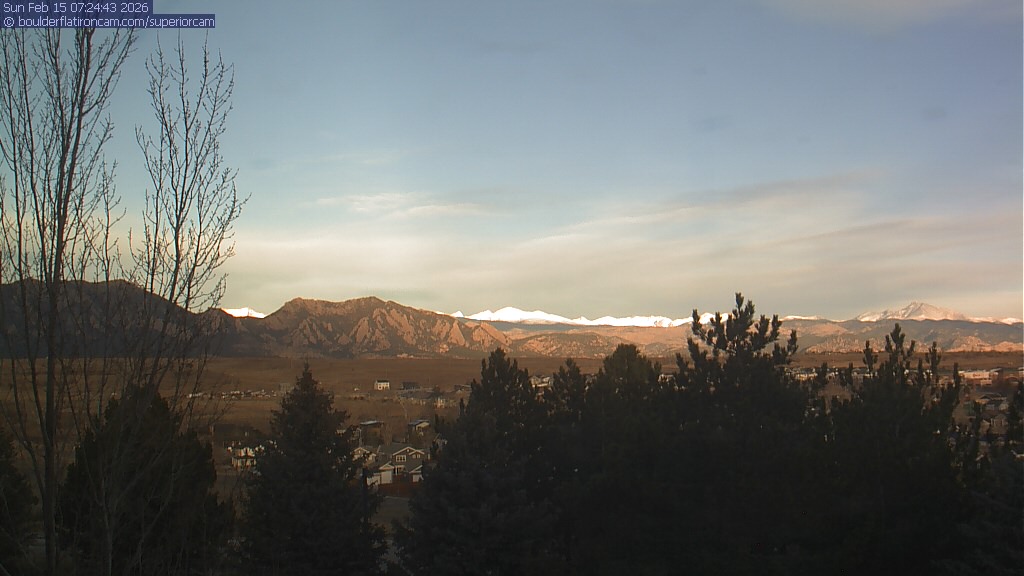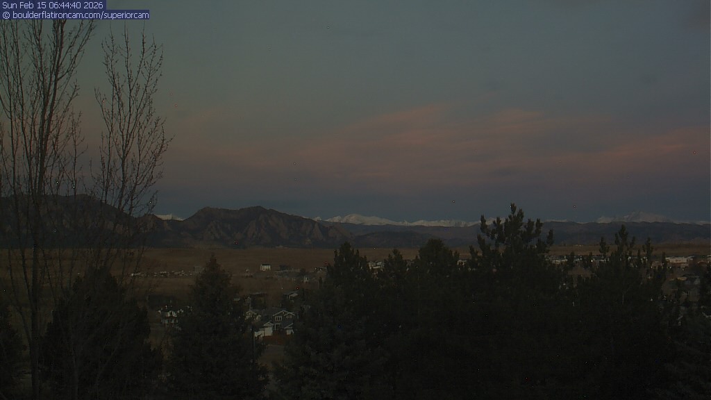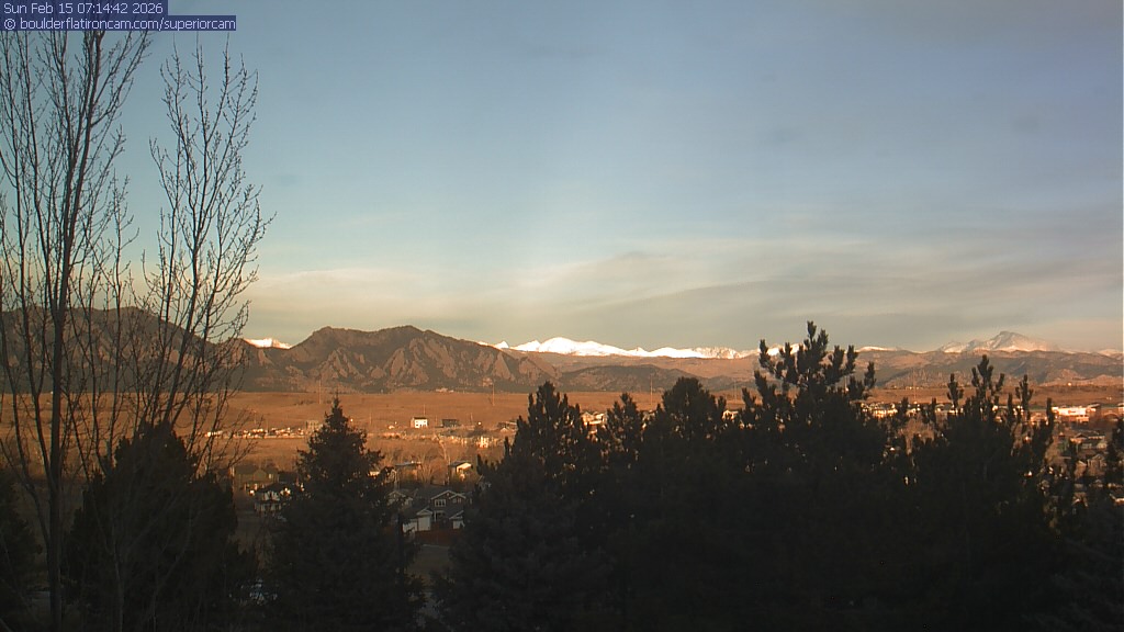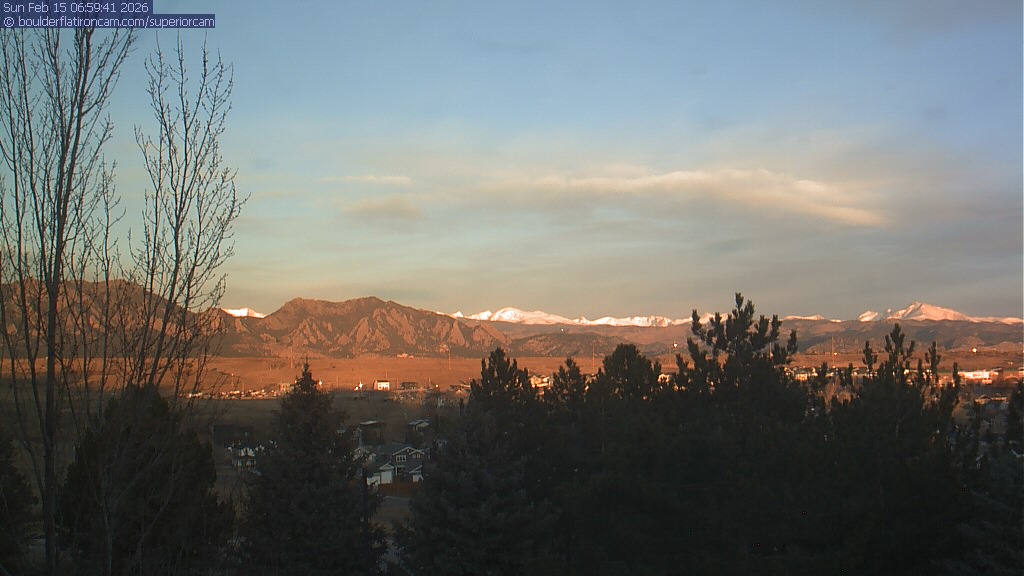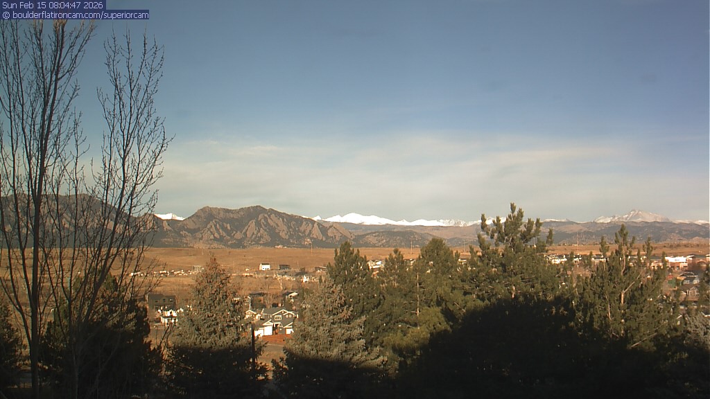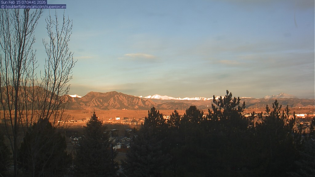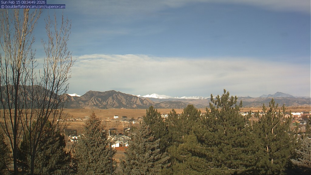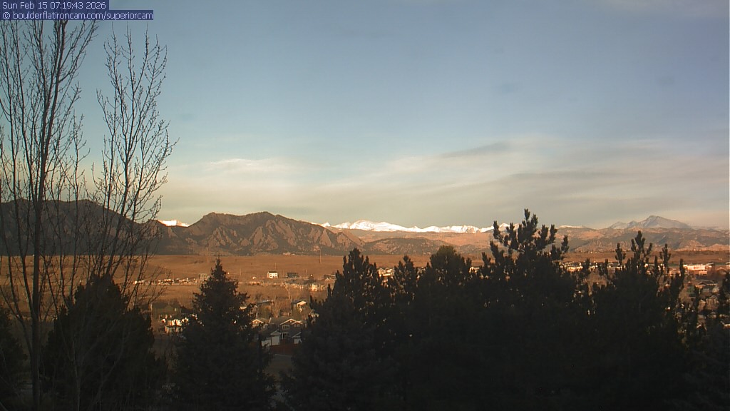 The Superior cam has a view to the northwest over Boulder, the Flatirons, Indian Peaks and Long’s Peak.   The Coal Creek trail is visible in the foreground with old town Superior.
