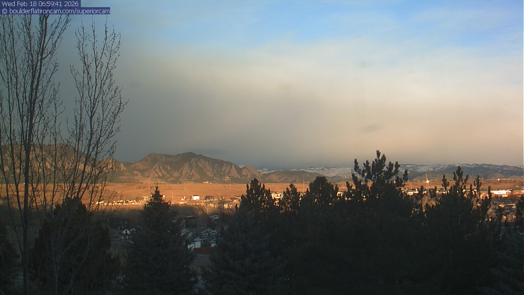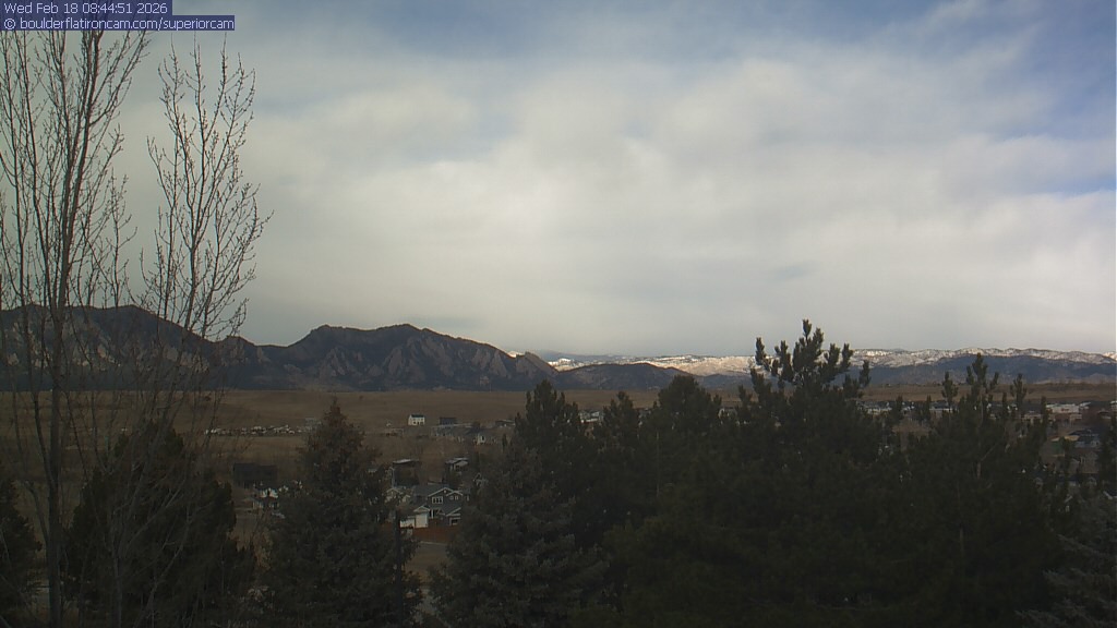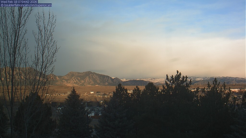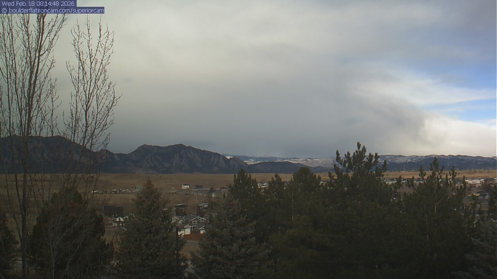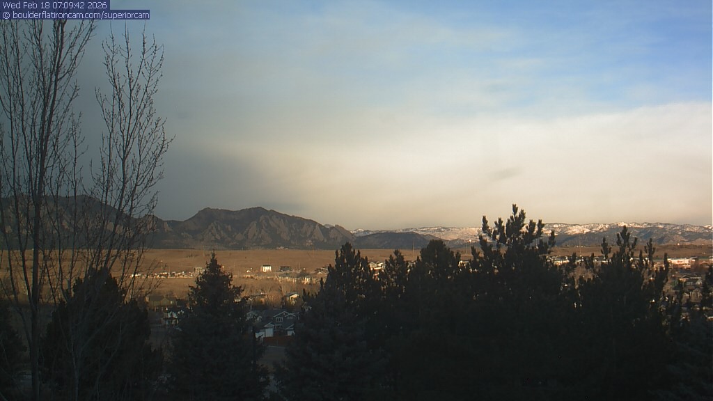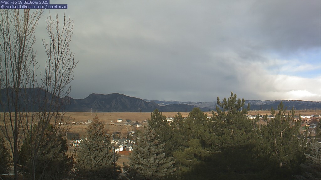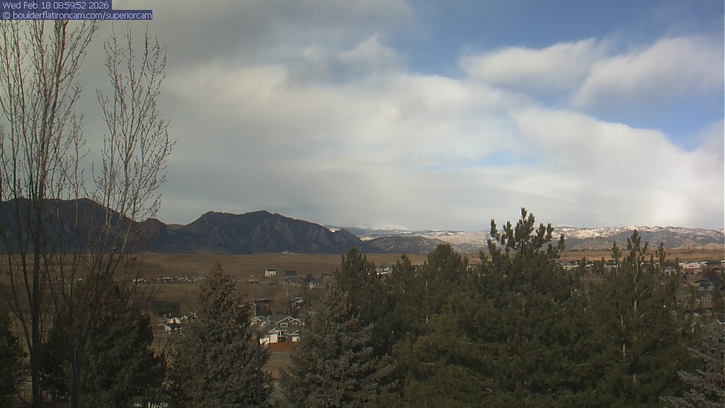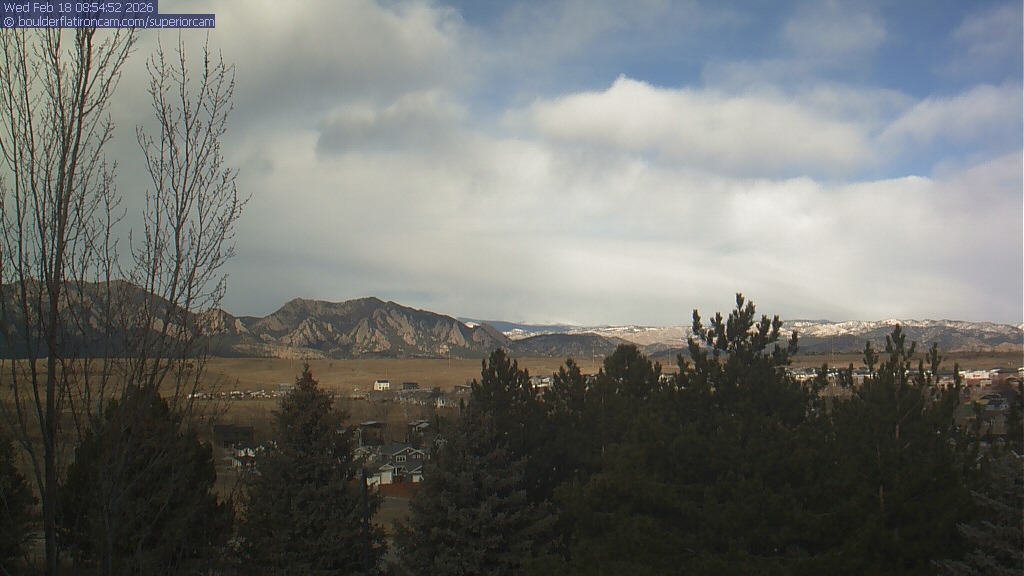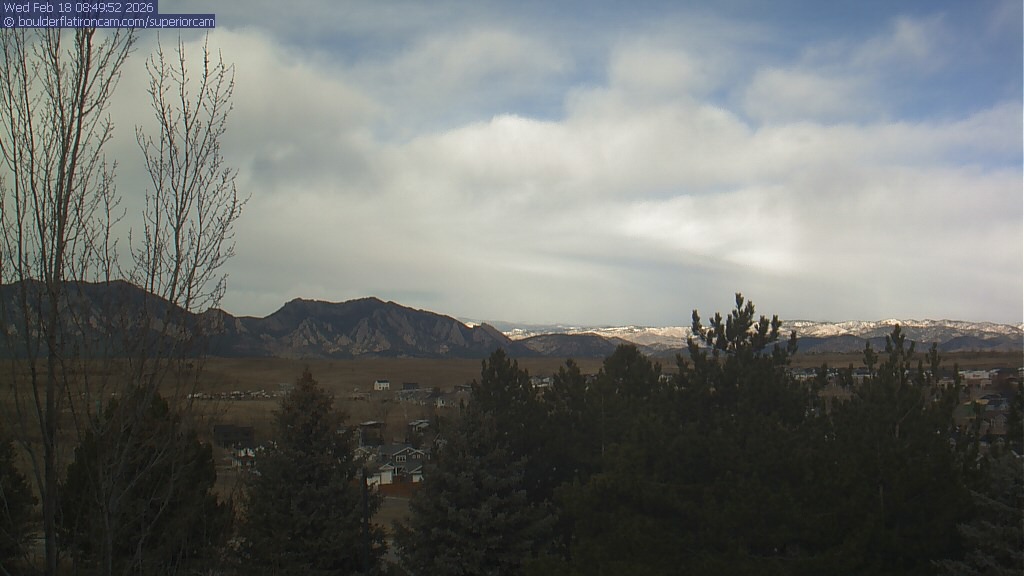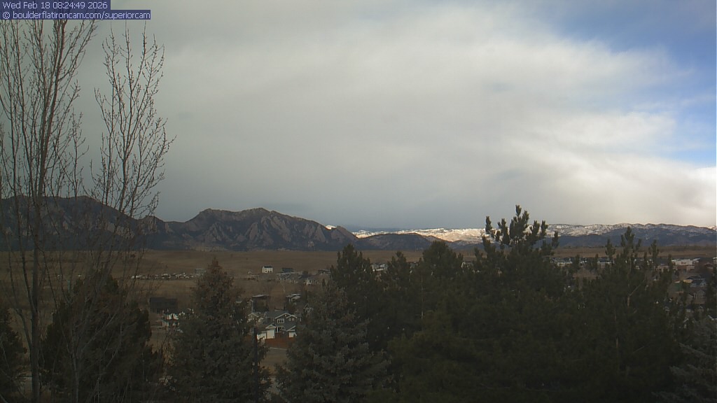 The Superior cam has a view to the northwest over Boulder, the Flatirons, Indian Peaks and Long’s Peak.   The Coal Creek trail is visible in the foreground with old town Superior.