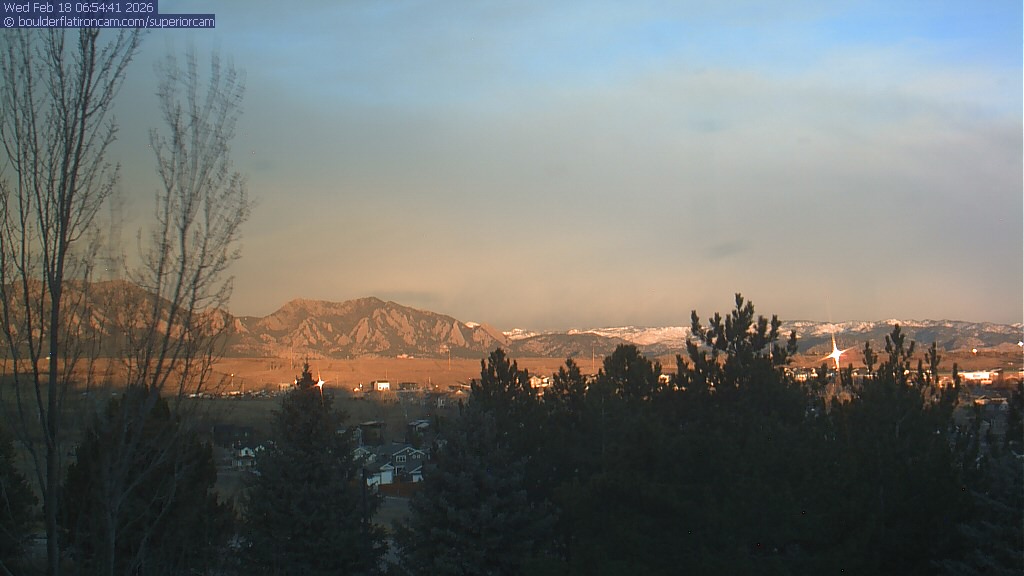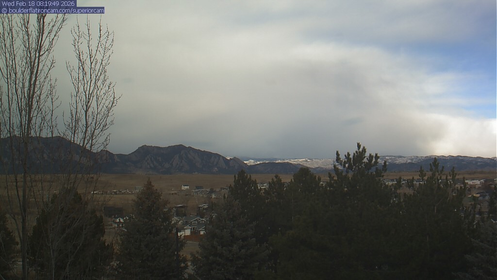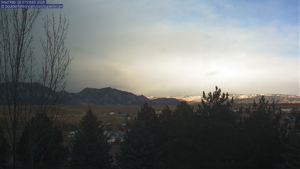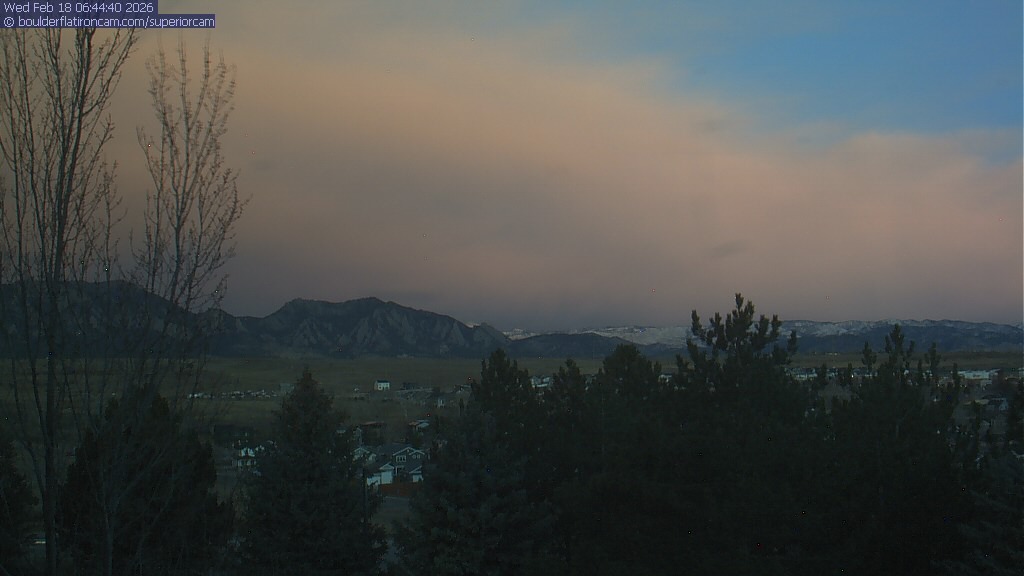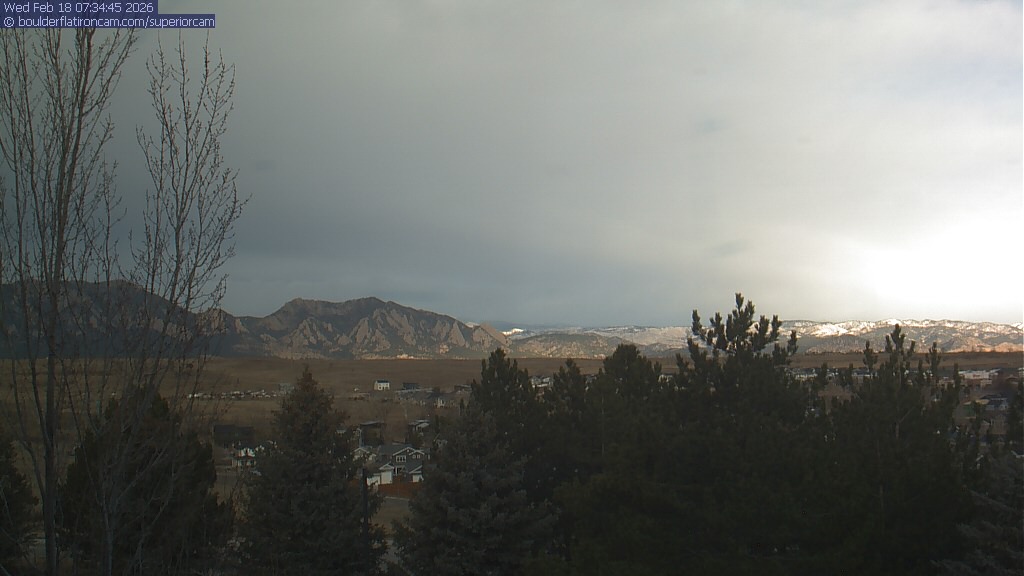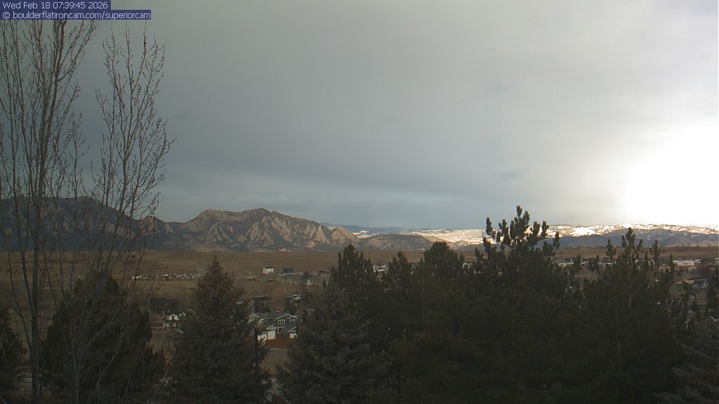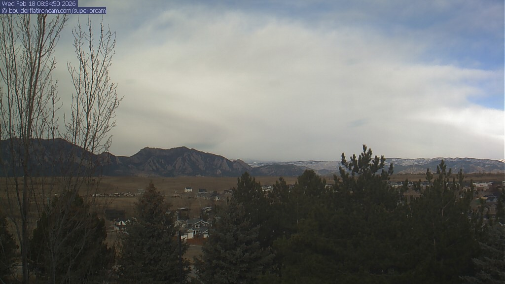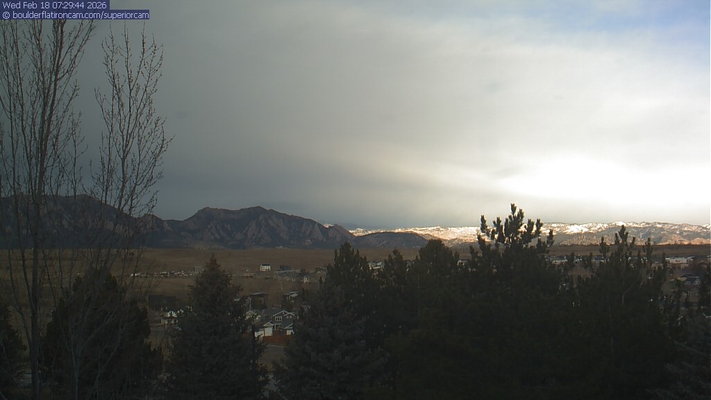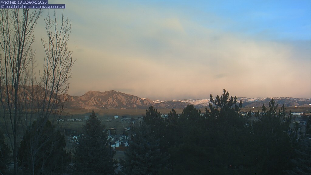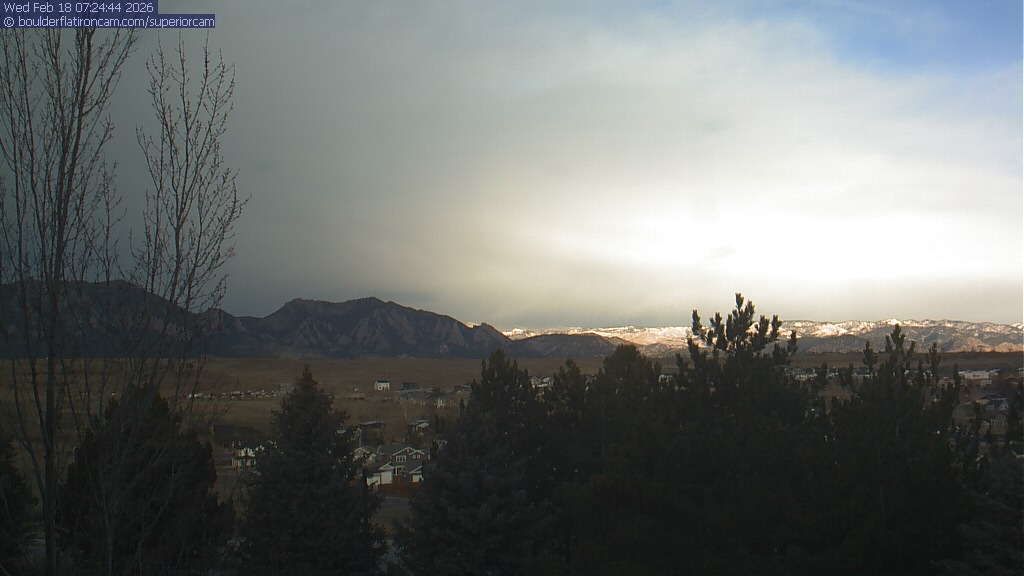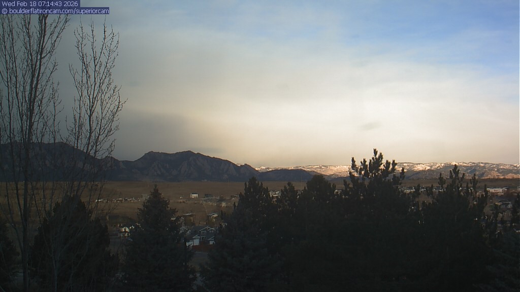 The Superior cam has a view to the northwest over Boulder, the Flatirons, Indian Peaks and Long’s Peak.   The Coal Creek trail is visible in the foreground with old town Superior.